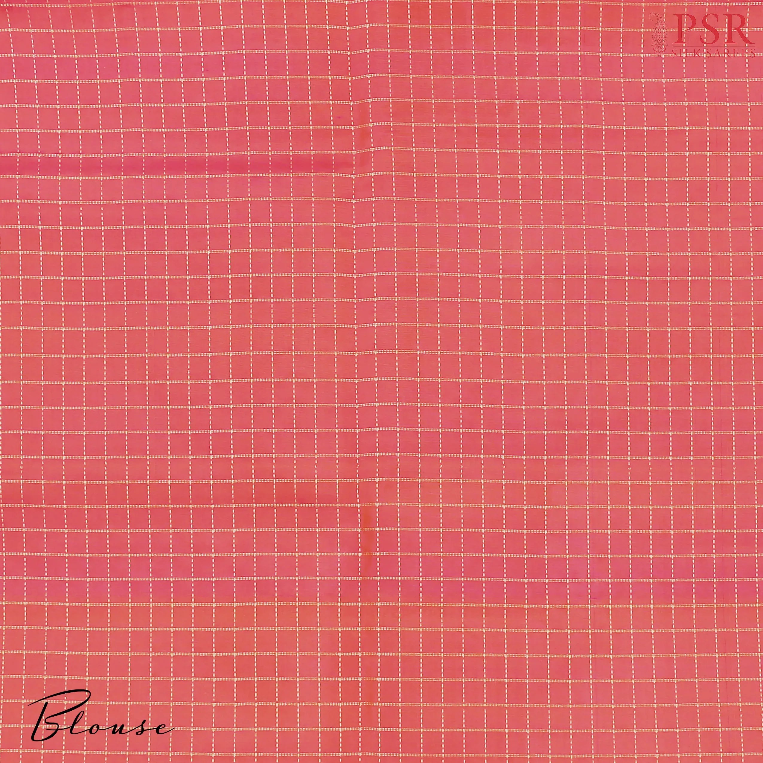 It is complemented by a Coral traditional zari work pallu and matching border, creating a striking and well-defined contrast. The ensemble is completed with a plain Coral blouse, ensuring a perfectly balanced and elegant finish.
