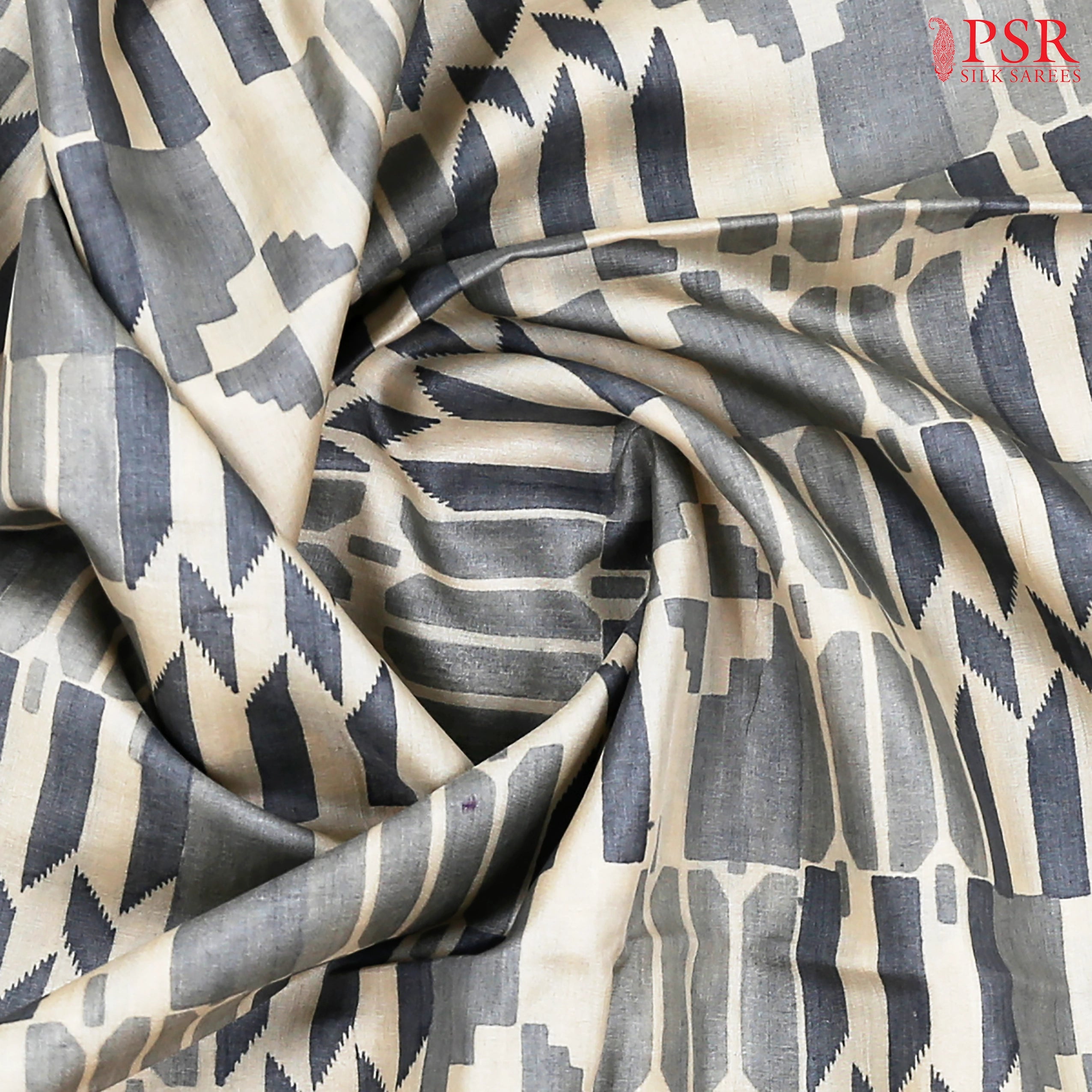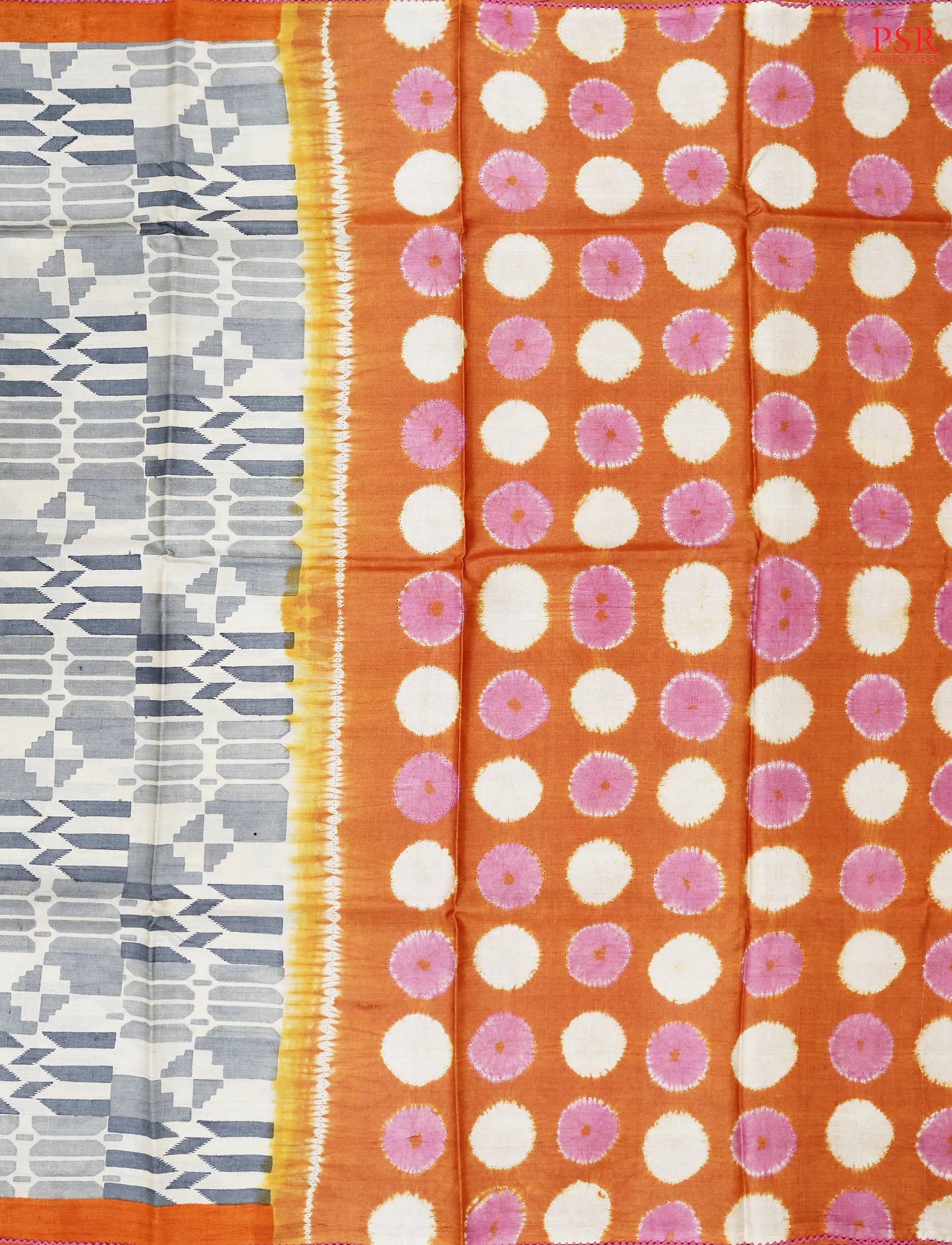 PSR Silk Sarees presents a Light Beige & Grey Kadhi Tussar Silk saree with a vibrant combination of Orange, blending contemporary charm with traditional elegance.
