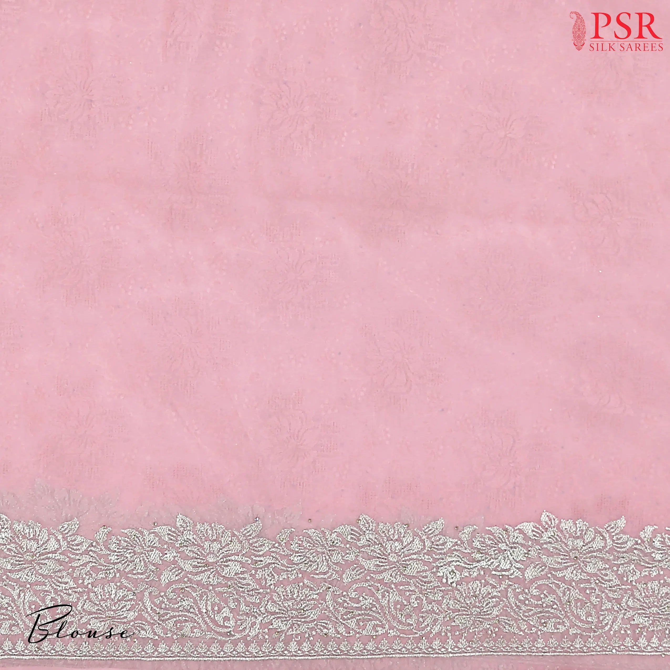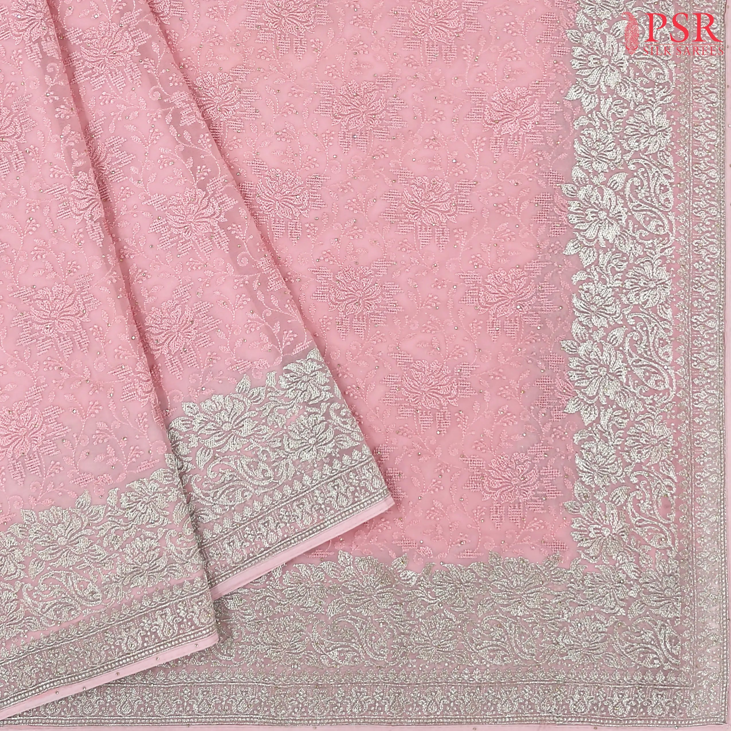 PSR Silks presents a Light Pink colored Georgette Saree with an enchanting Embroidery Work.