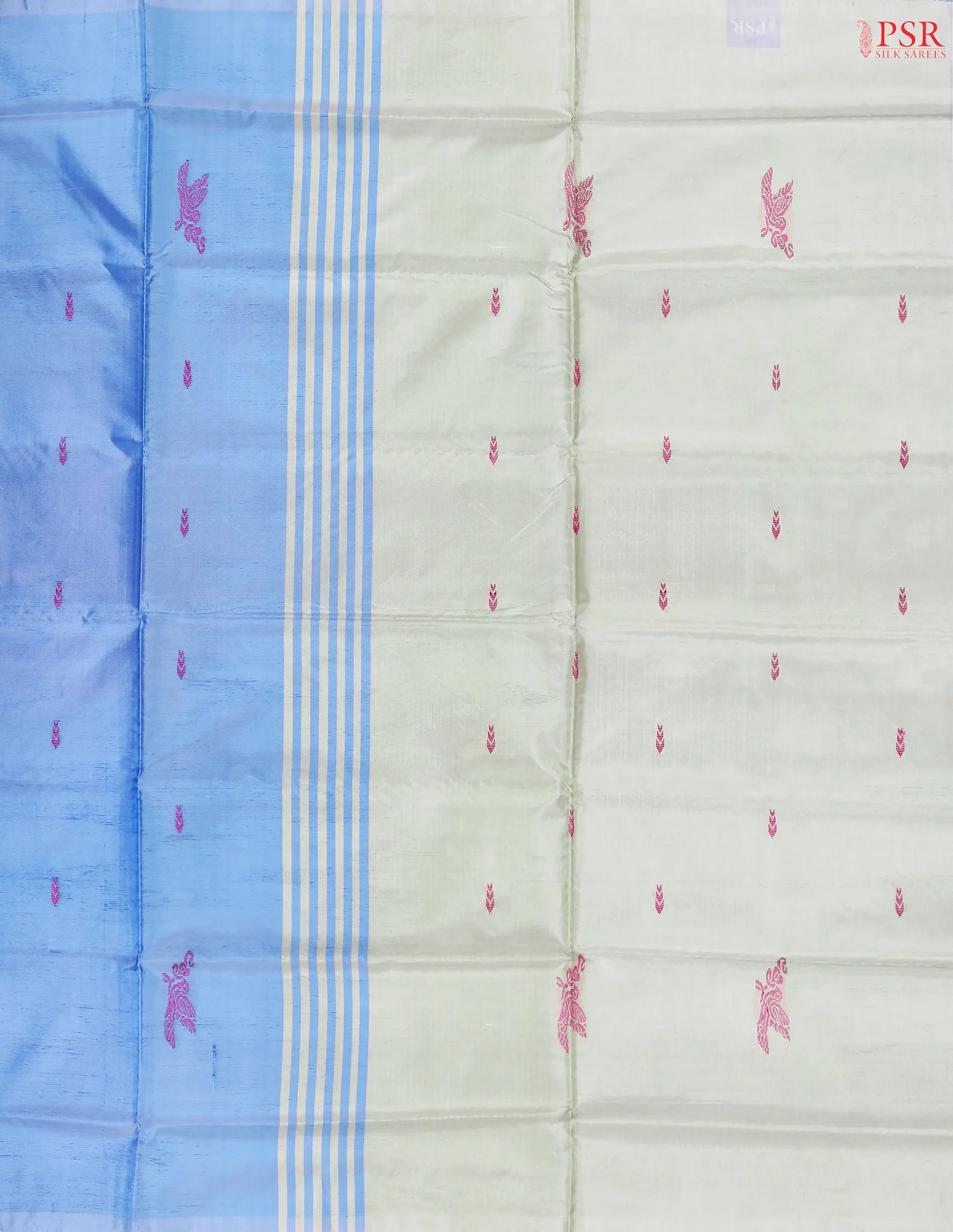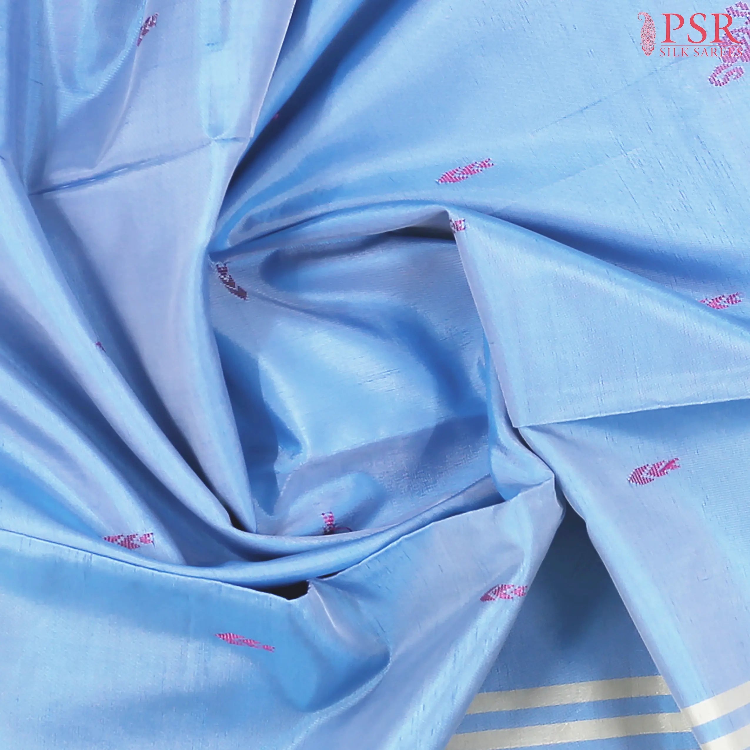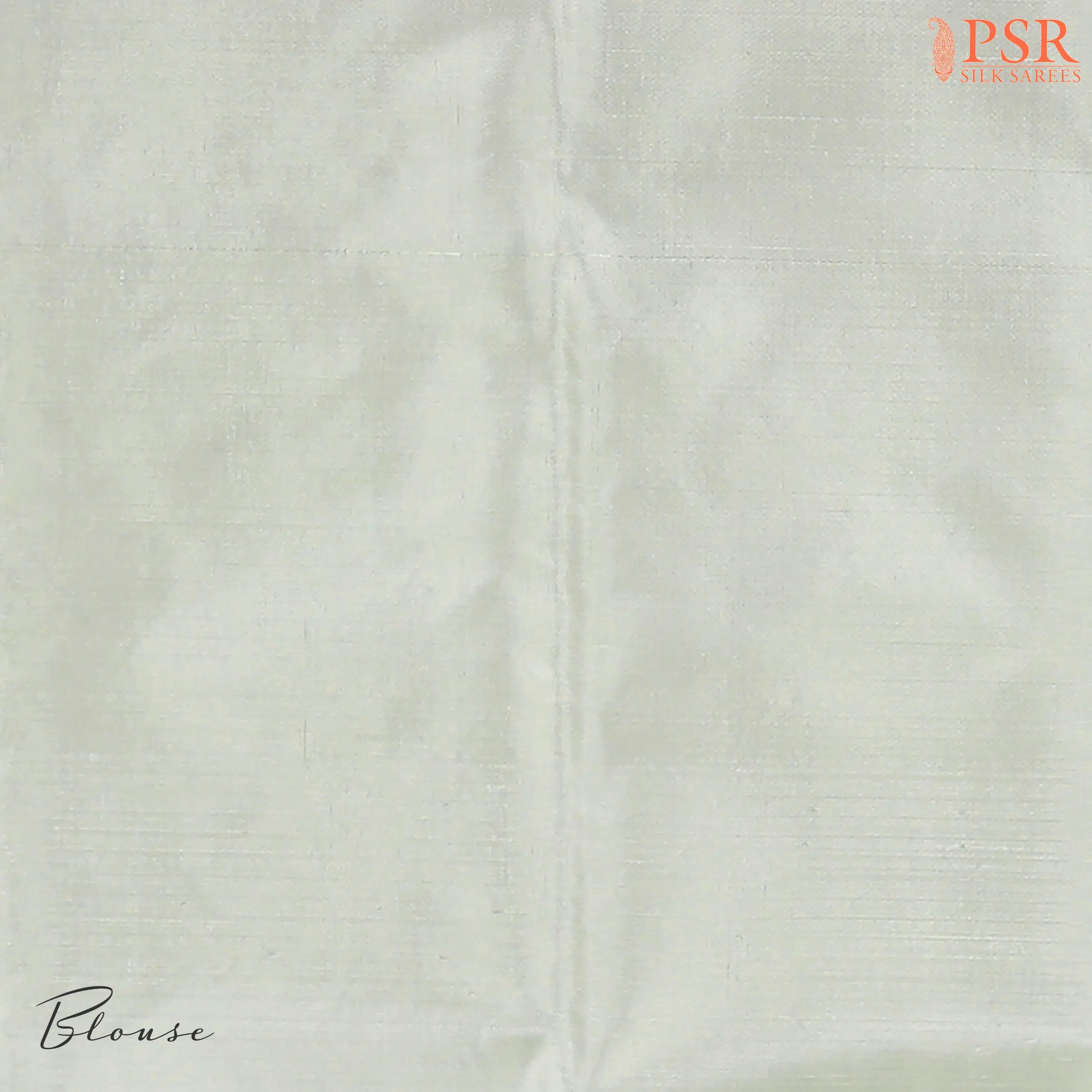 PSR Silk Sarees presents a Maya Blue Vazhainaar Silk saree with combination of Light Tea Green color.