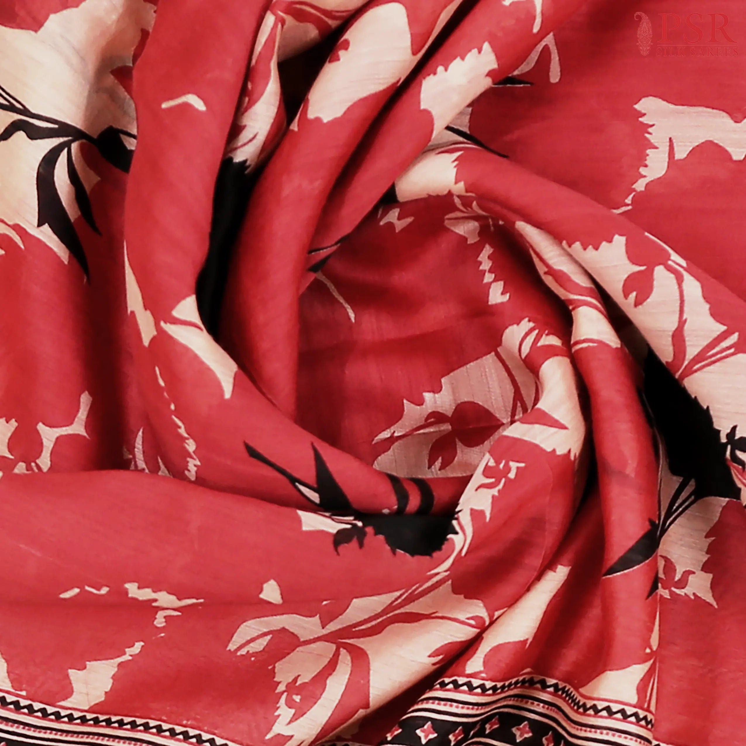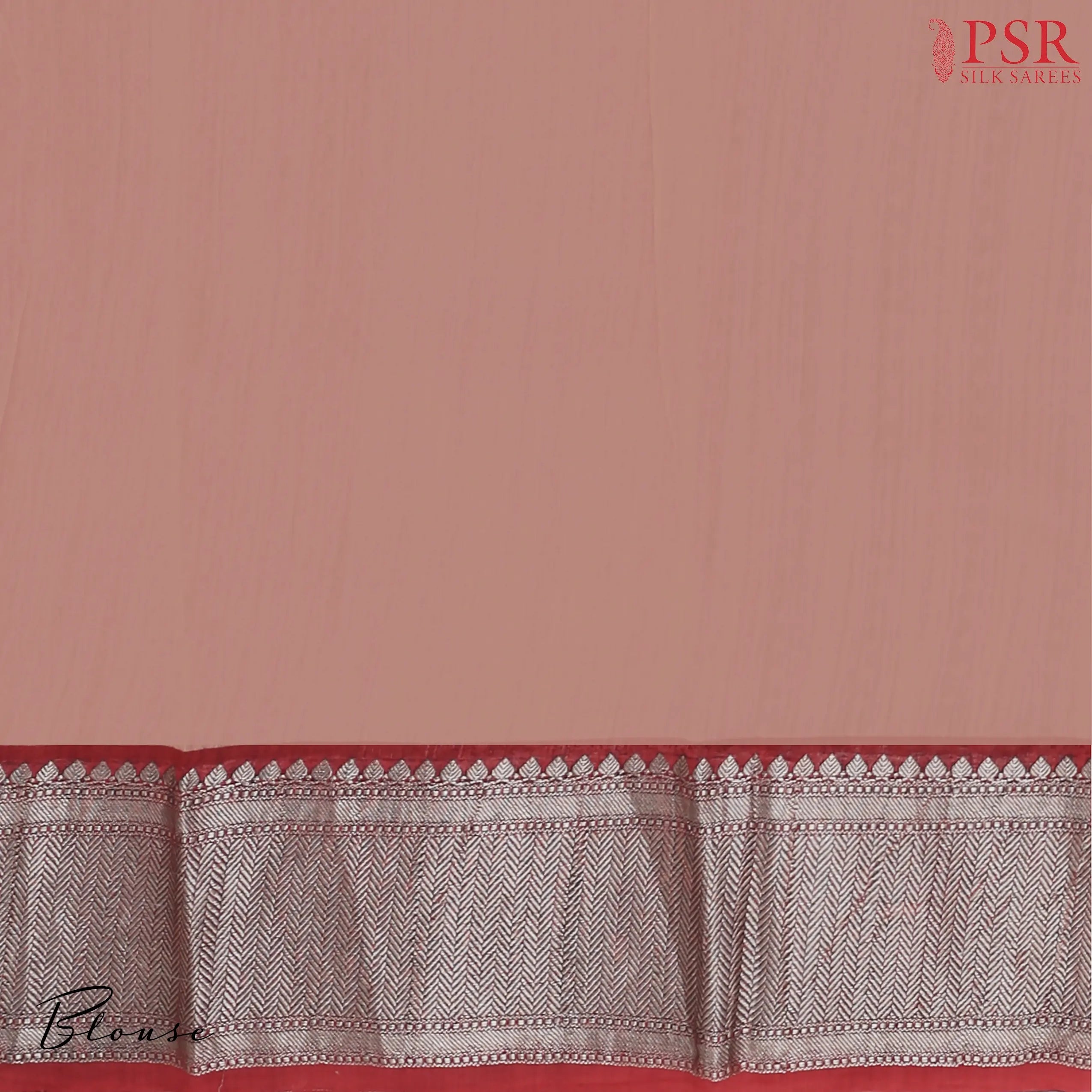 PSR Silk Sarees presents an elegant Red Munga Silk Saree paired with a graceful Peach combination, reflecting timeless charm and sophistication.