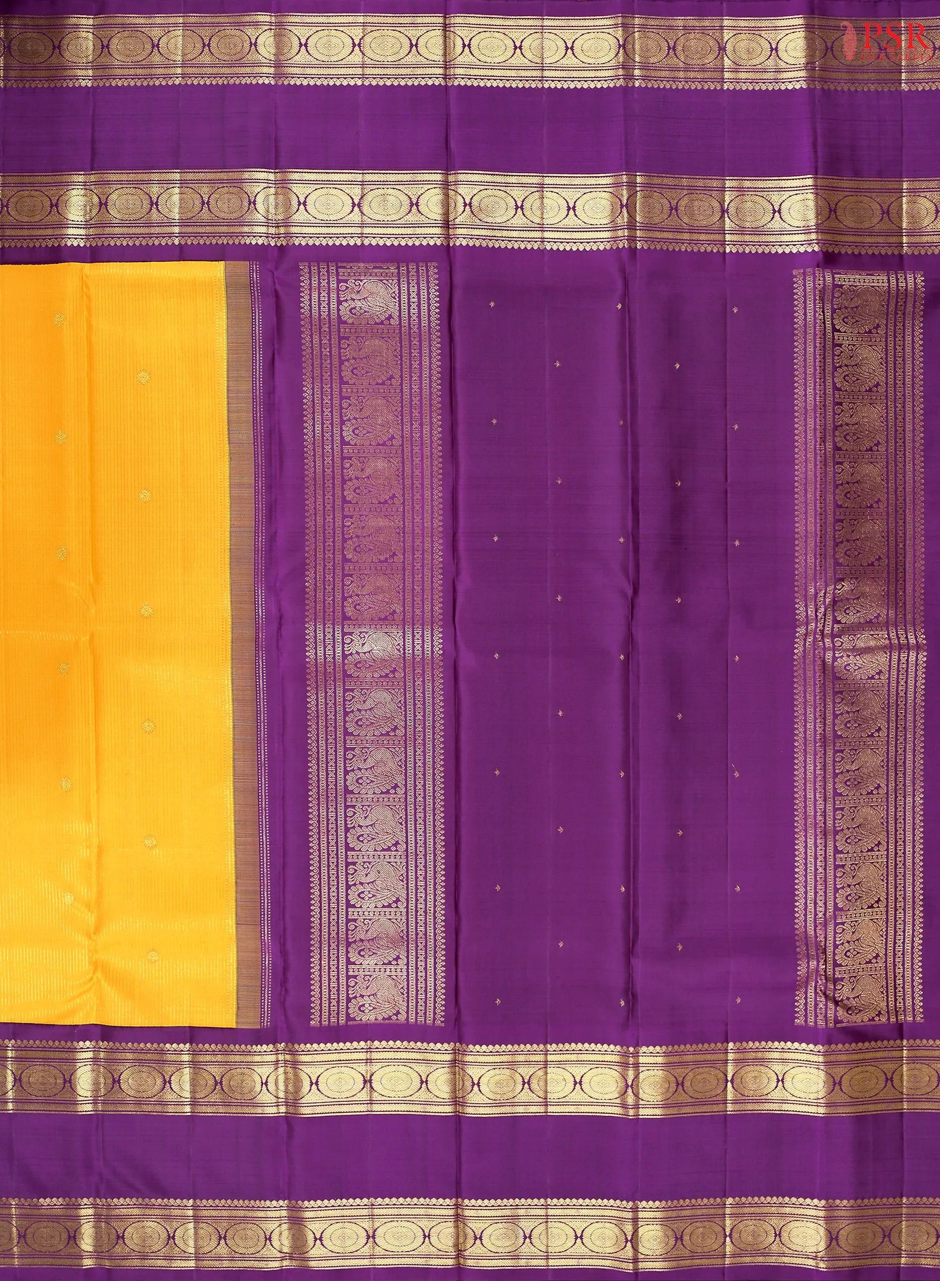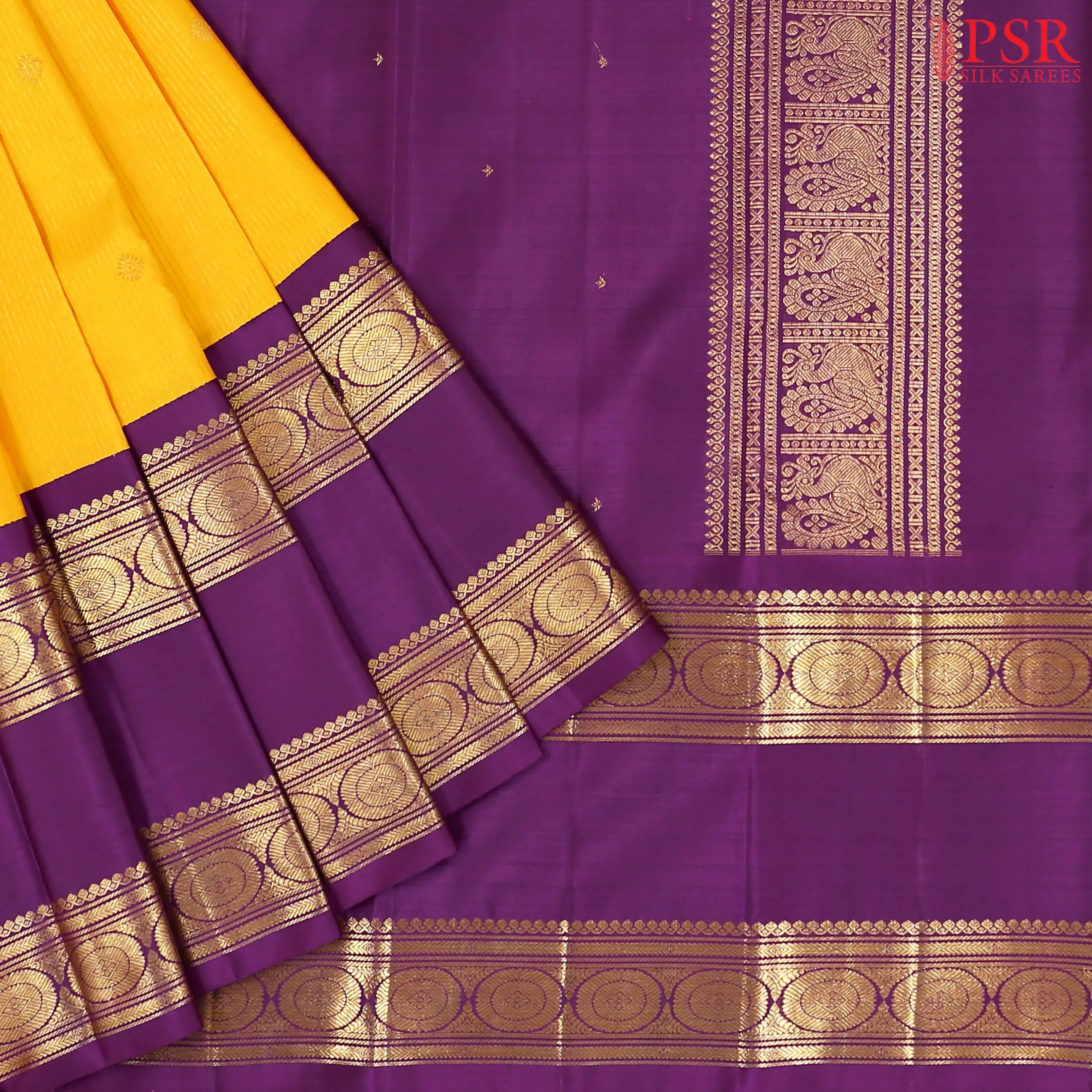 Amber Yellow & Vadamalli Purple Kanchipuram Silk Saree from PSR Silk Sarees is an elegant addition to the "Shrestha Kanjivaram" collection.