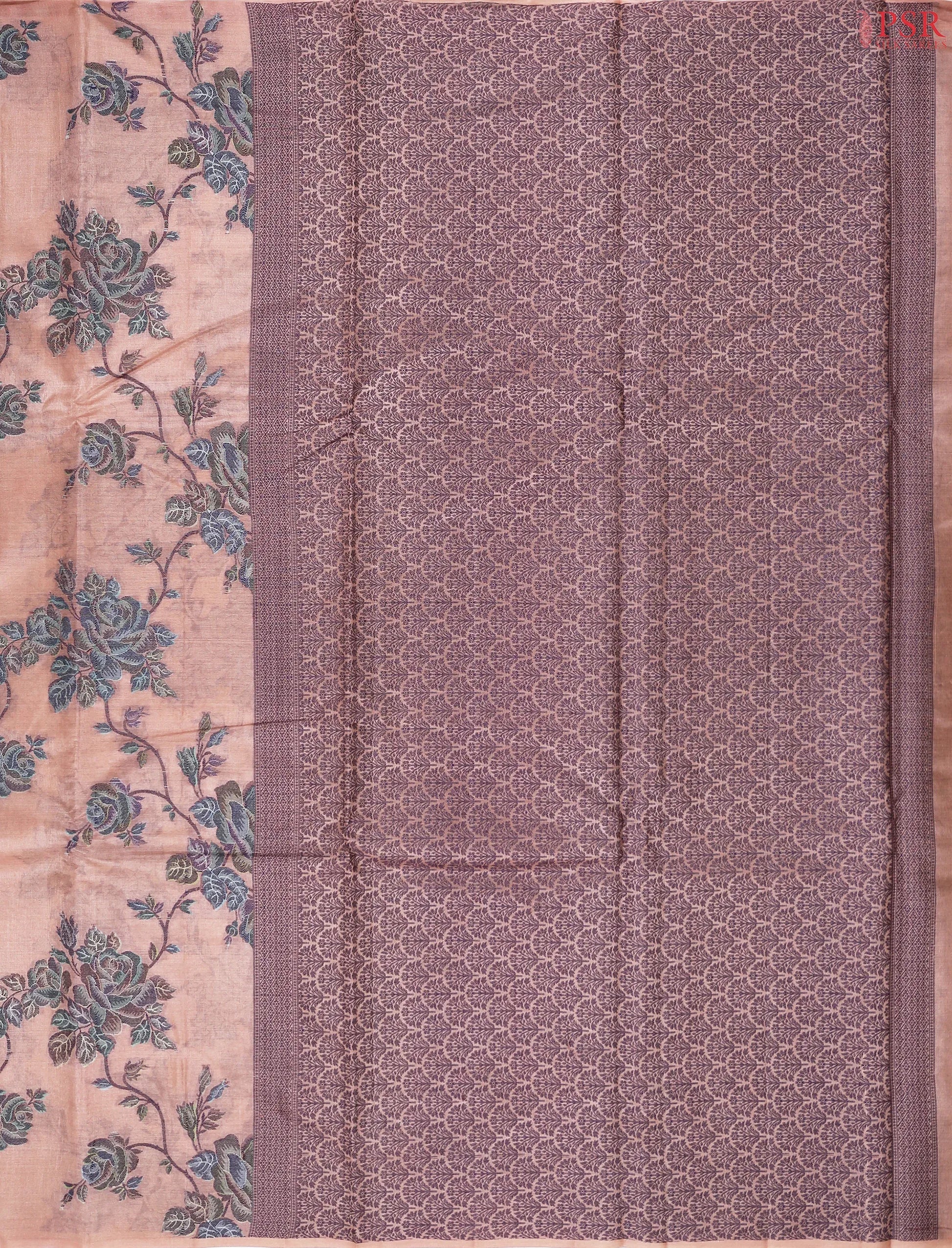PSR Silk Sarees presents a charming Coral Peach Banaras Tussar Cut Work Saree, a perfect blend of soft elegance and intricate craftsmanship. The rich texture of Banaras Tussar silk offers a graceful drape with a subtle sheen, making it ideal for both festive and elegant day wear.