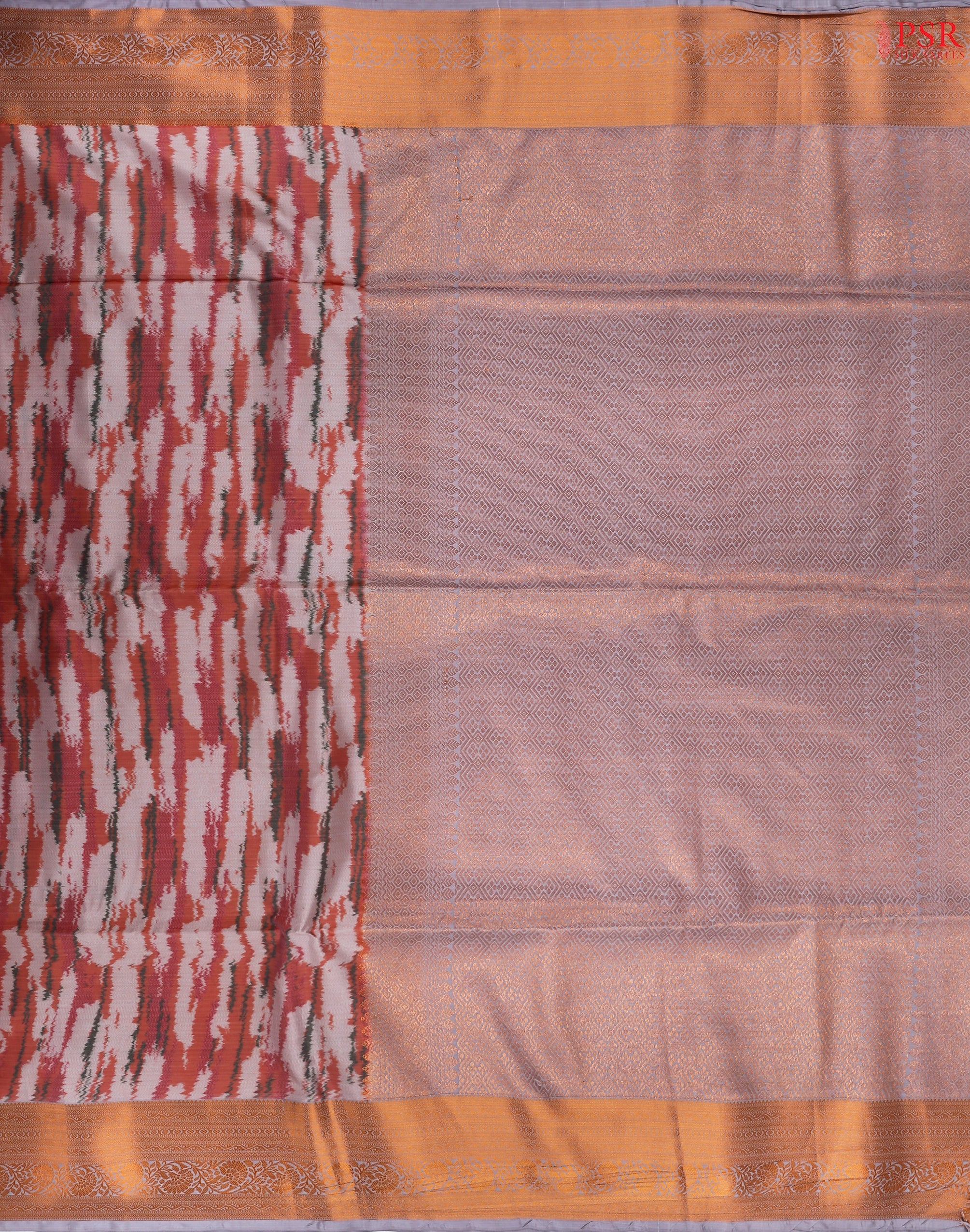 PSR Silk Sarees presents a Coral Red & Misty Lavender Soft Art Silk saree.