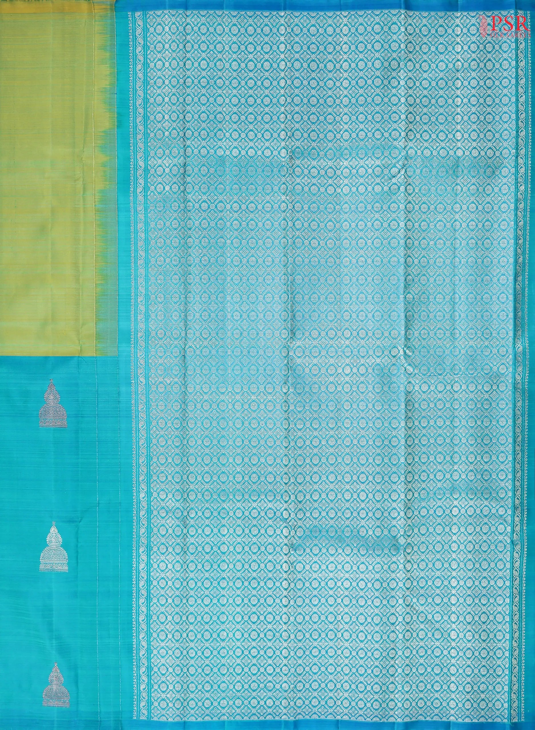 Cyan Blue & Yellow Green Half-and-Half Kanchipuram Silk Saree – PSR Silk Sarees