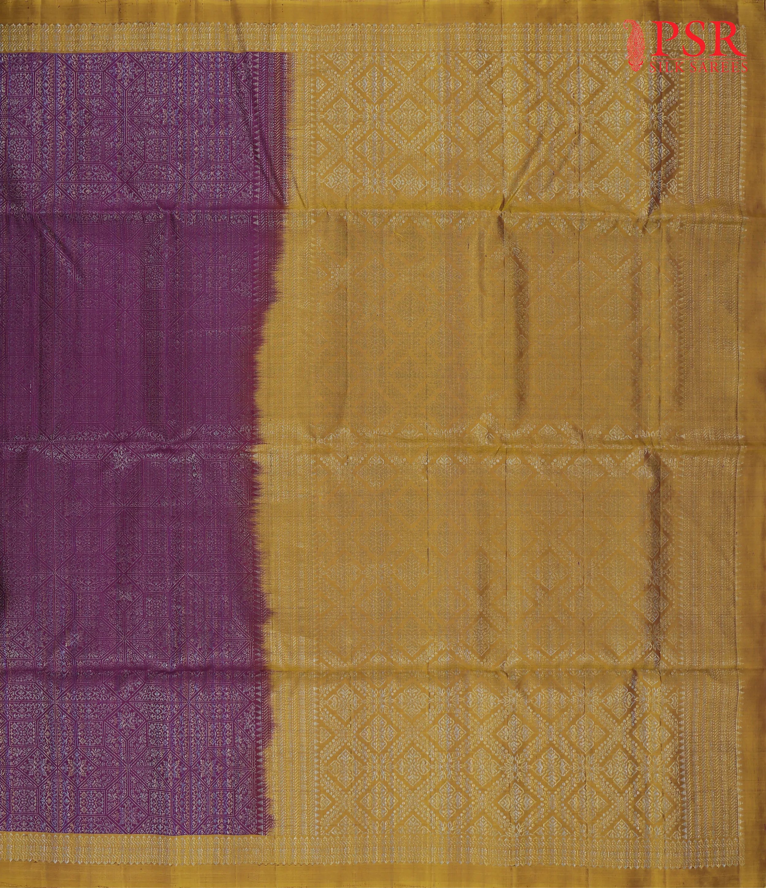 PSR Silk Sarees presents a graceful Dark Magenta Purple Soft Silk Saree paired with a sophisticated Dark Mustard combination, radiating warmth and traditional beauty.
