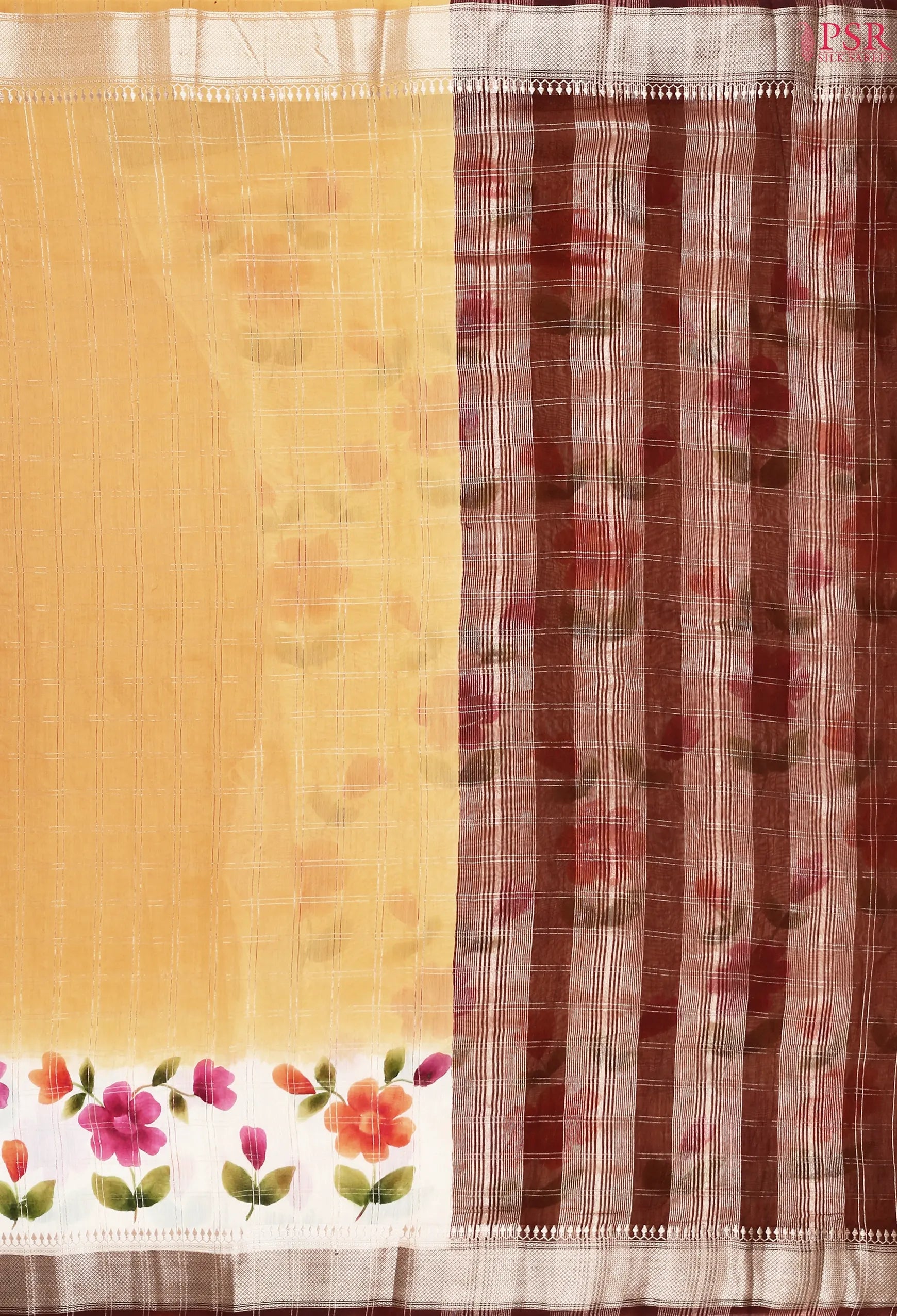 PSR Silk Sarees presents a Earth Yellow colored Assam Saree with combination of Beige color.