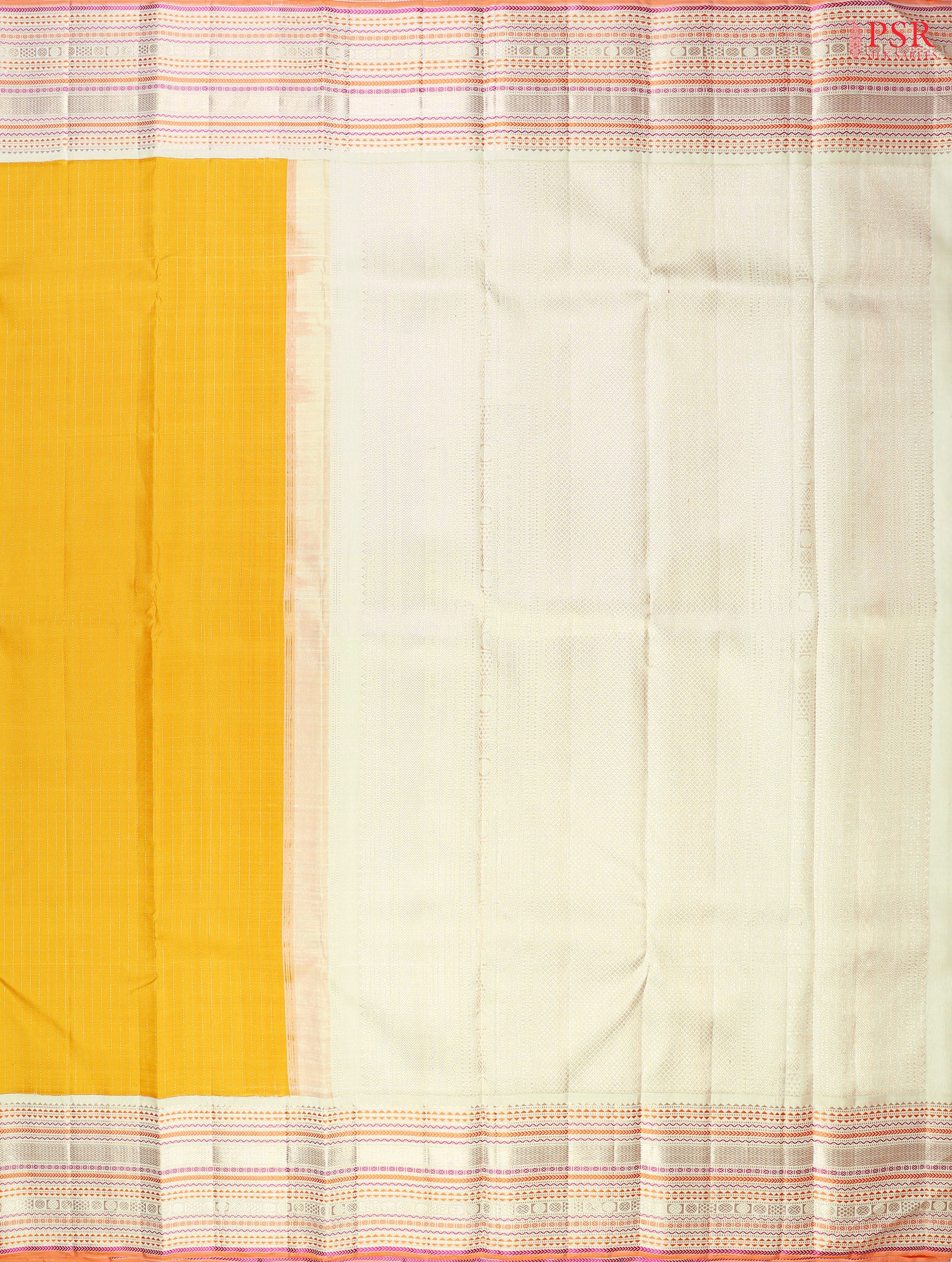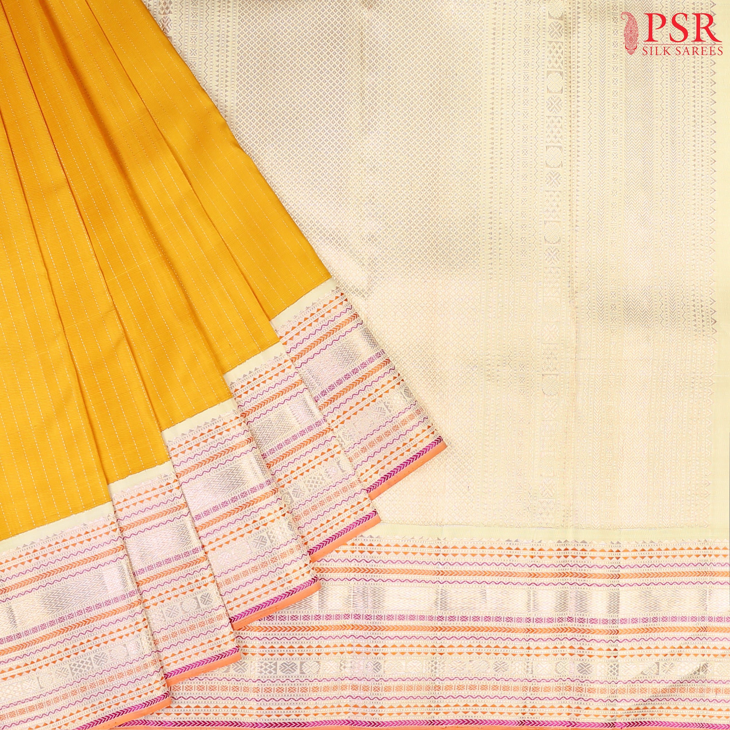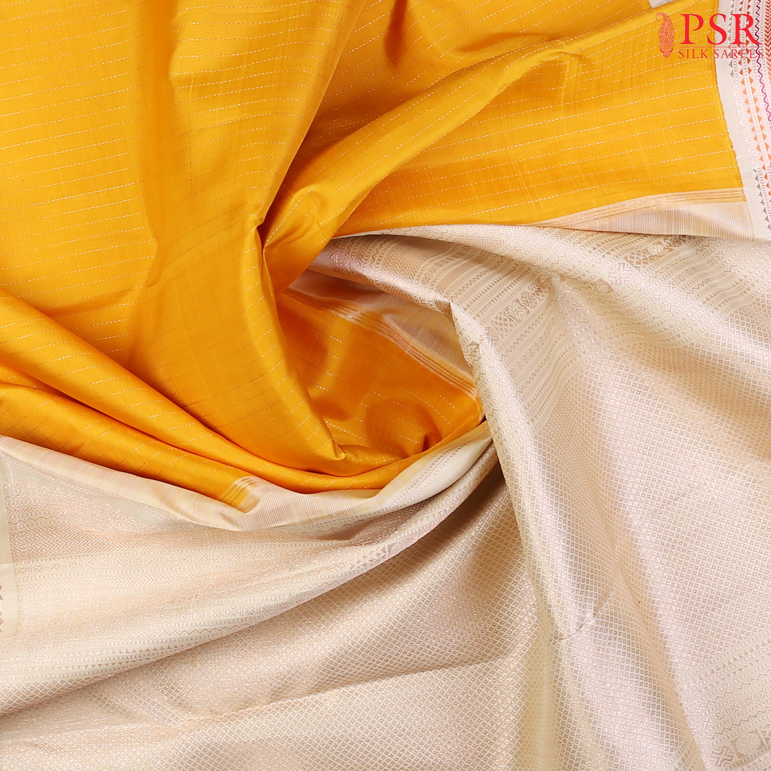 This Amber Yellow Kanchipuram Silk Saree from PSR Silk Sarees is a stunning masterpiece from the "Shrestha Kanjivaram" collection.