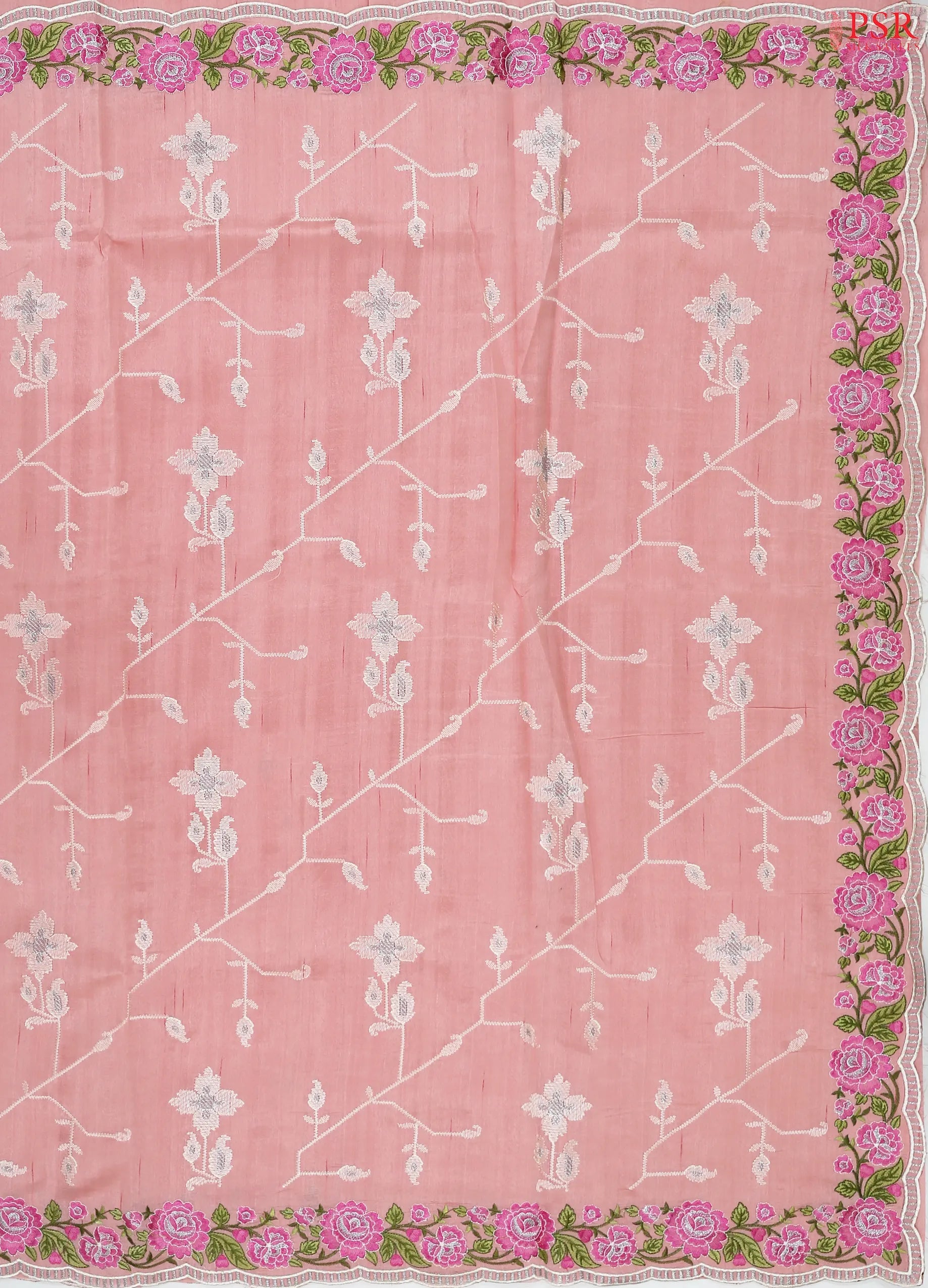 PSR Silk Sarees presents a Light Flamingo Pink colored Semi Tussar embroidery saree.