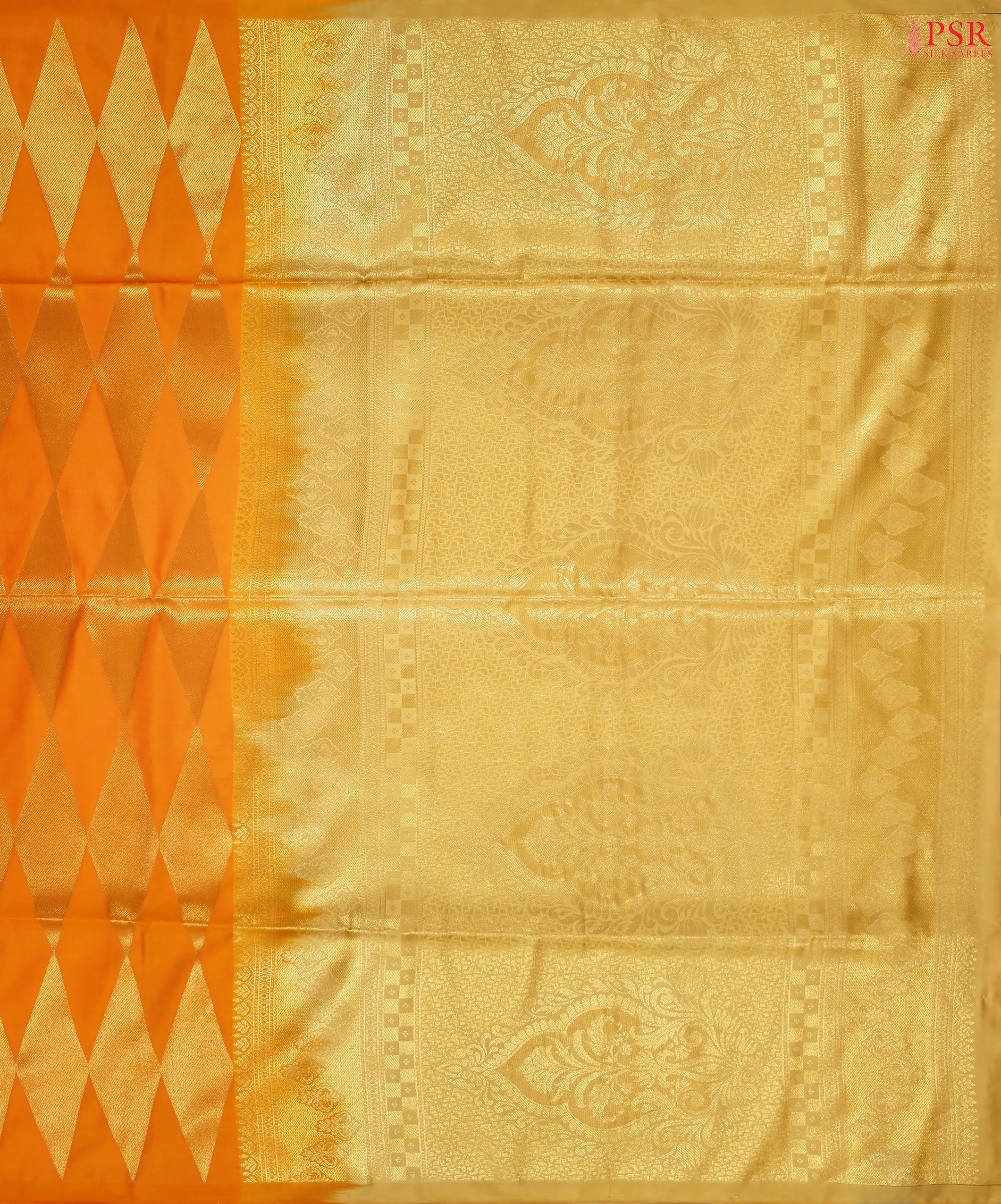 PSR Silk Sarees presents a Marigold Soft Art Silk Saree with combination of Tan color.