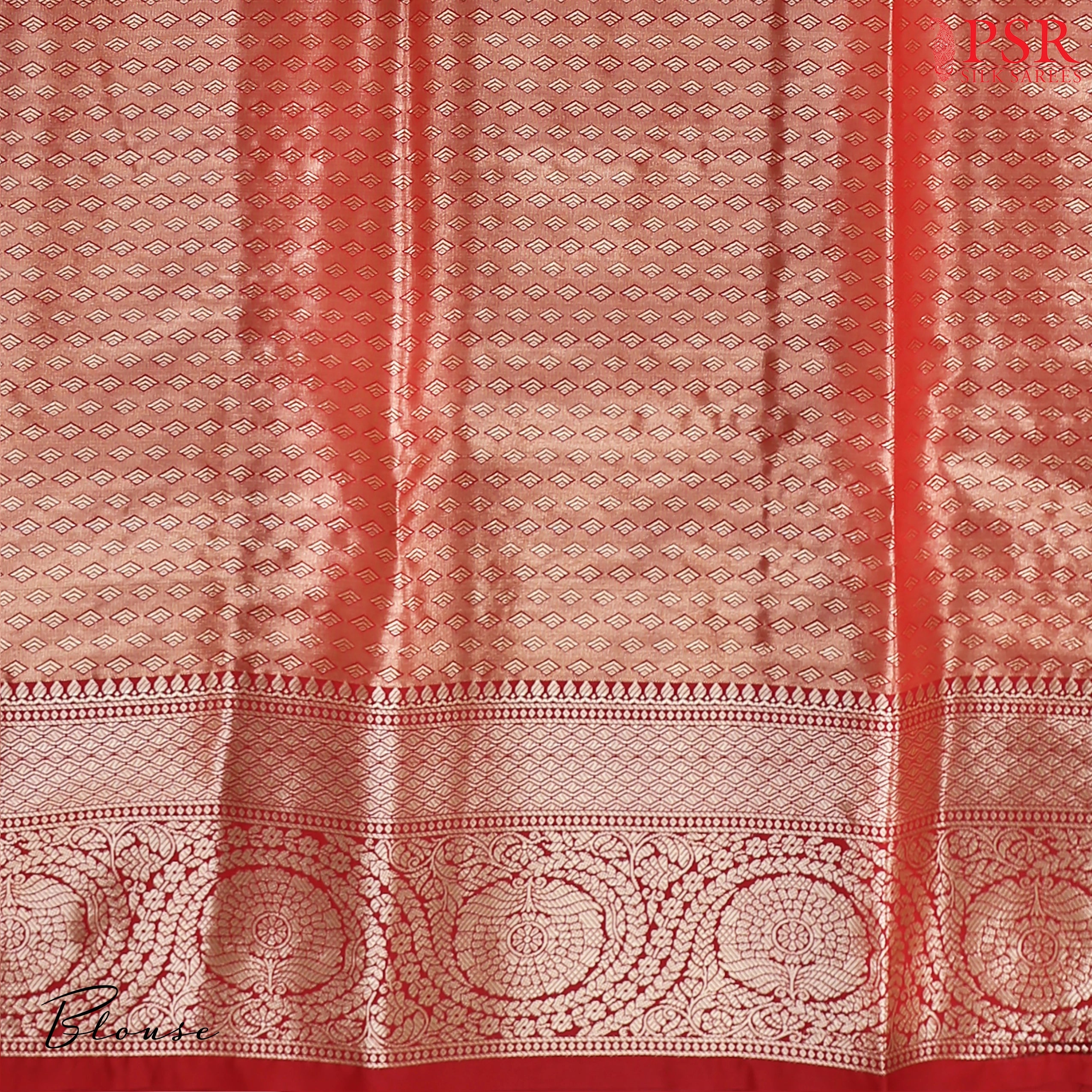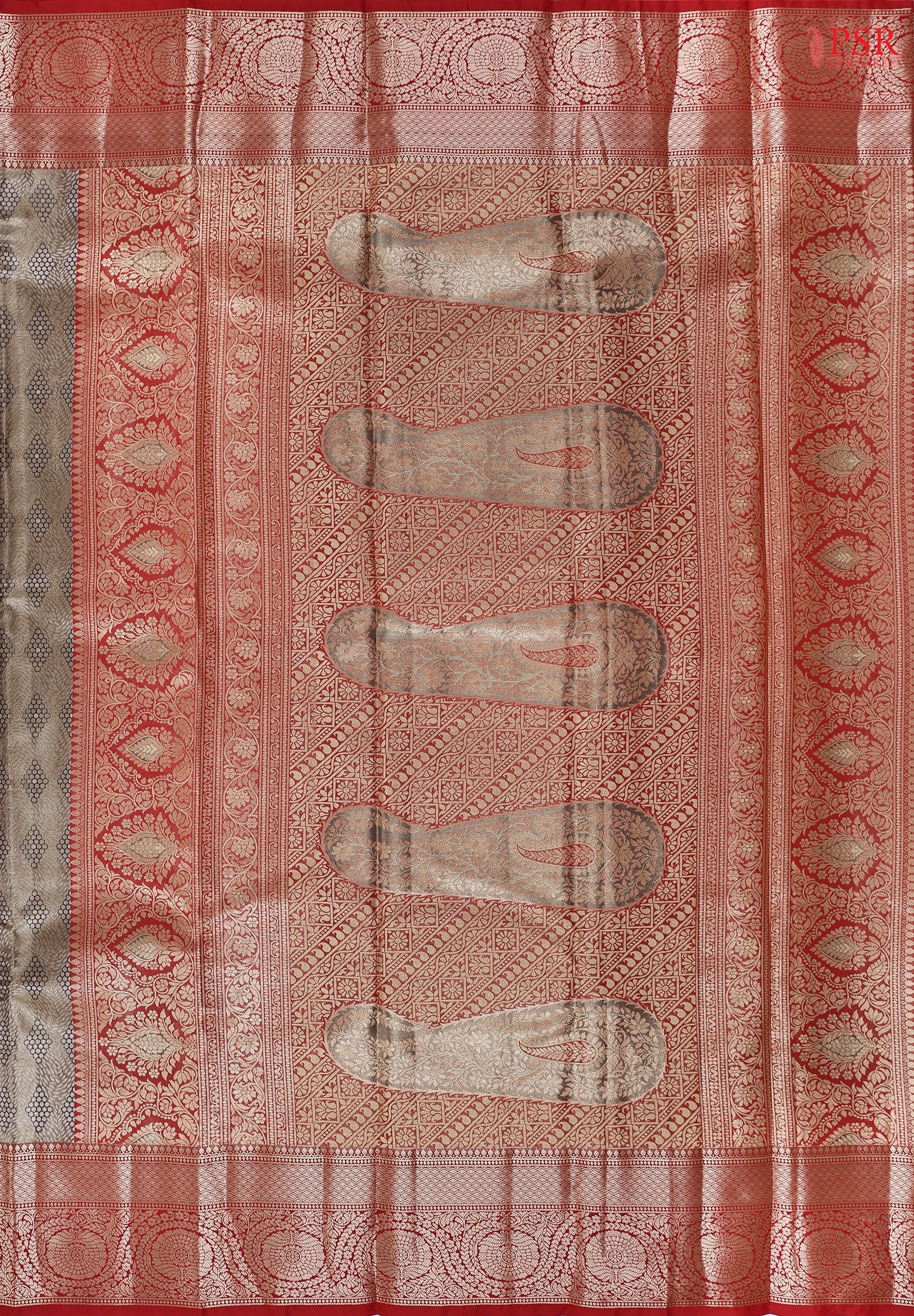 PSR Silk Sarees presents an Olive Grey colored Tissue Art Silk saree with combination of Red color.