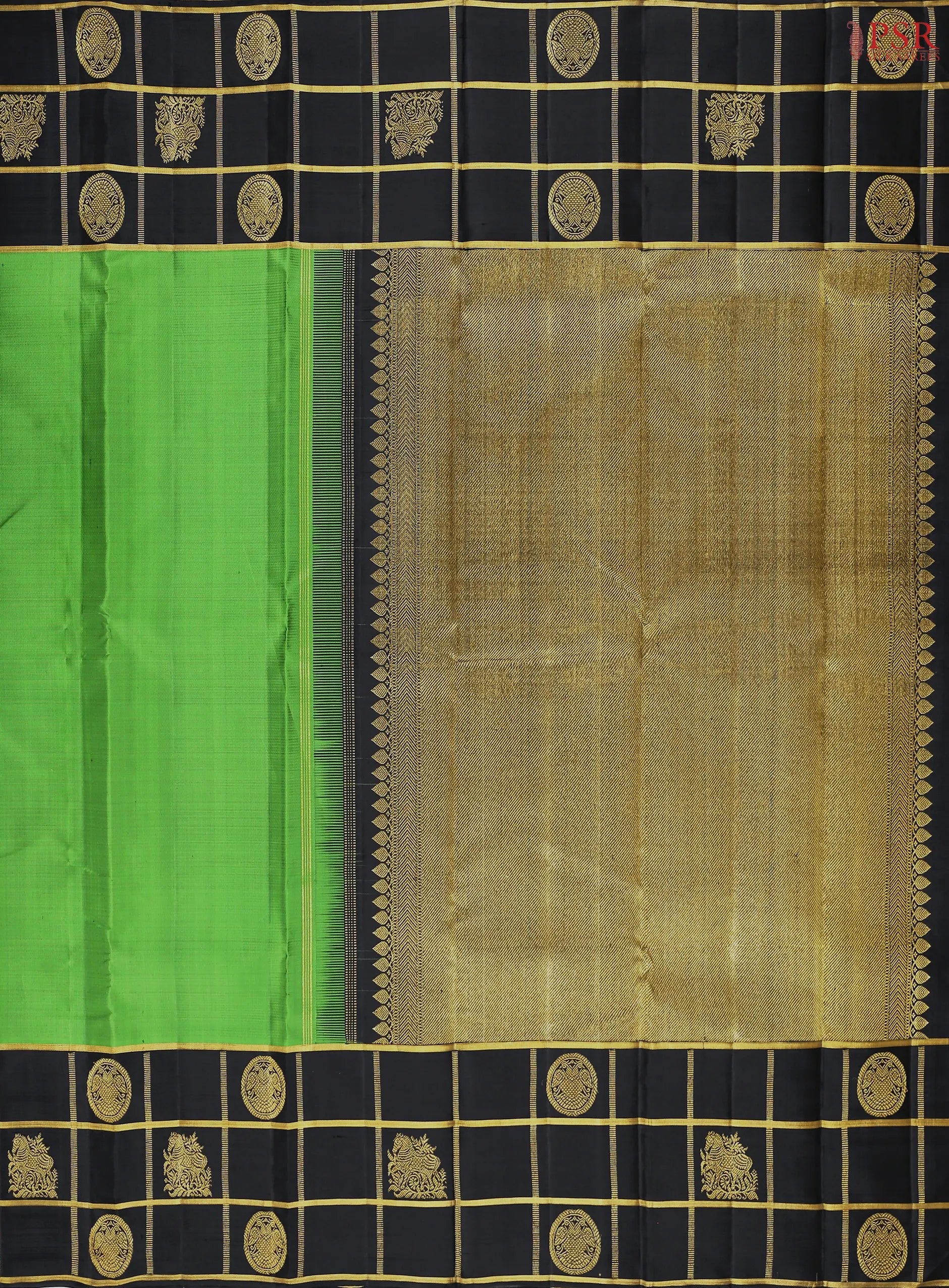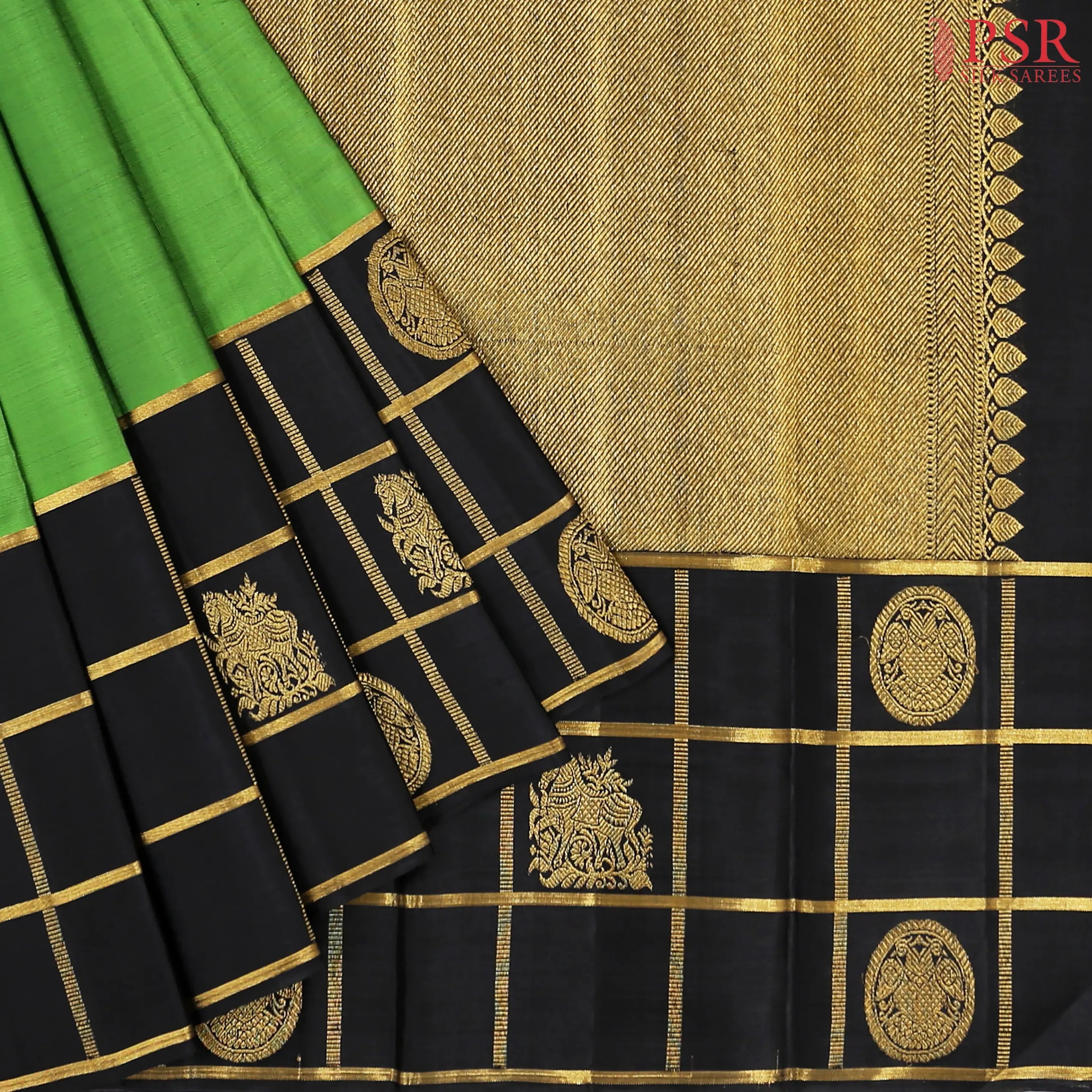 Parakeet Green Kanchipuram Silk Saree with Black contrast – Smartika Kanjivaram by PSR Silk Sarees
