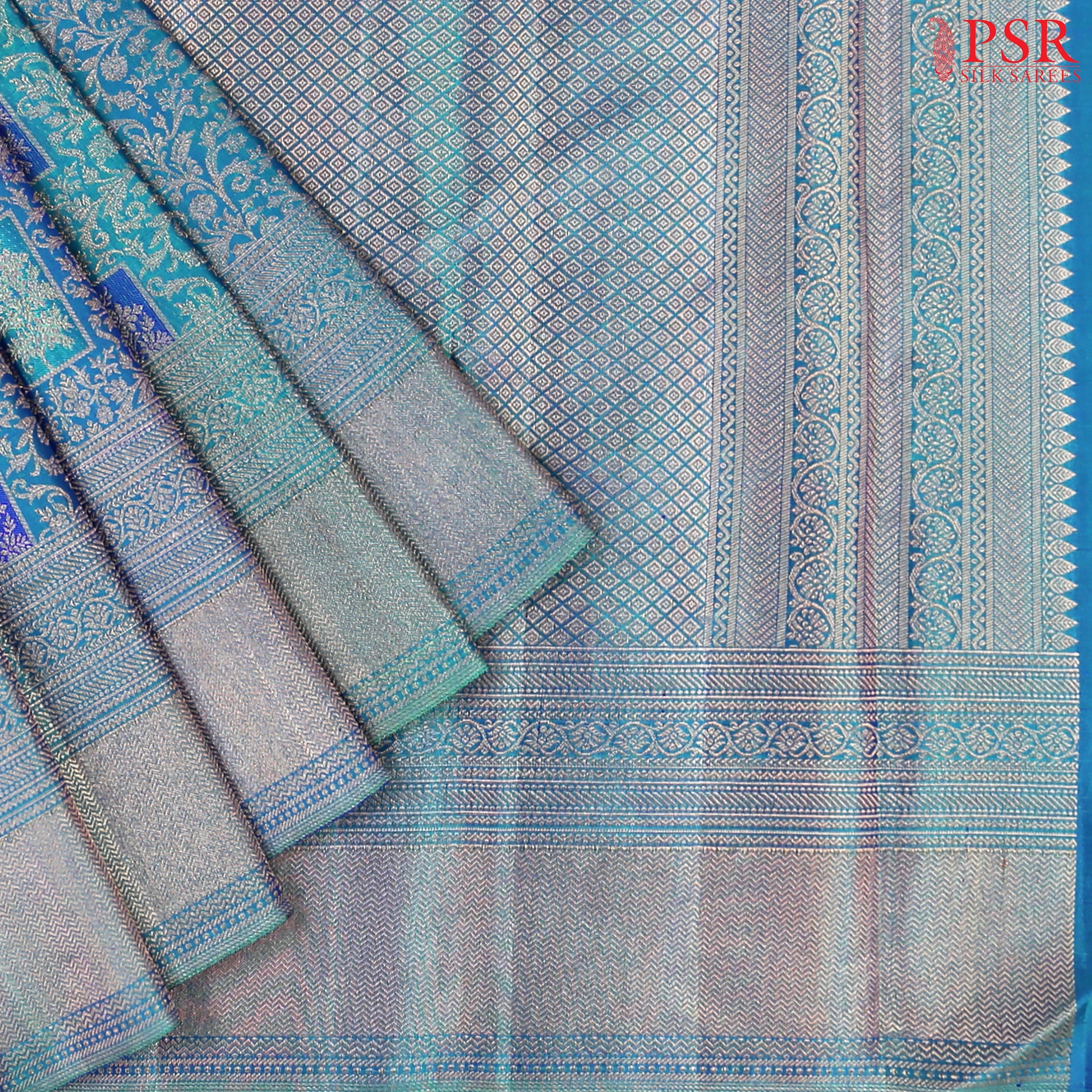 Grandeur in Peacock Blue – Kanchipuram Jacquard Silk Saree from PSR Silk Sarees