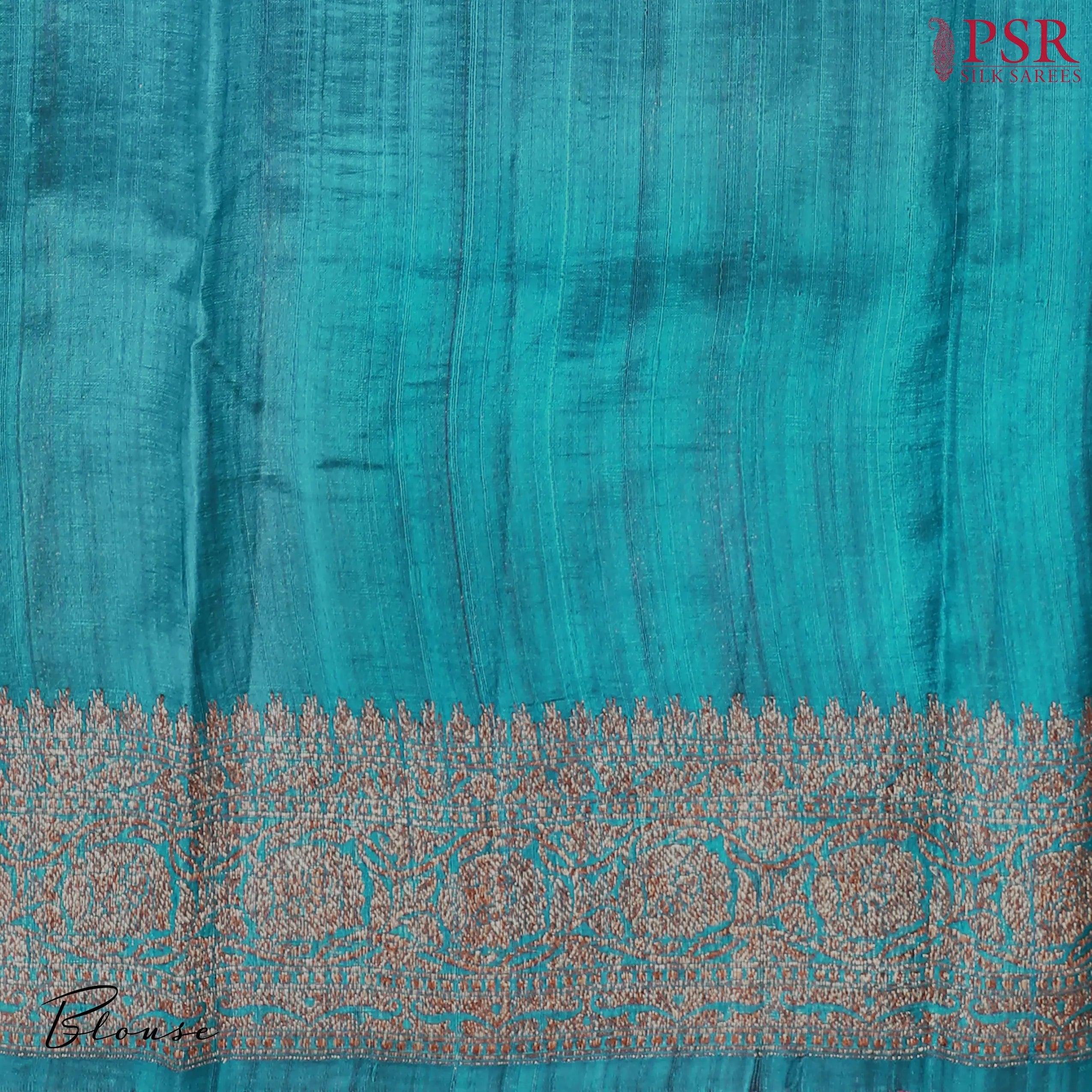 Timeless Beauty: Red & Peacock Blue Banaras Jute Silk Saree by PSR Silks!