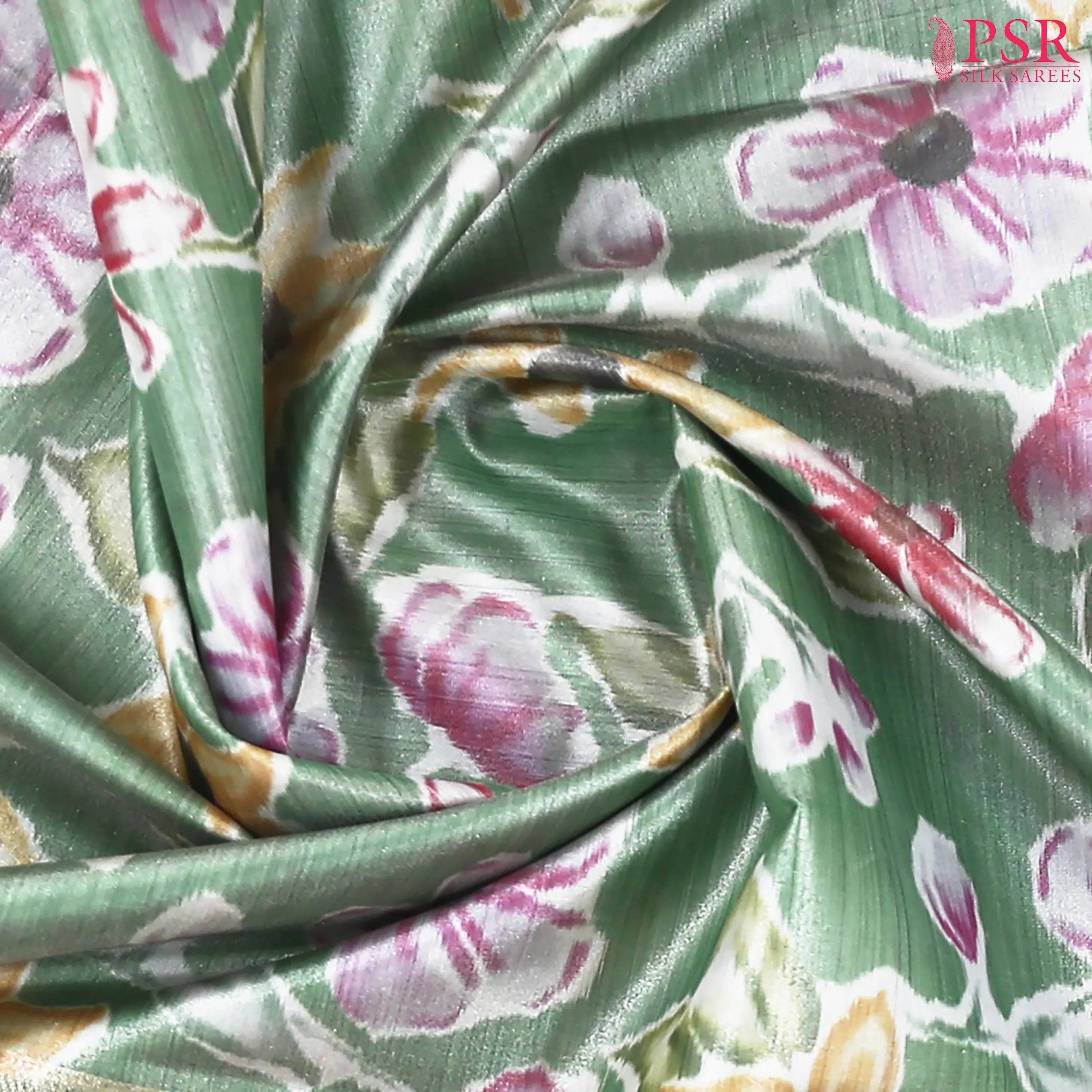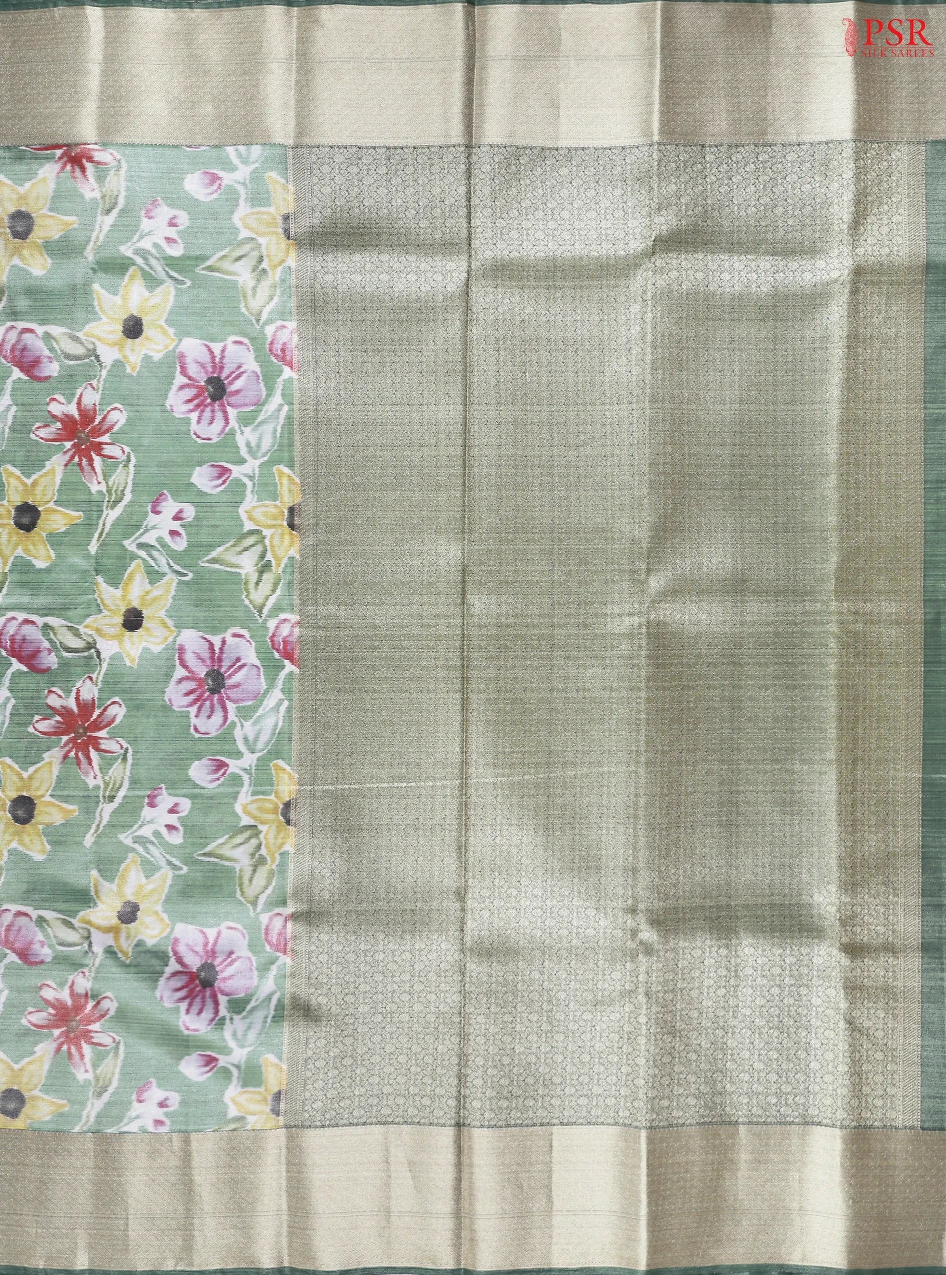 PSR Silk Sarees presents a Sage Green Printed Tissue Art Silk Saree.