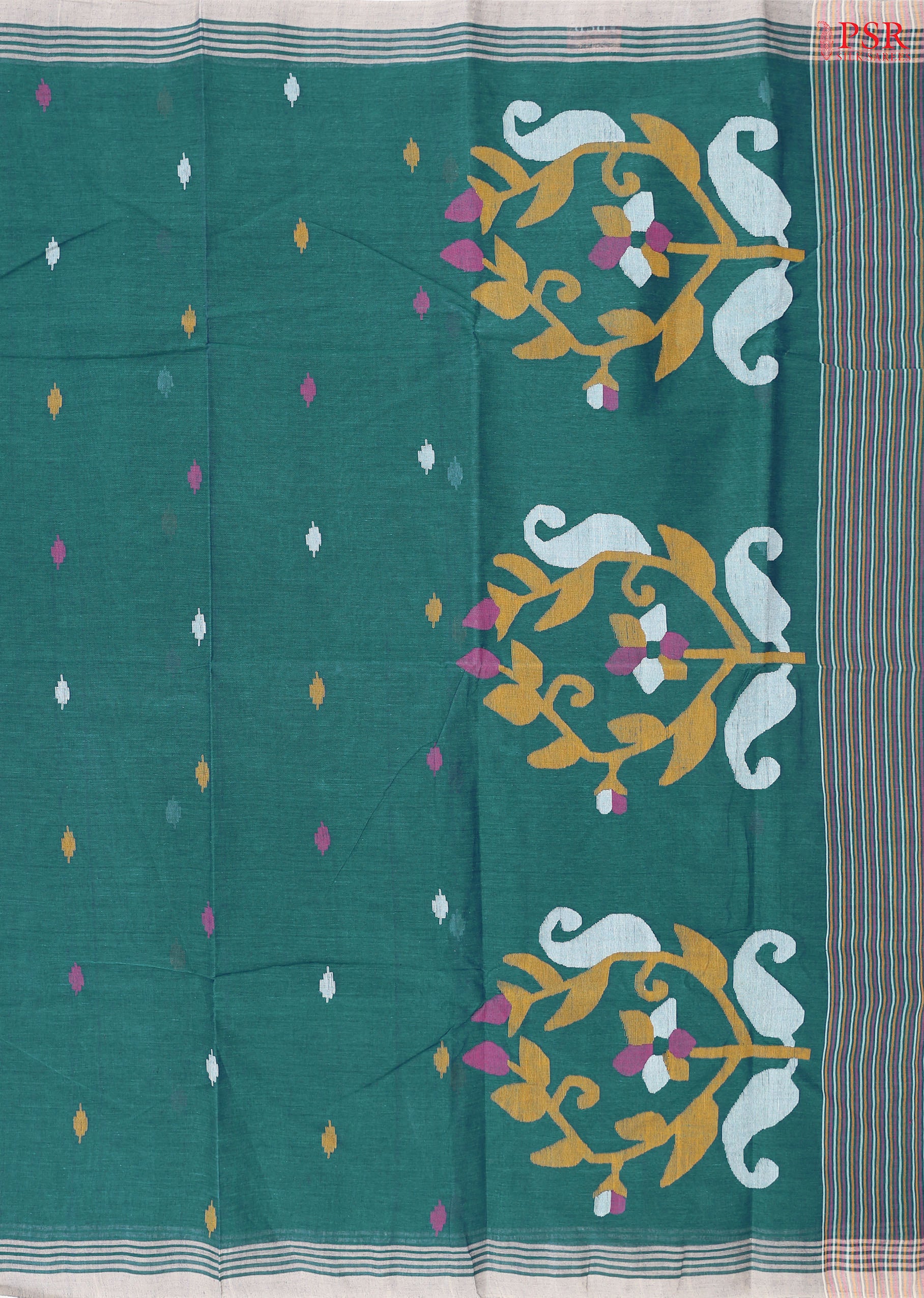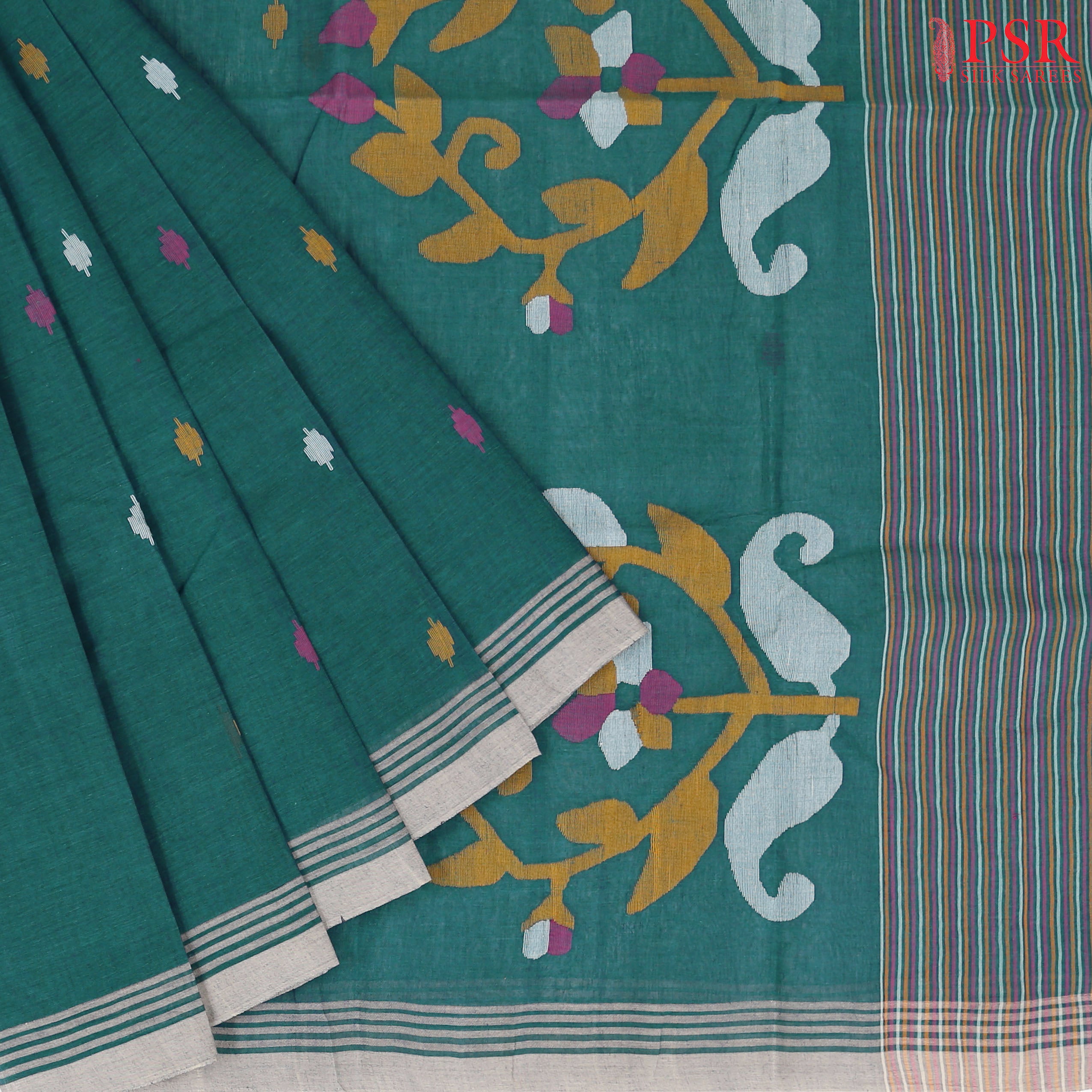 PSR Silk Sarees presents a Teal Green colored Bengal Cottton saree.