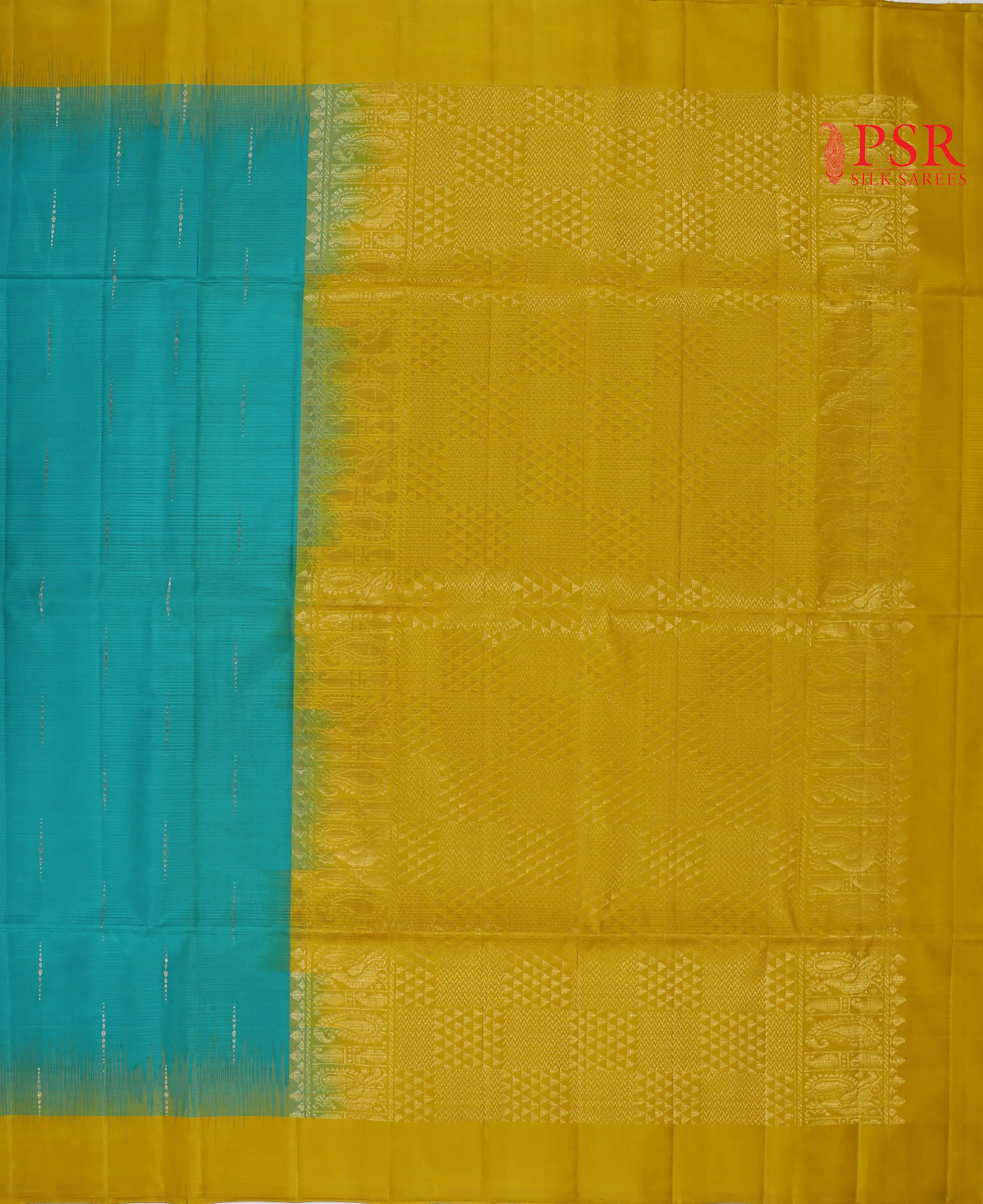 Turquoise Lake & Olive Yellow Soft Silk Saree | PSR Silk Sarees