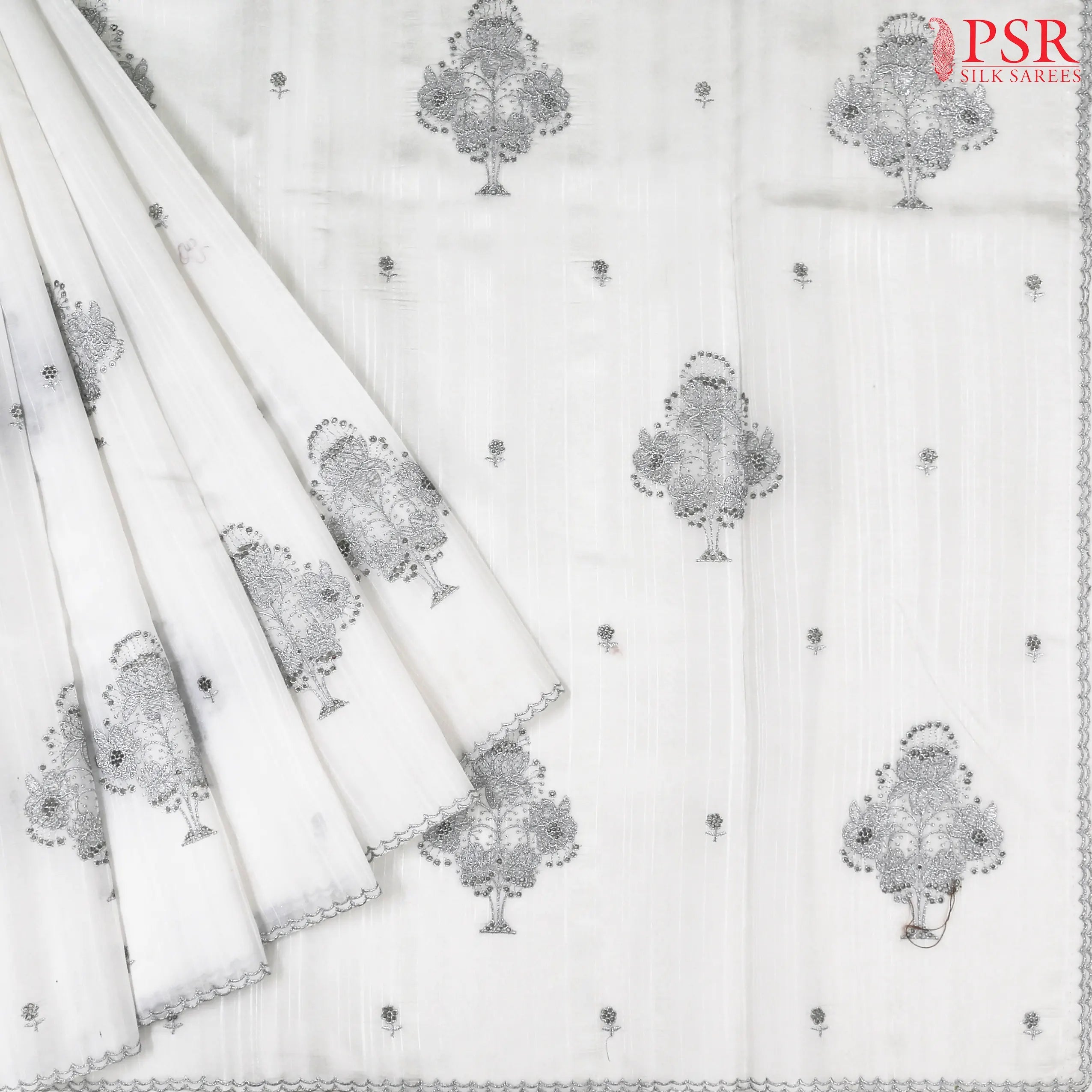 PSR Silk Sarees presents a Whitee Kosa Embroidery Saree