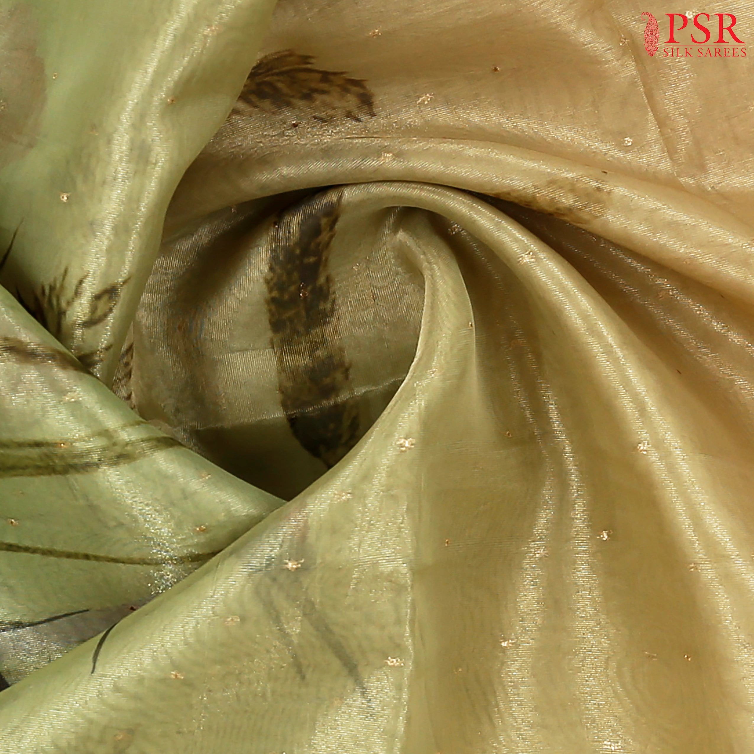 PSR Silk Sarees presents a Yellow Green colored Tissue Organza saree.