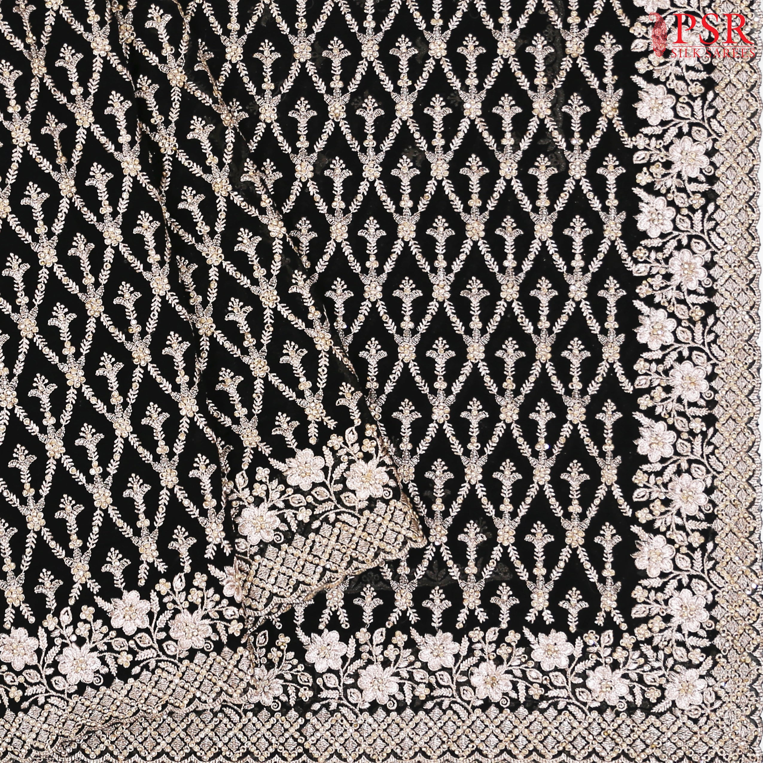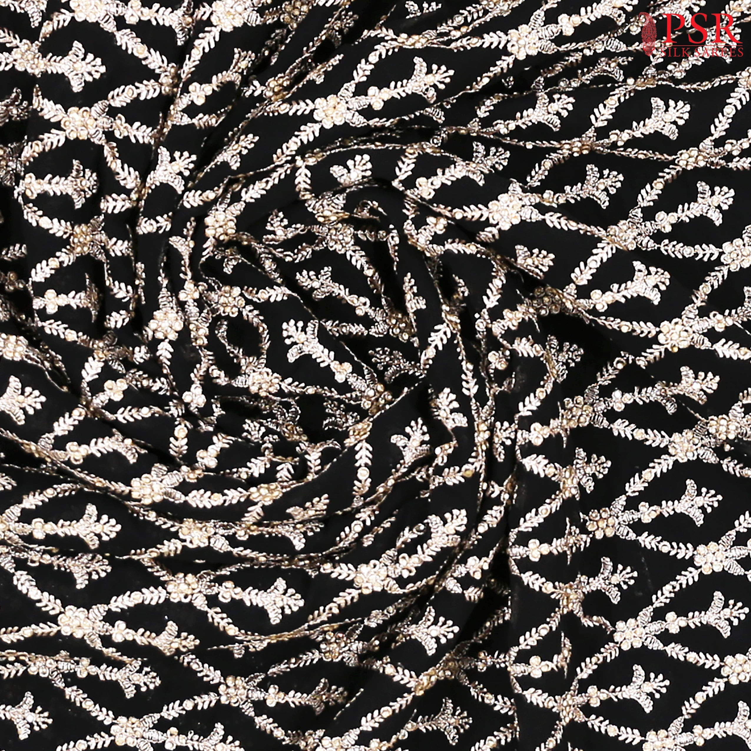 PSR Silks presents a Black colored Georgette Saree with an enchanting Embroidery Work.