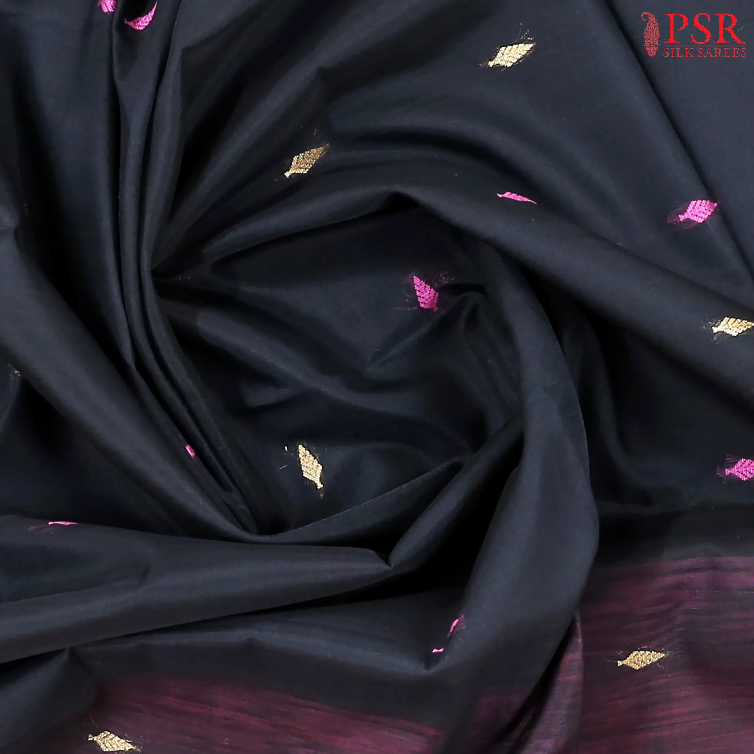 PSR Silk Sarees presents a Black colored Silk Cotton saree with contrasting combination of Pink color.