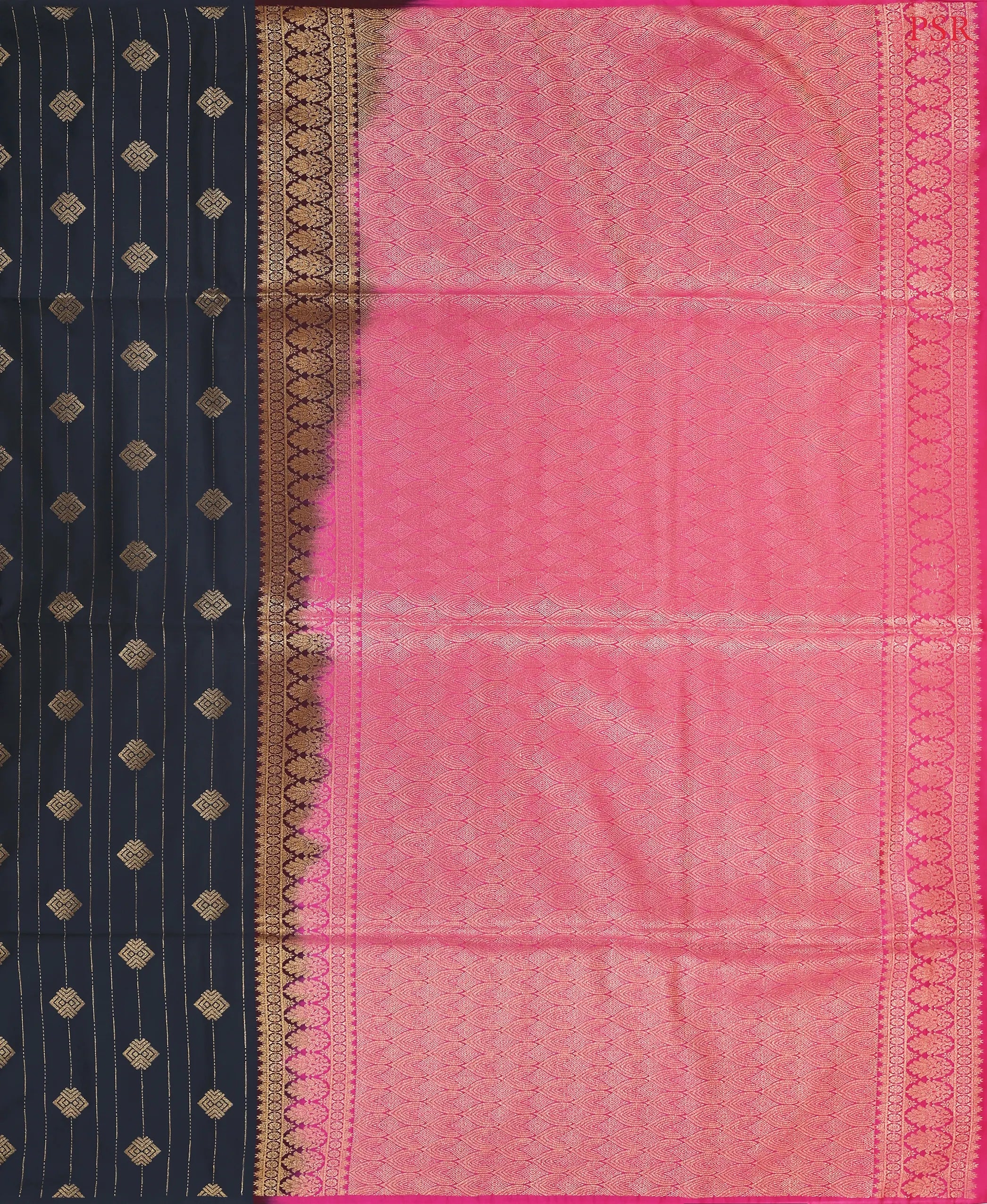 PSR Silk Sarees presents a Black Soft Art Silk Saree with combination of Pink color.