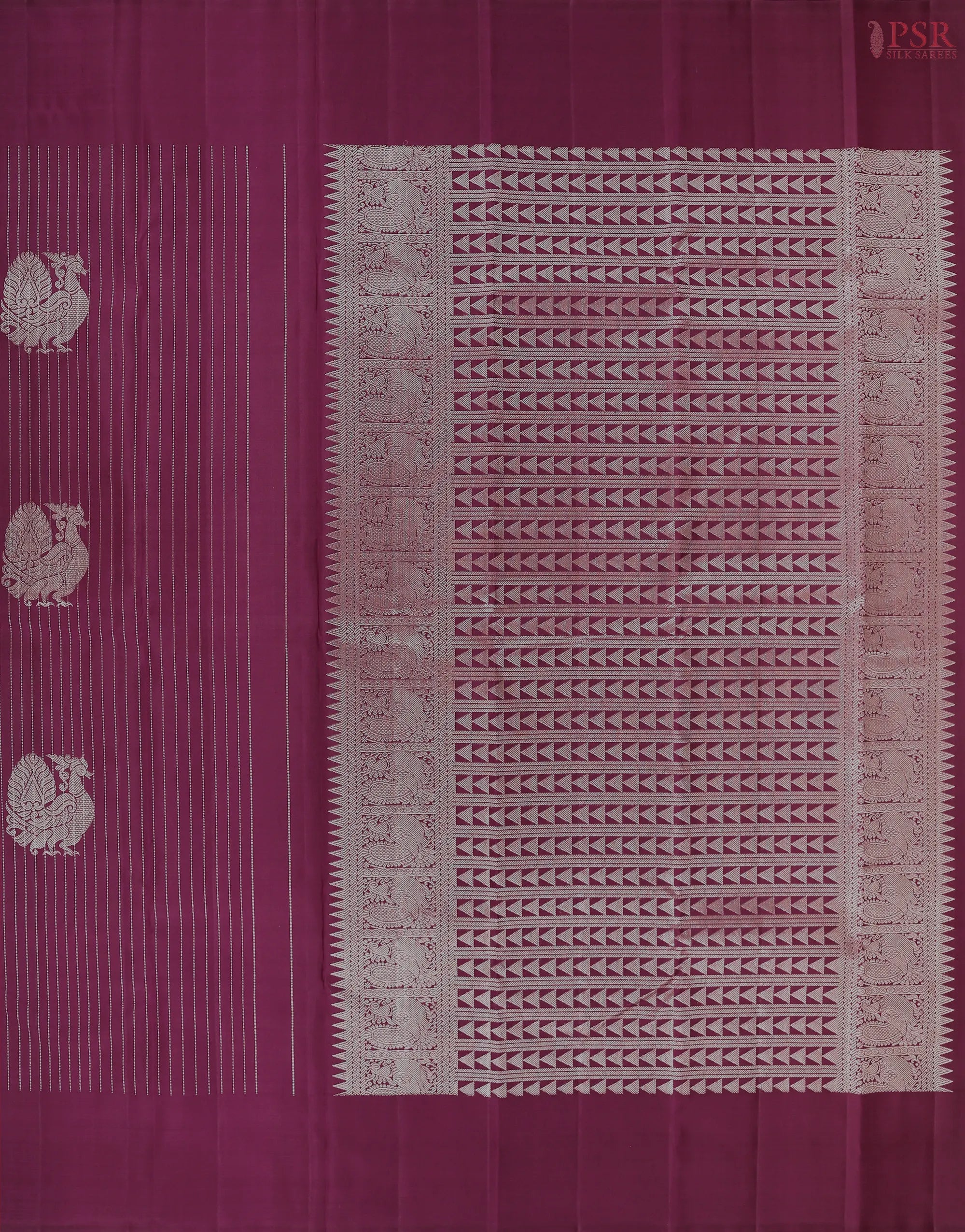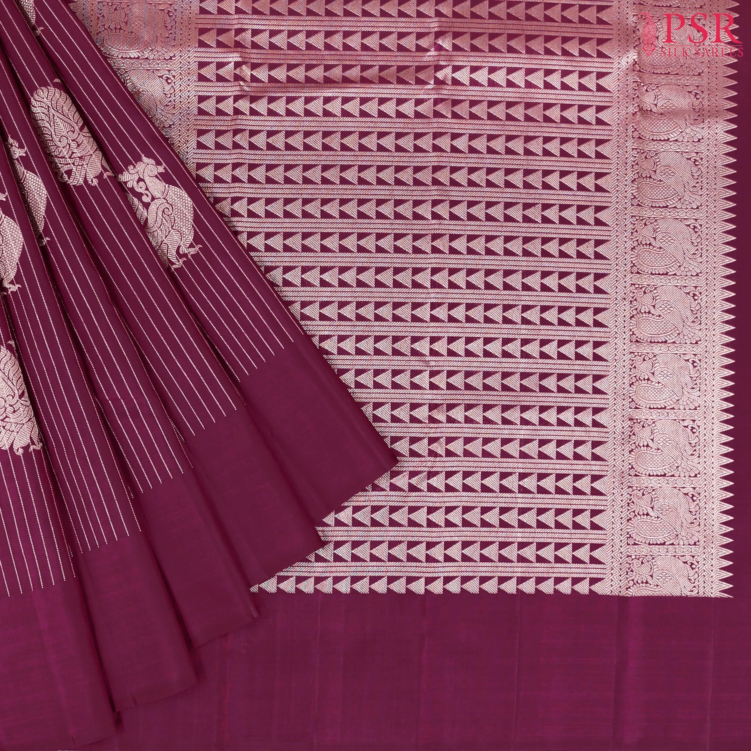 Burgundy Kanchipuram Silk Saree with Zari Stripes & Floral Motifs – PSR Silk Sarees