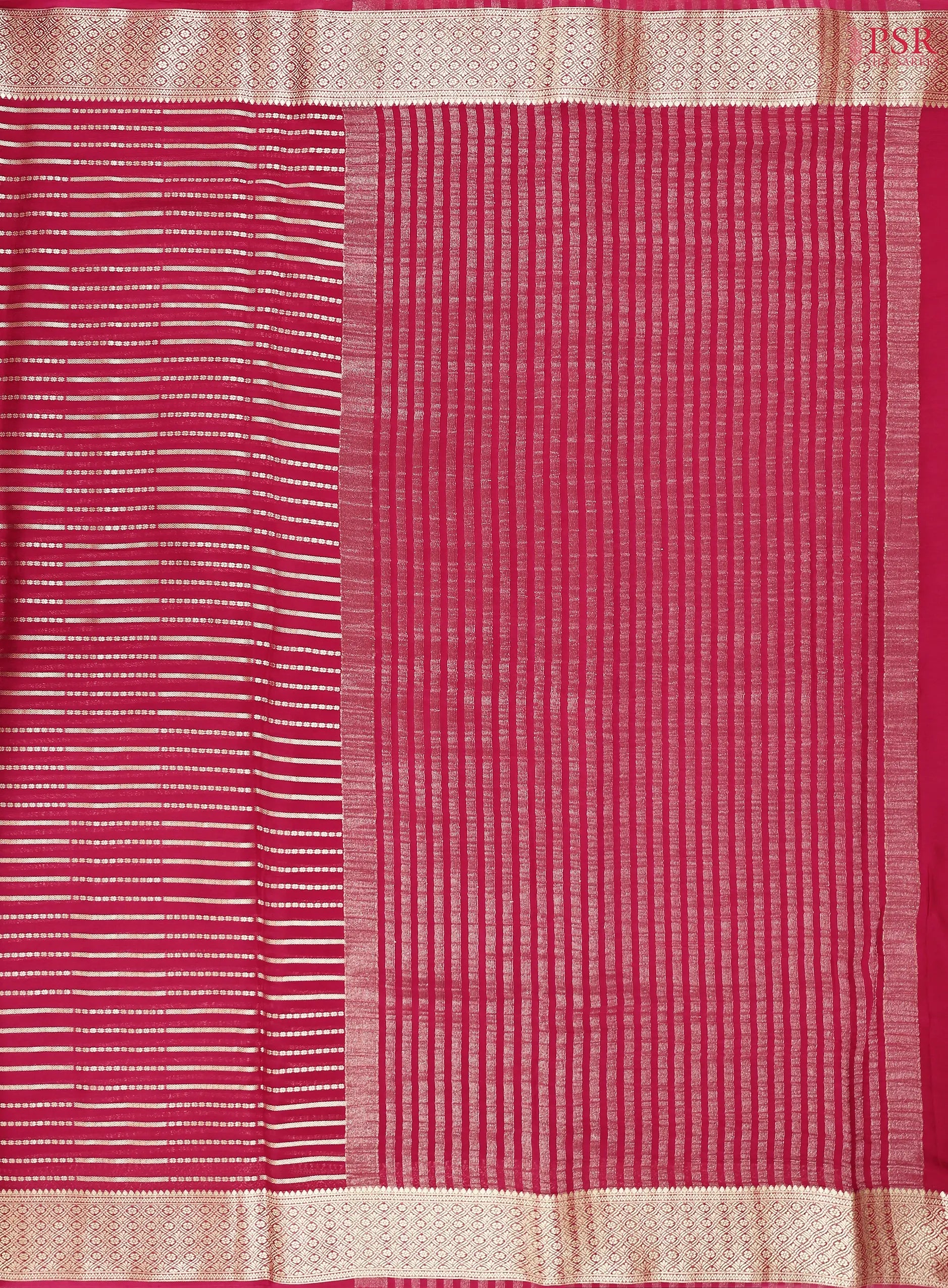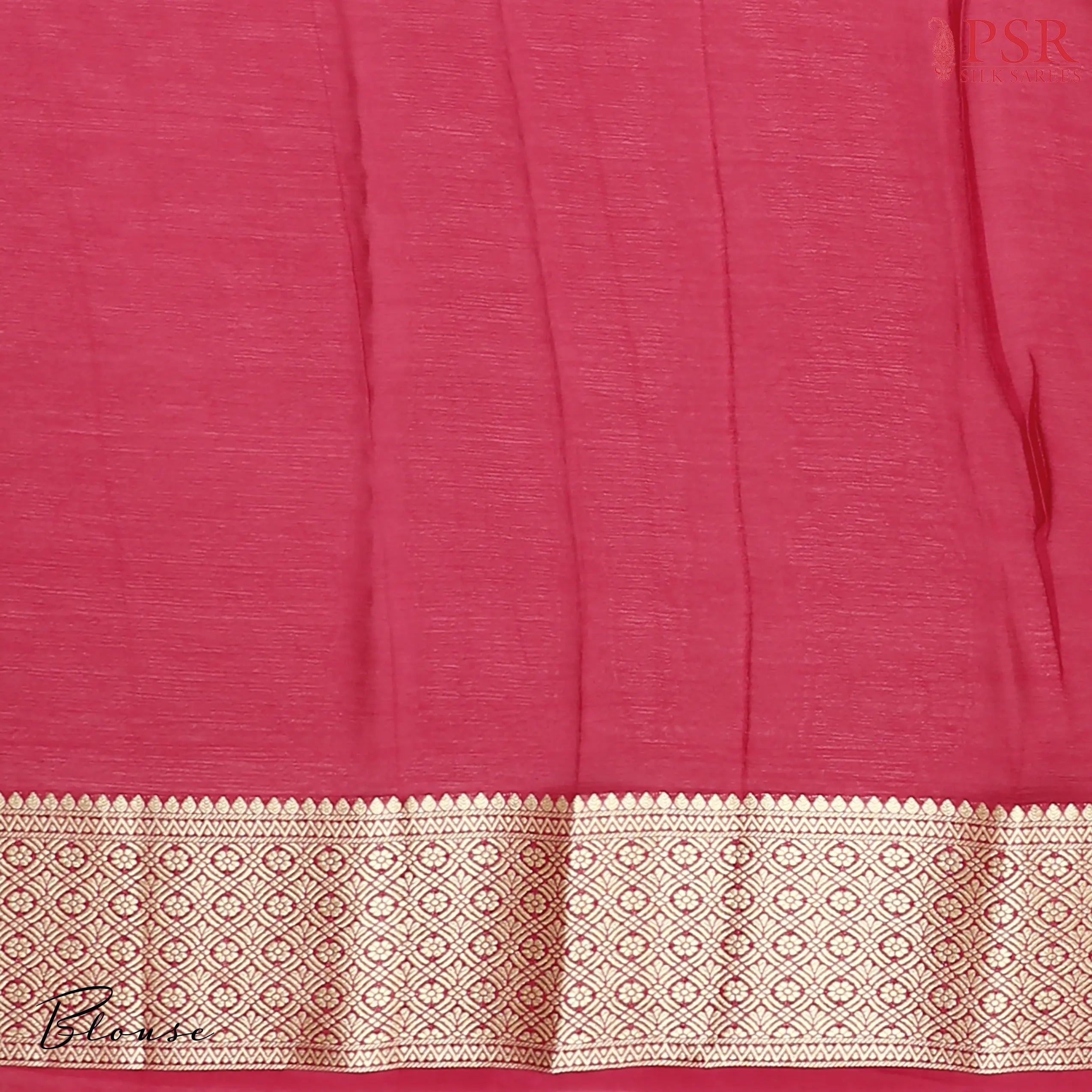 PSR Silks presents a Cerise Red colored Semi Mysore Binny Silk Saree with zari work.