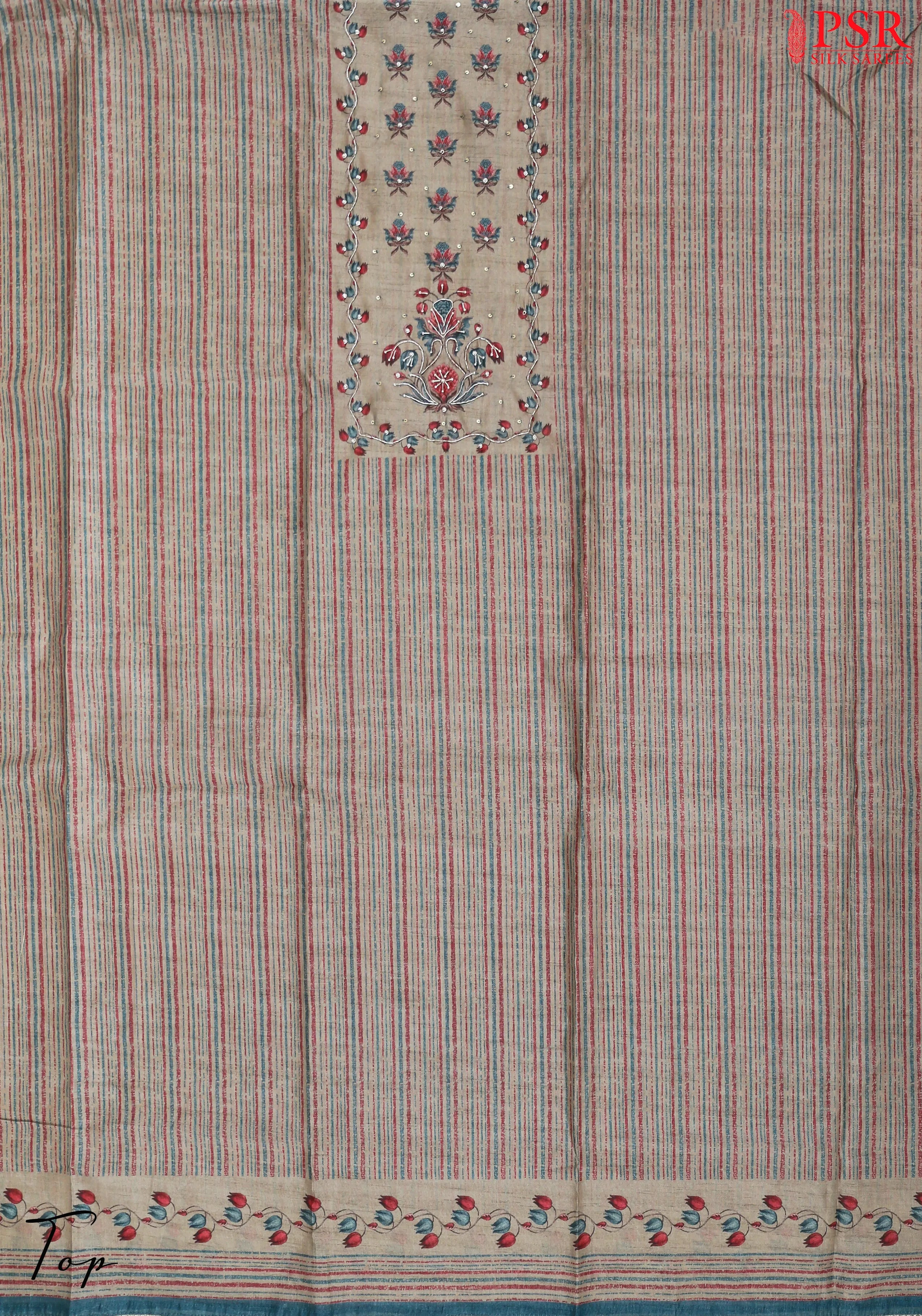 PSR Silks presents Chikoo Silk Cotton Dress Material with combination of Teal color.