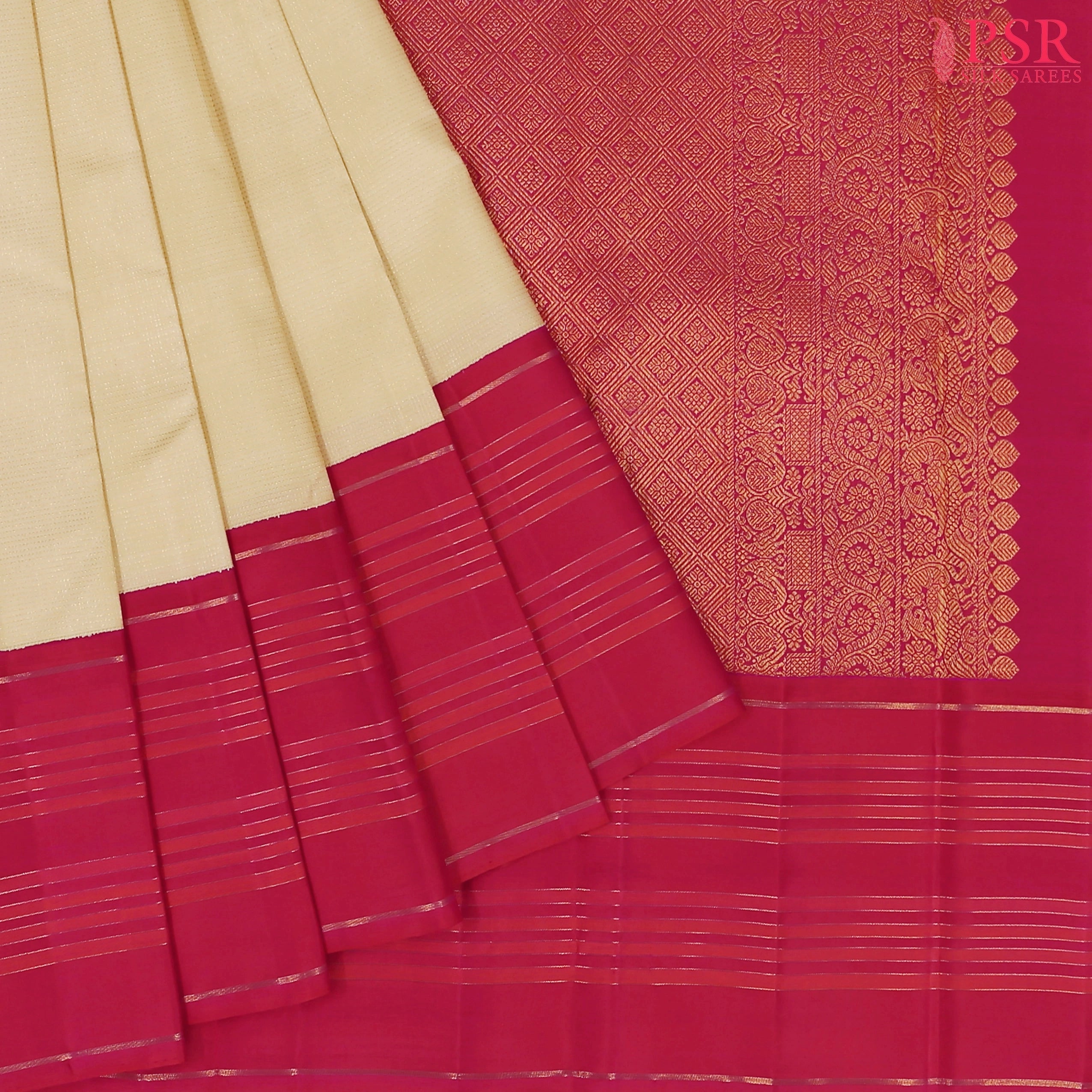 Grace in Every Drape – Cream Beige & Hot Pink Kanchipuram Silk Saree from the Smartika Kanjivaram Collection by PSR Silk Sarees