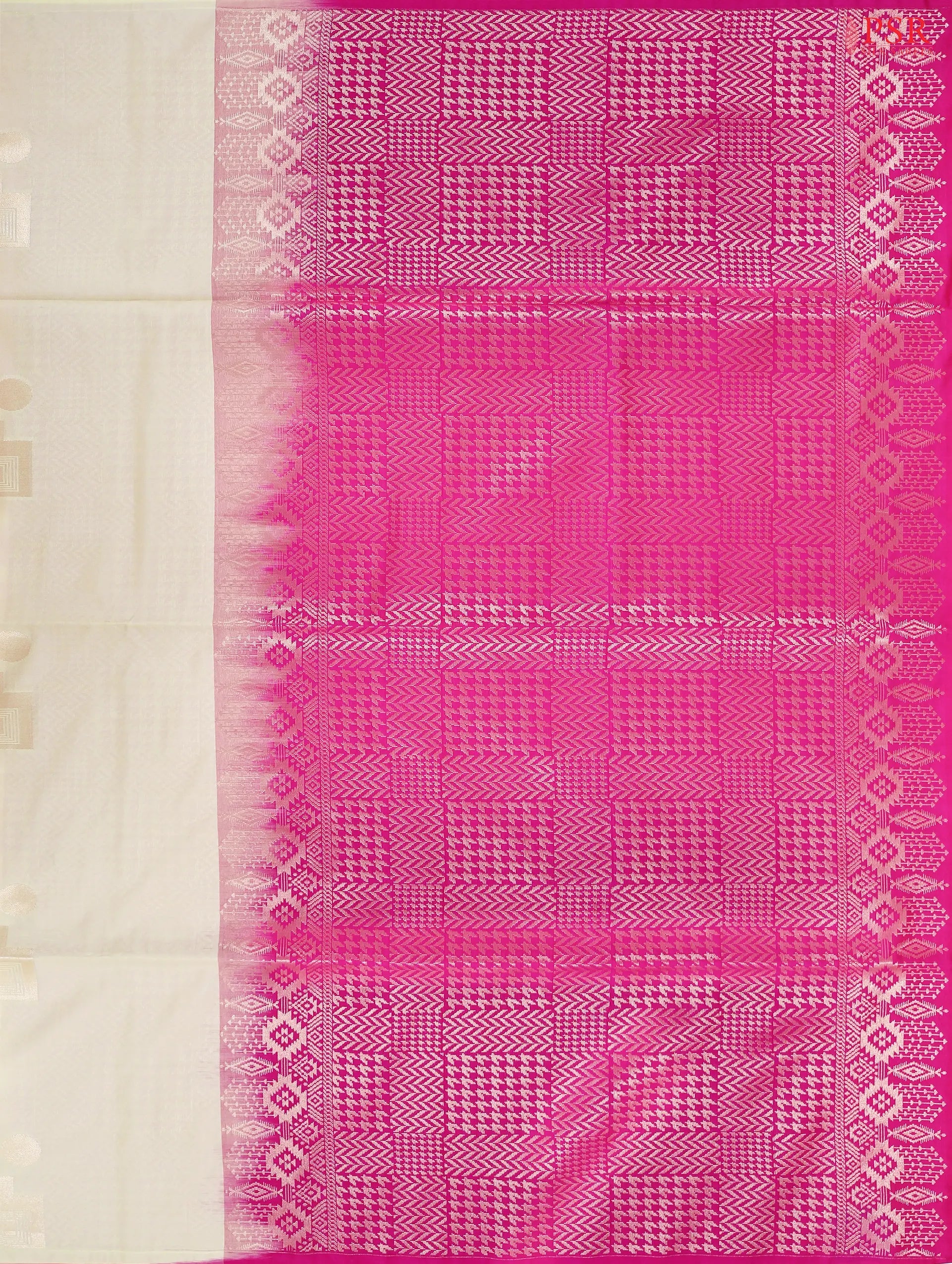 PSR Silk Sarees presents a Cream Beige Soft Art Silk Saree with combination of Magenta Pink color.