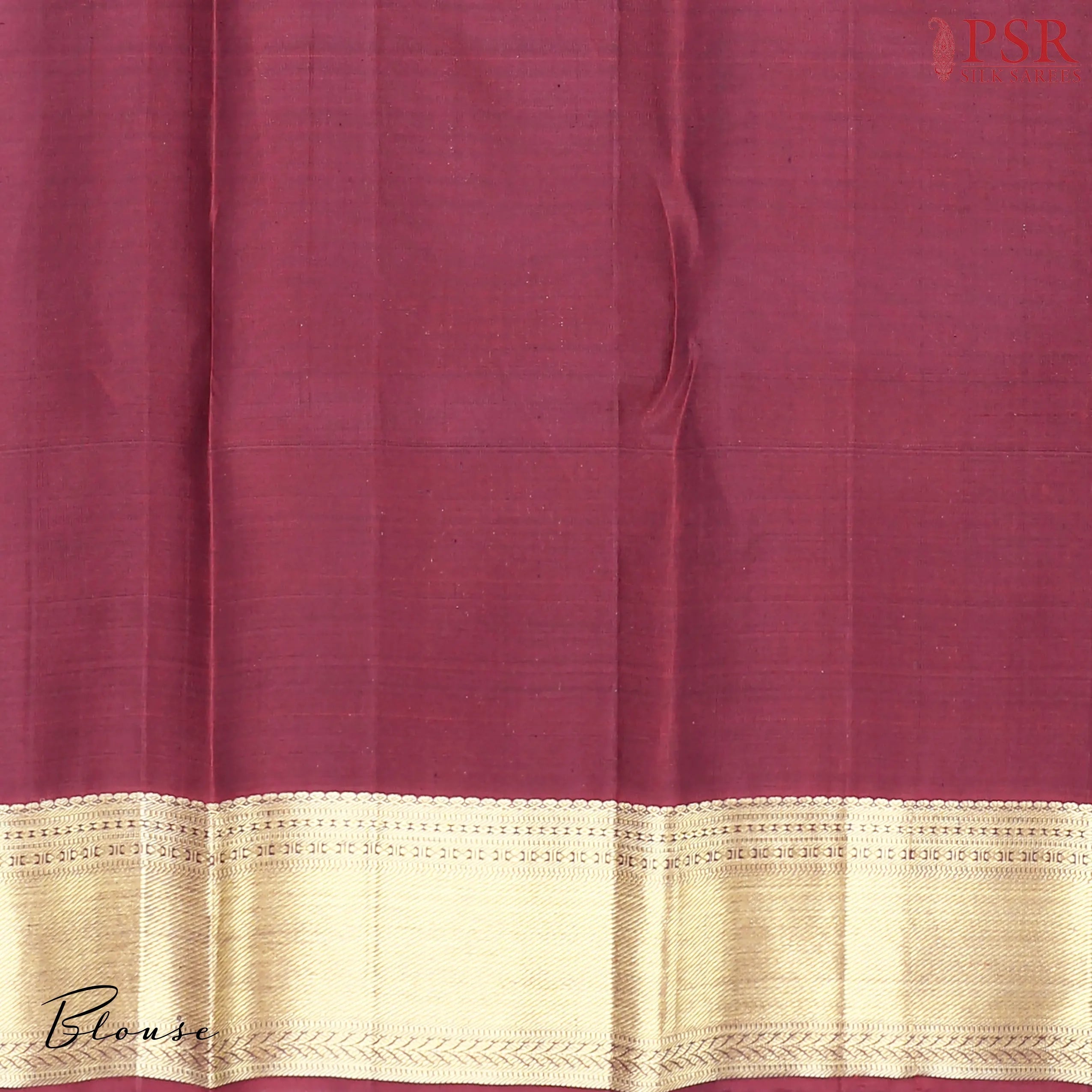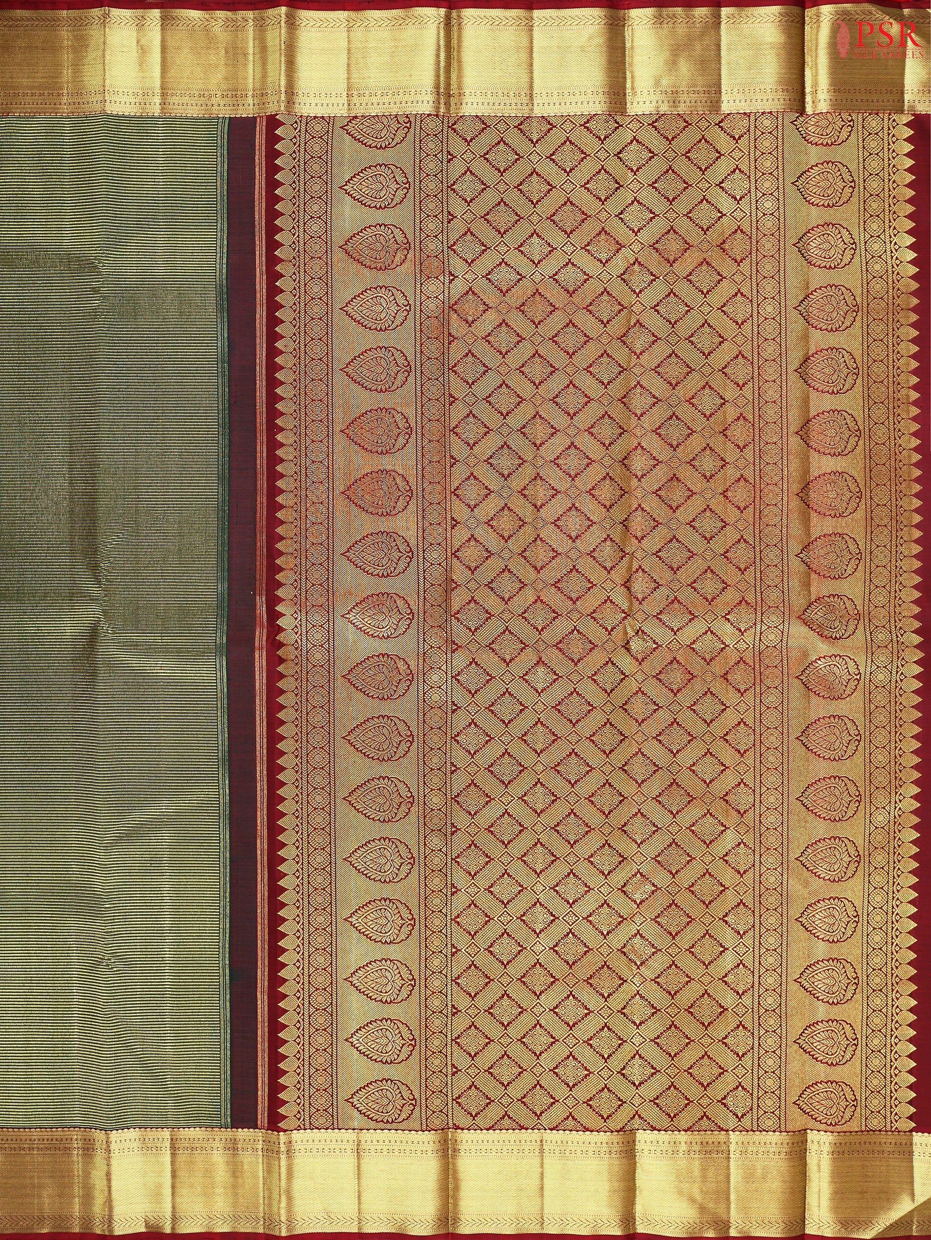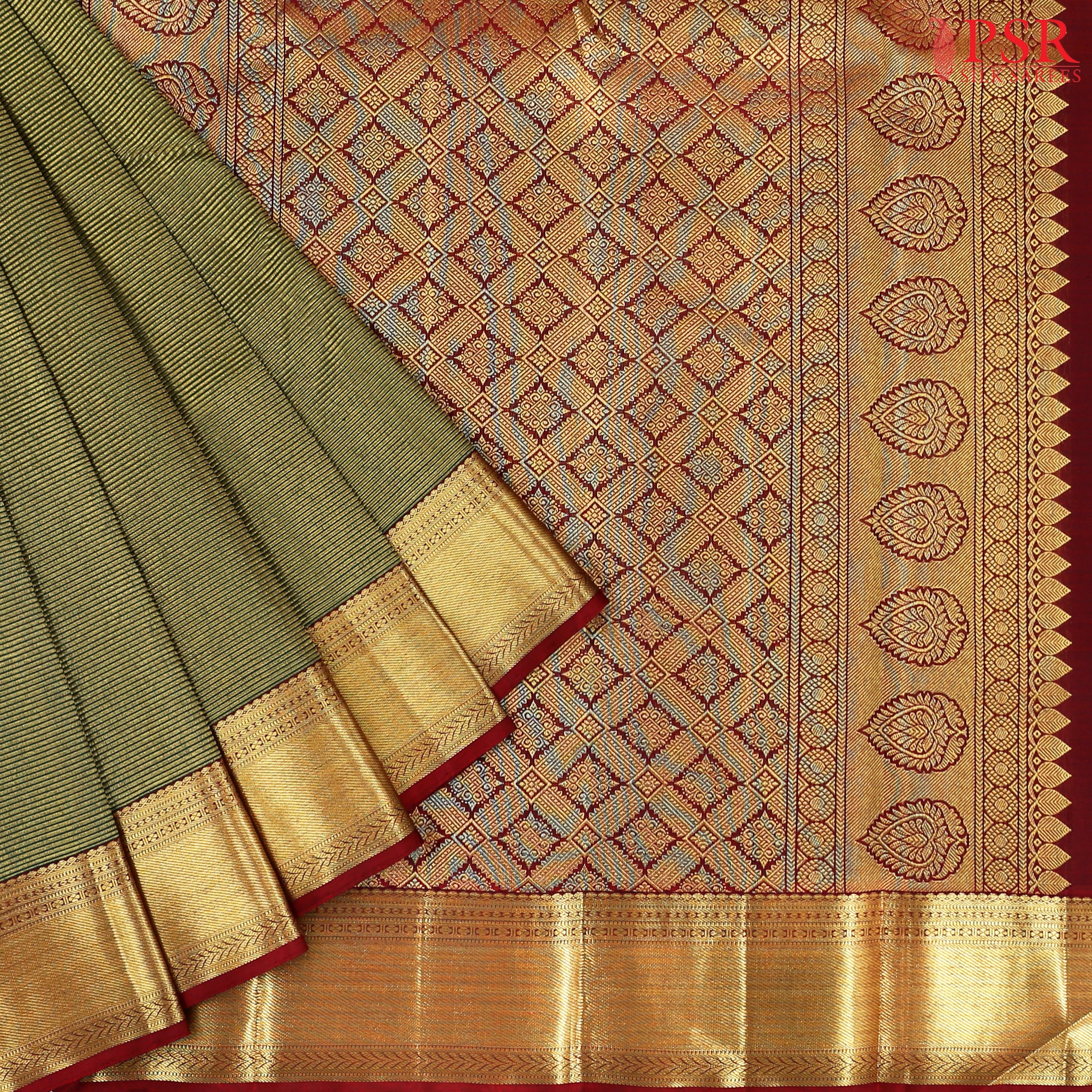 PSR Silk Sarees presents an exquisite Dark Green Kanchipuram Silk Saree, paired with a rich Maroon combination that elevates its traditional charm.