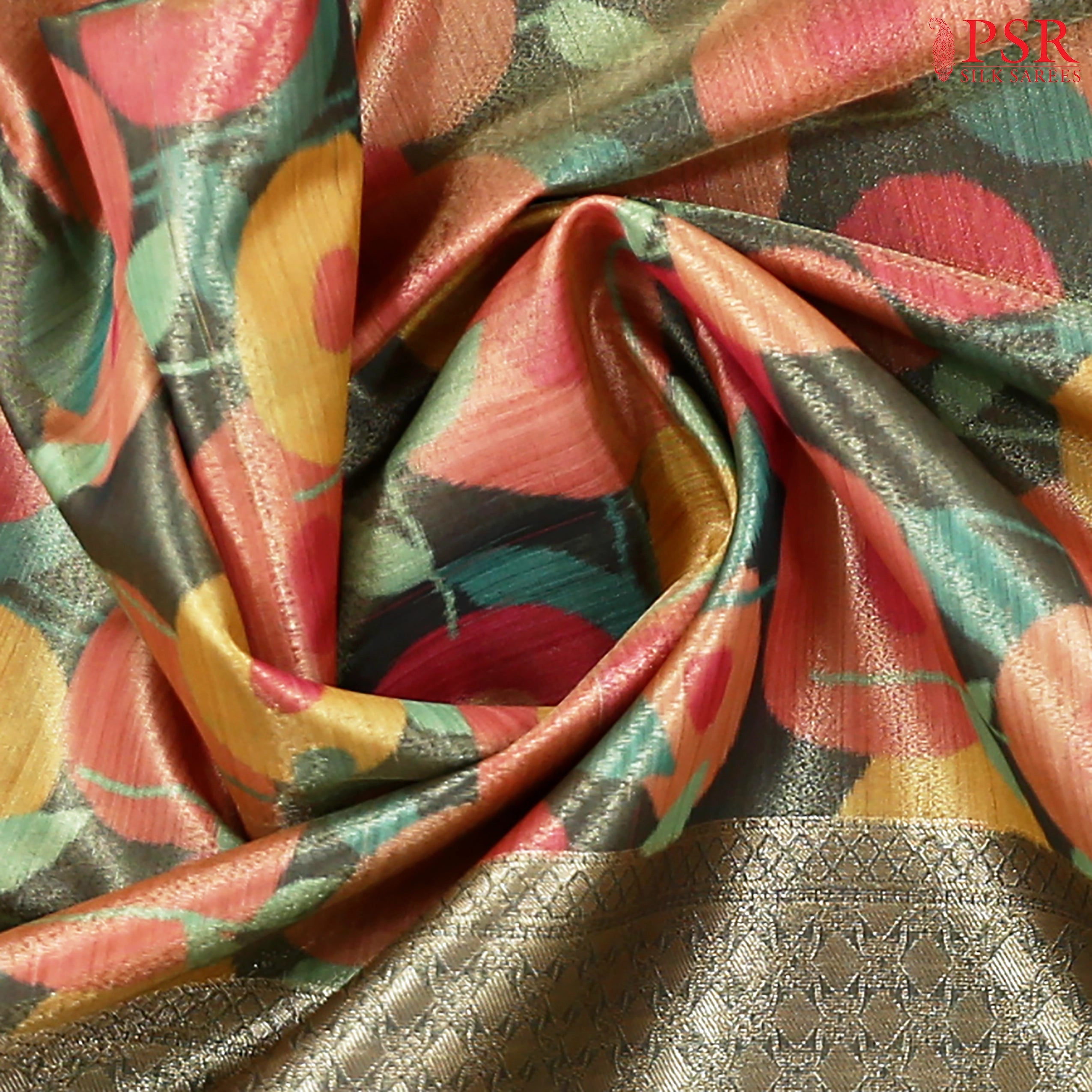Dark Olive Printed Tissue Art Silk Saree