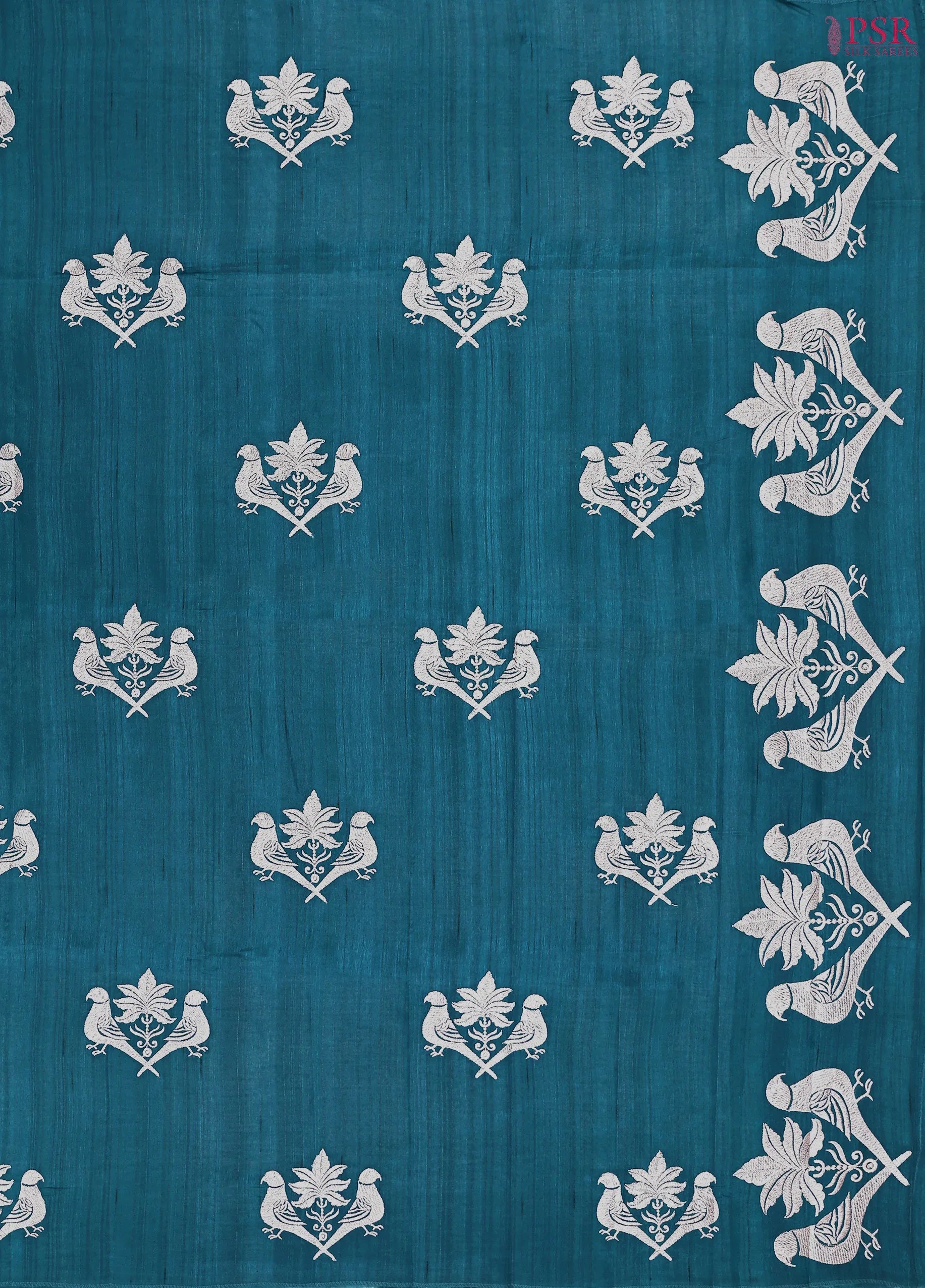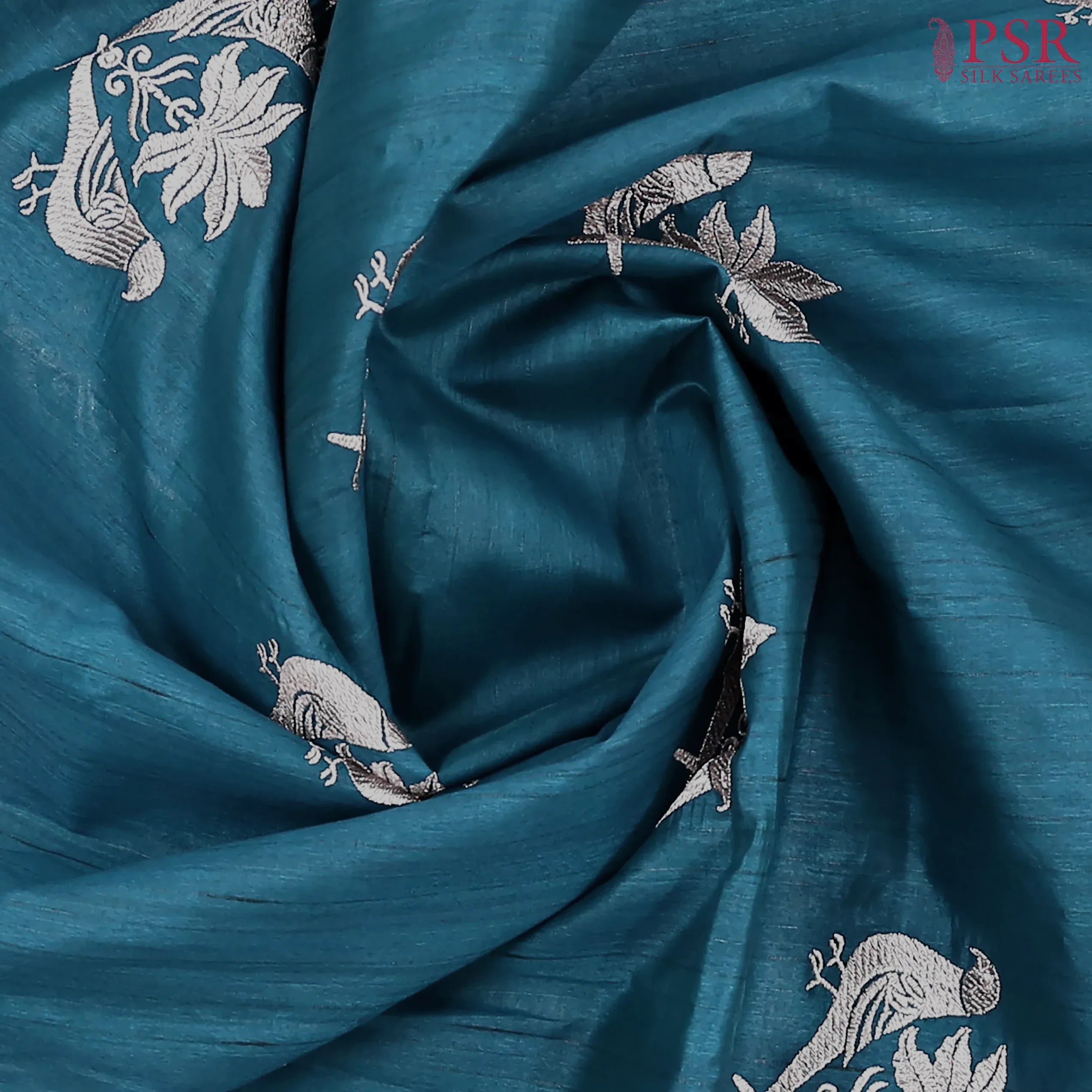 PSR Silk Sarees presents a Dark Peacock Blue Kosa Embroidery Saree.