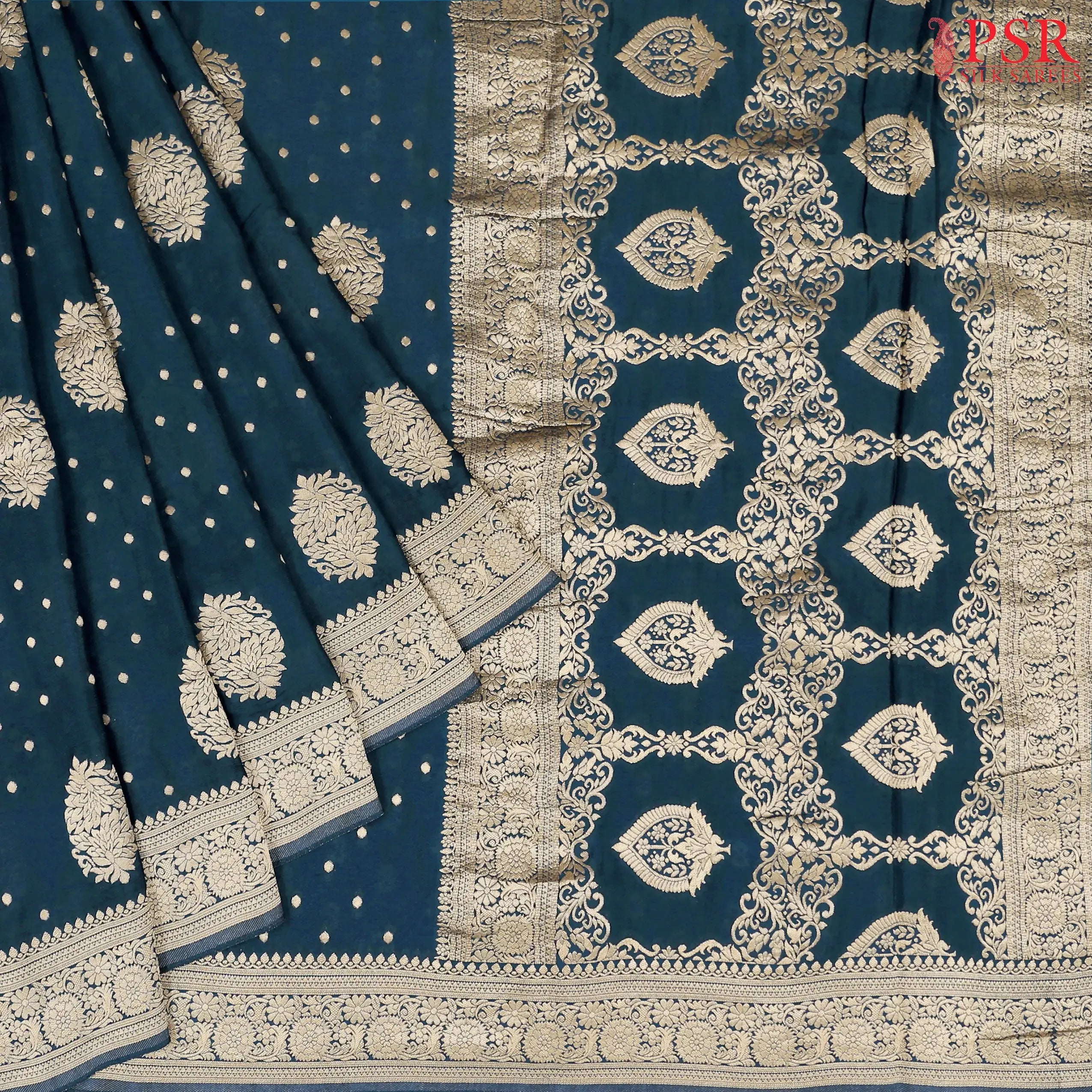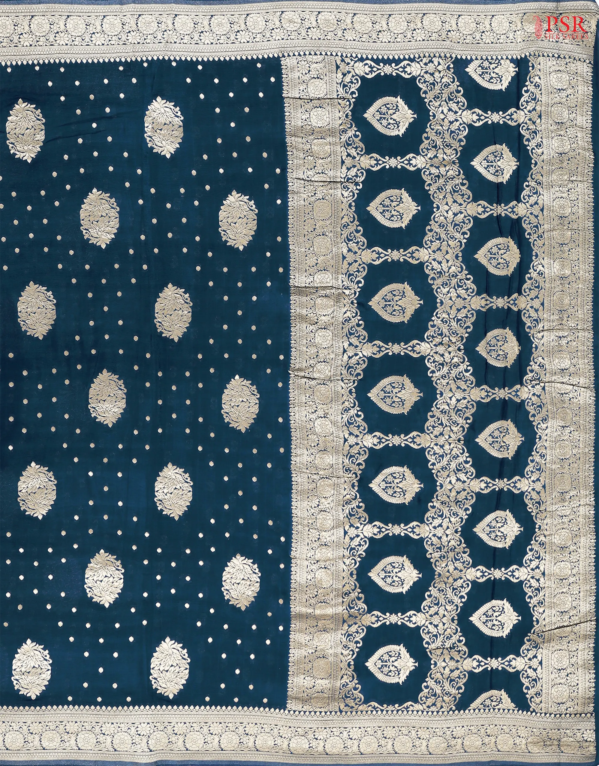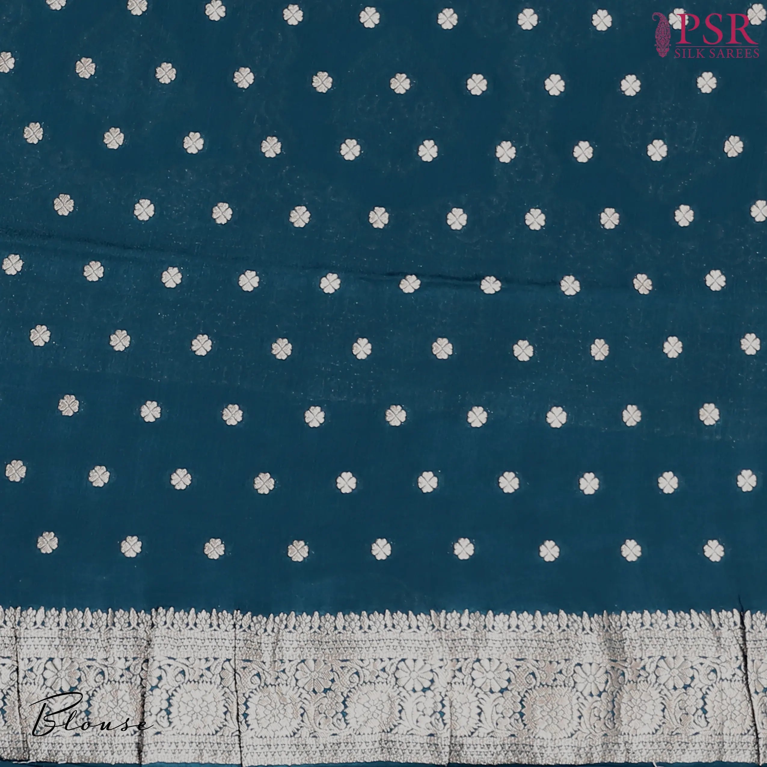 PSR Silks presents a Dark Teal Blue colored Georgette Saree.