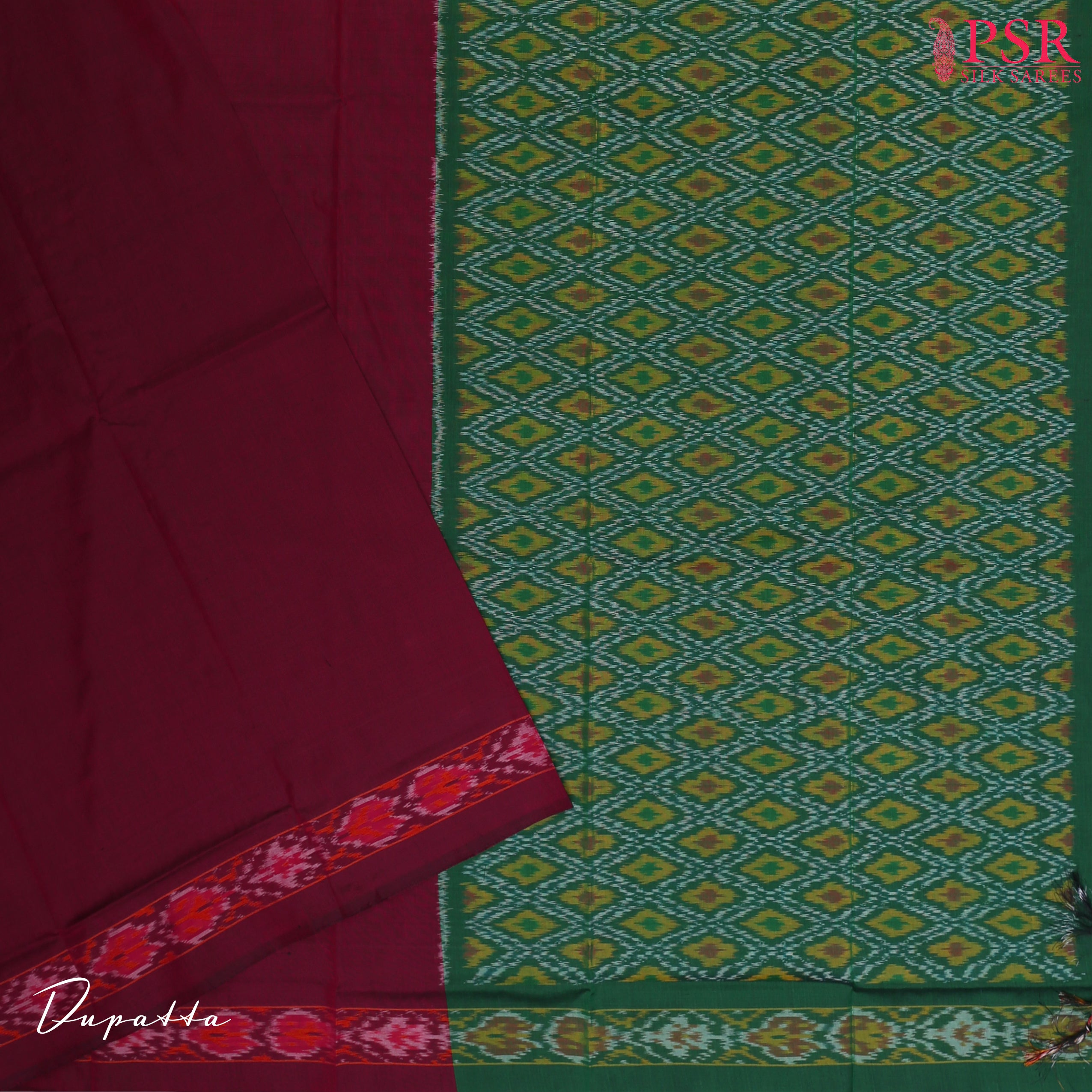 PSR Silks presents Emerald Green & Auburn colored Pochampally Silk Cotton dress material.