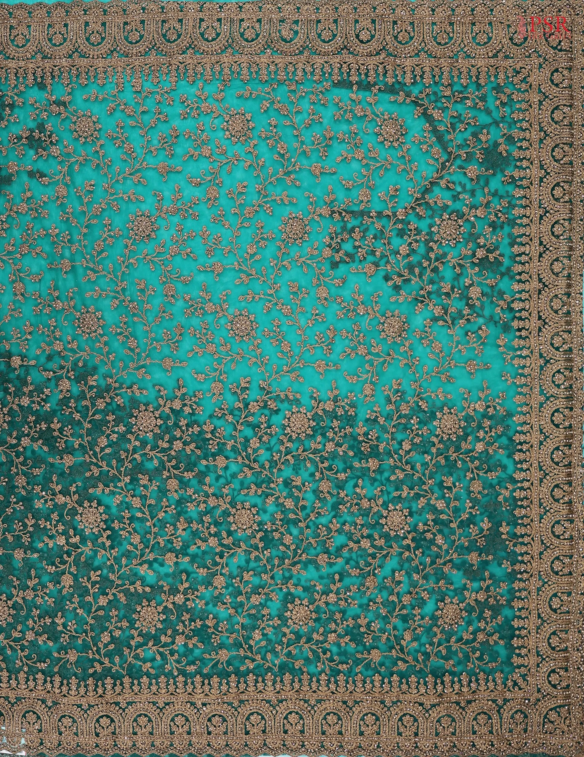 PSR Silks presents a Emerald Green colored Georgette Saree with an enchanting Embroidery Work.
