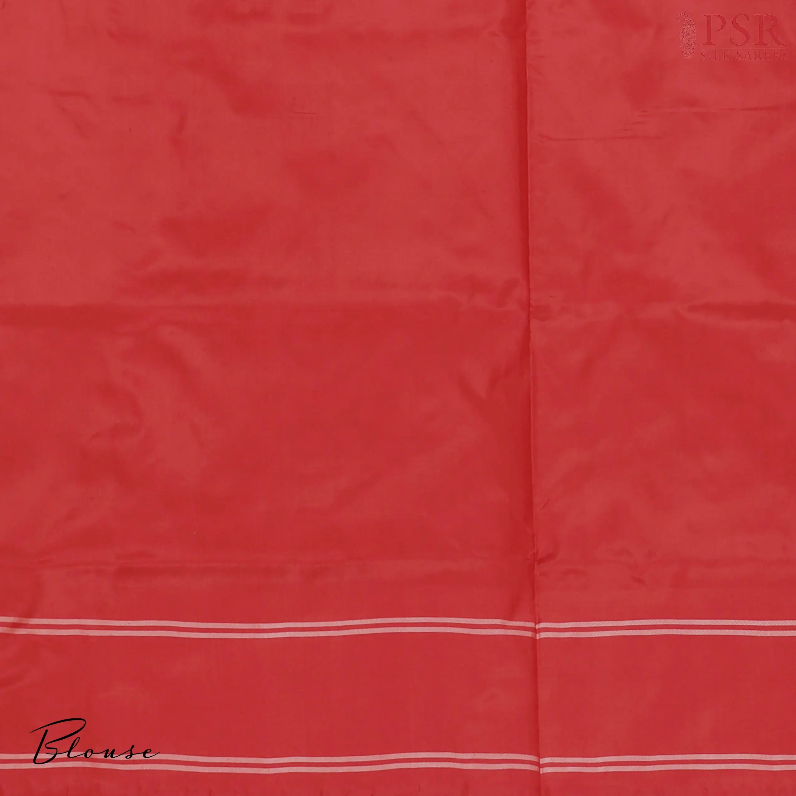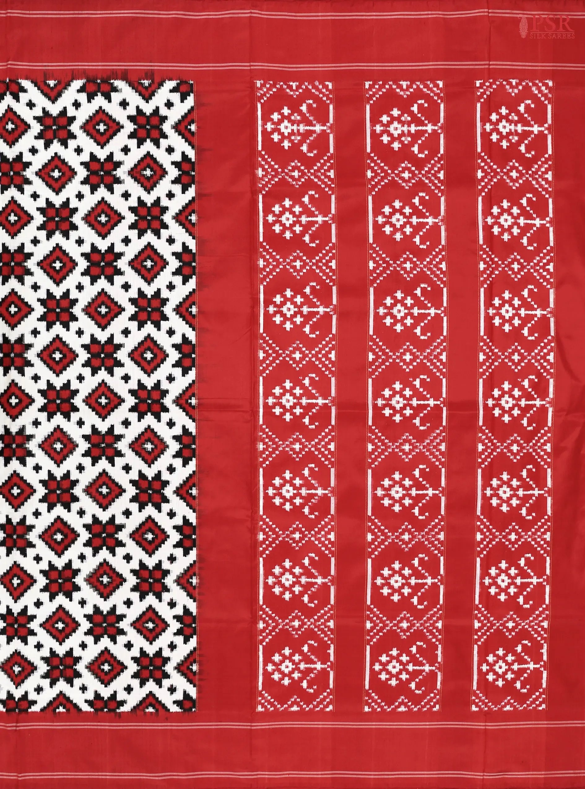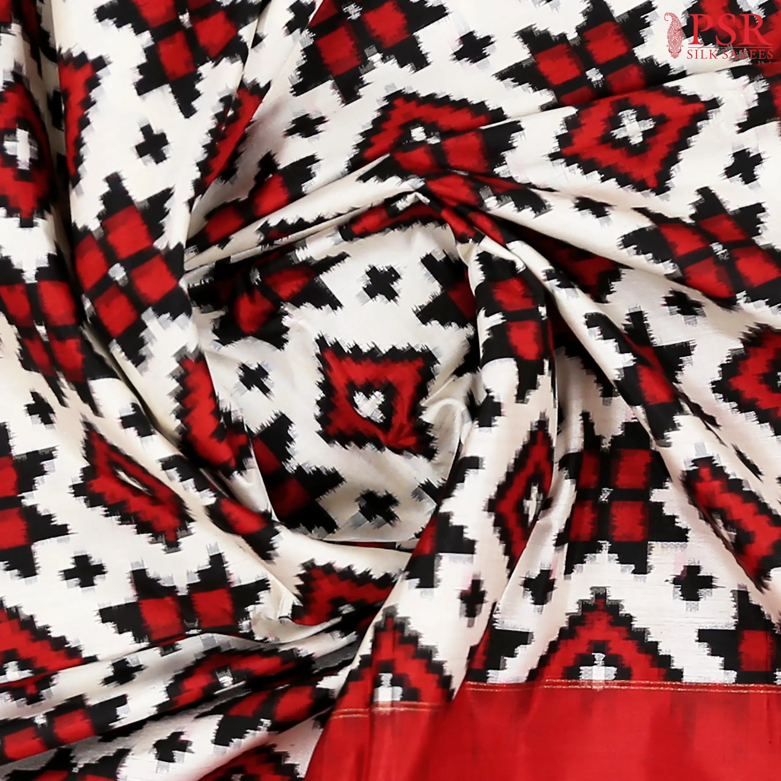 PSR Silk Sarees presents a graceful Floral White Pochampally Silk Saree paired with a vibrant Red combination, exuding timeless elegance and traditional charm.