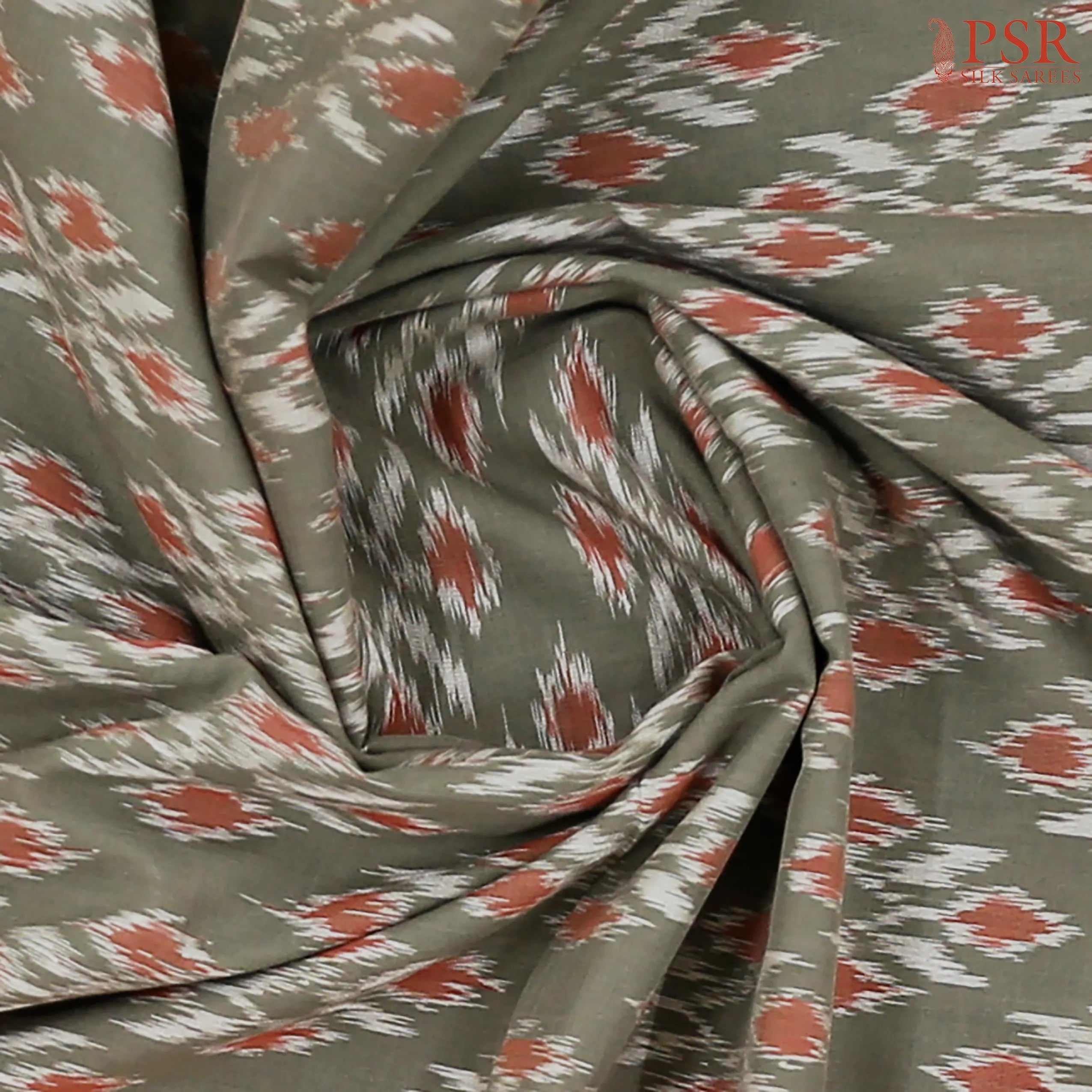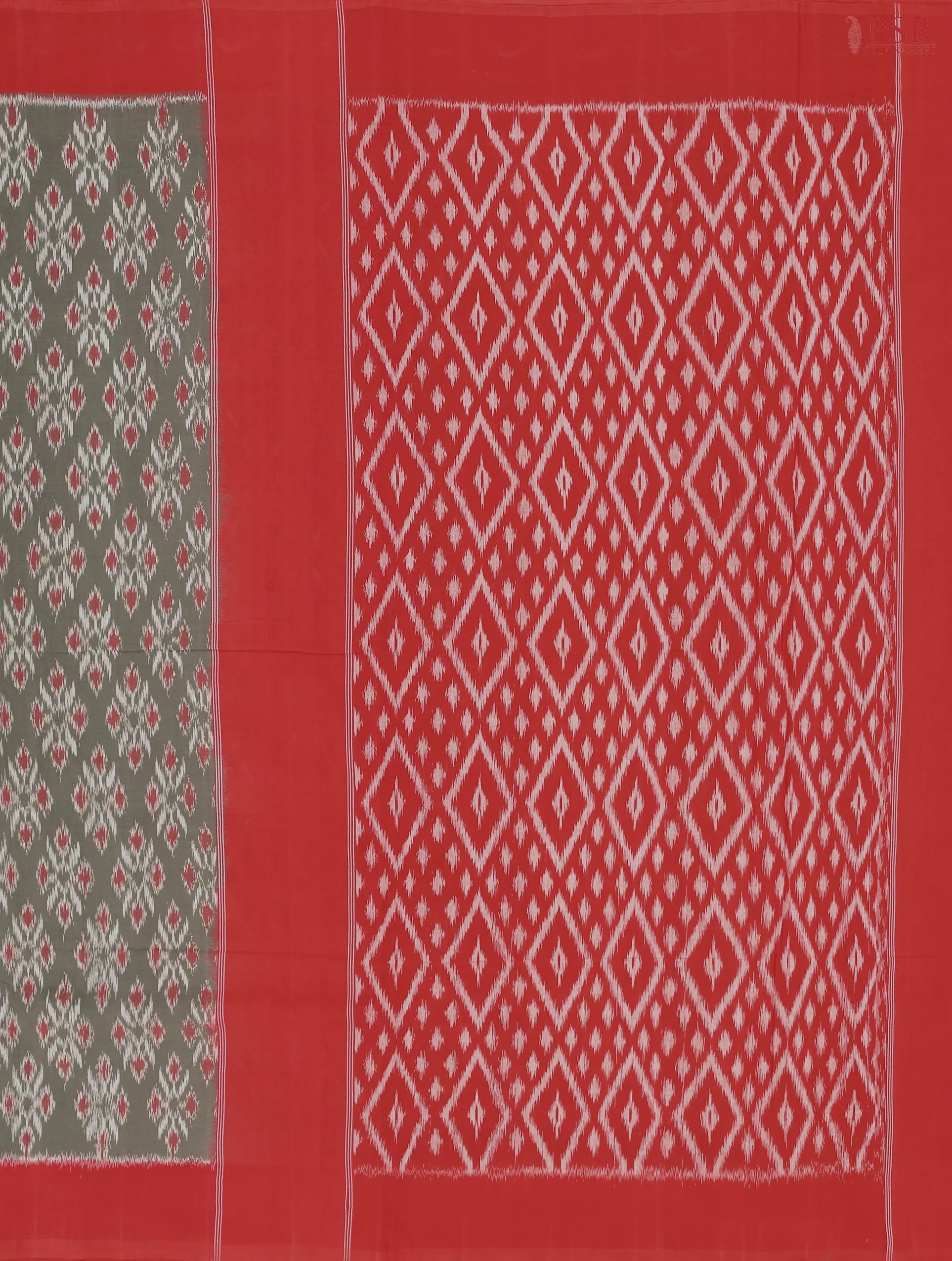 PSR Silk Sarees presents a Fossil Grey colored Ikkat cotton saree with combination of Red color.