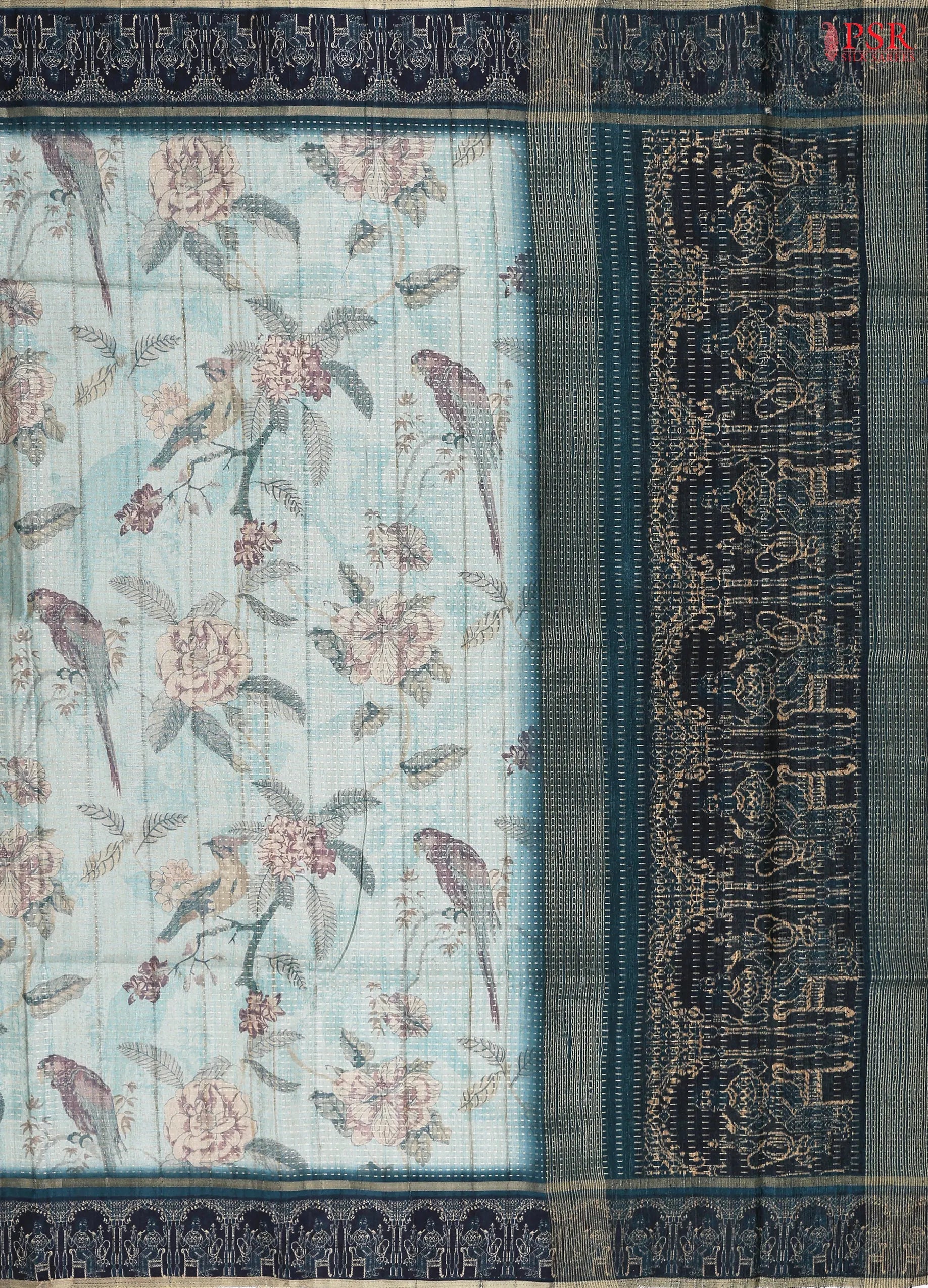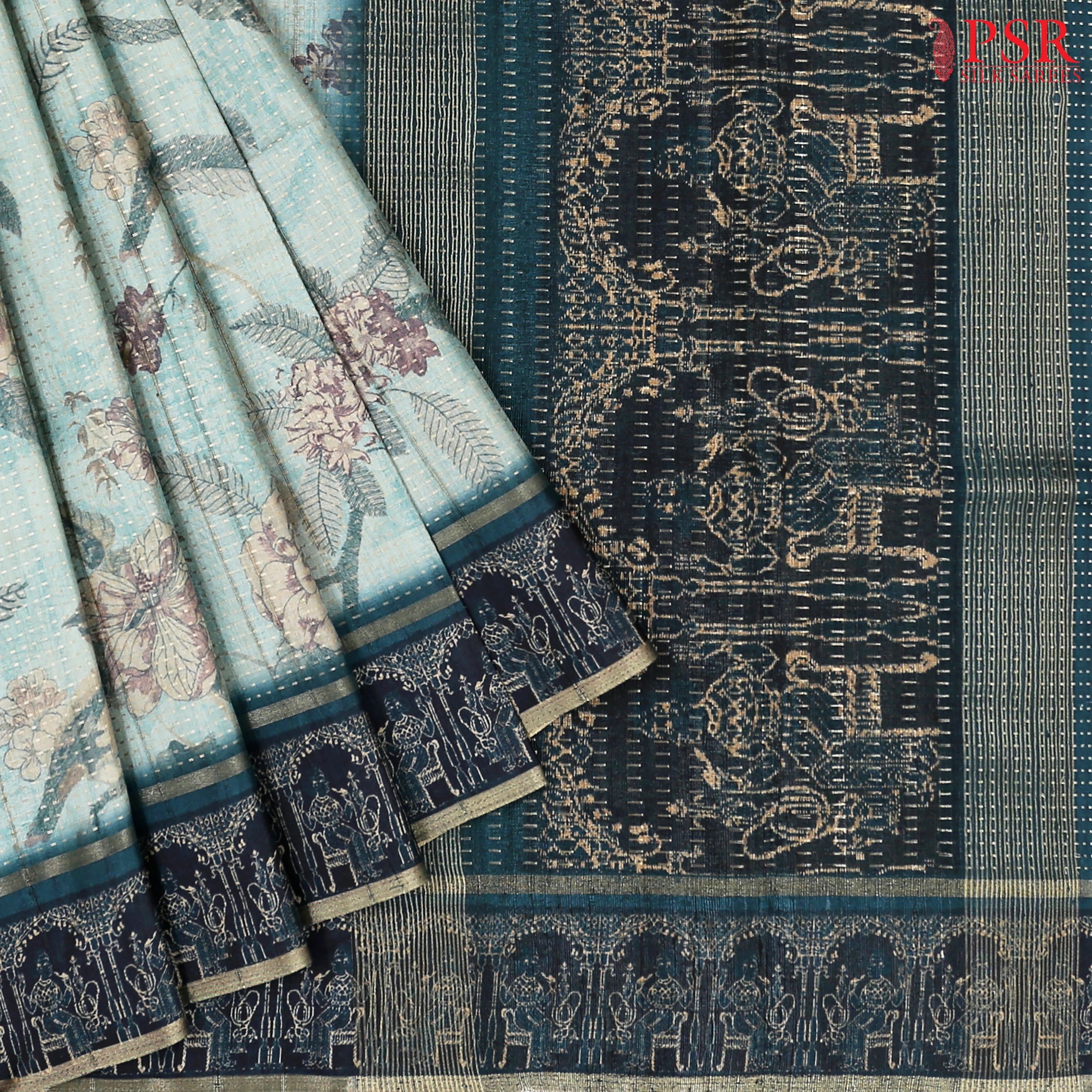 PSR Silk Sarees presents a Light Teal colored Semi Tussar saree with combination of Dark Teal color