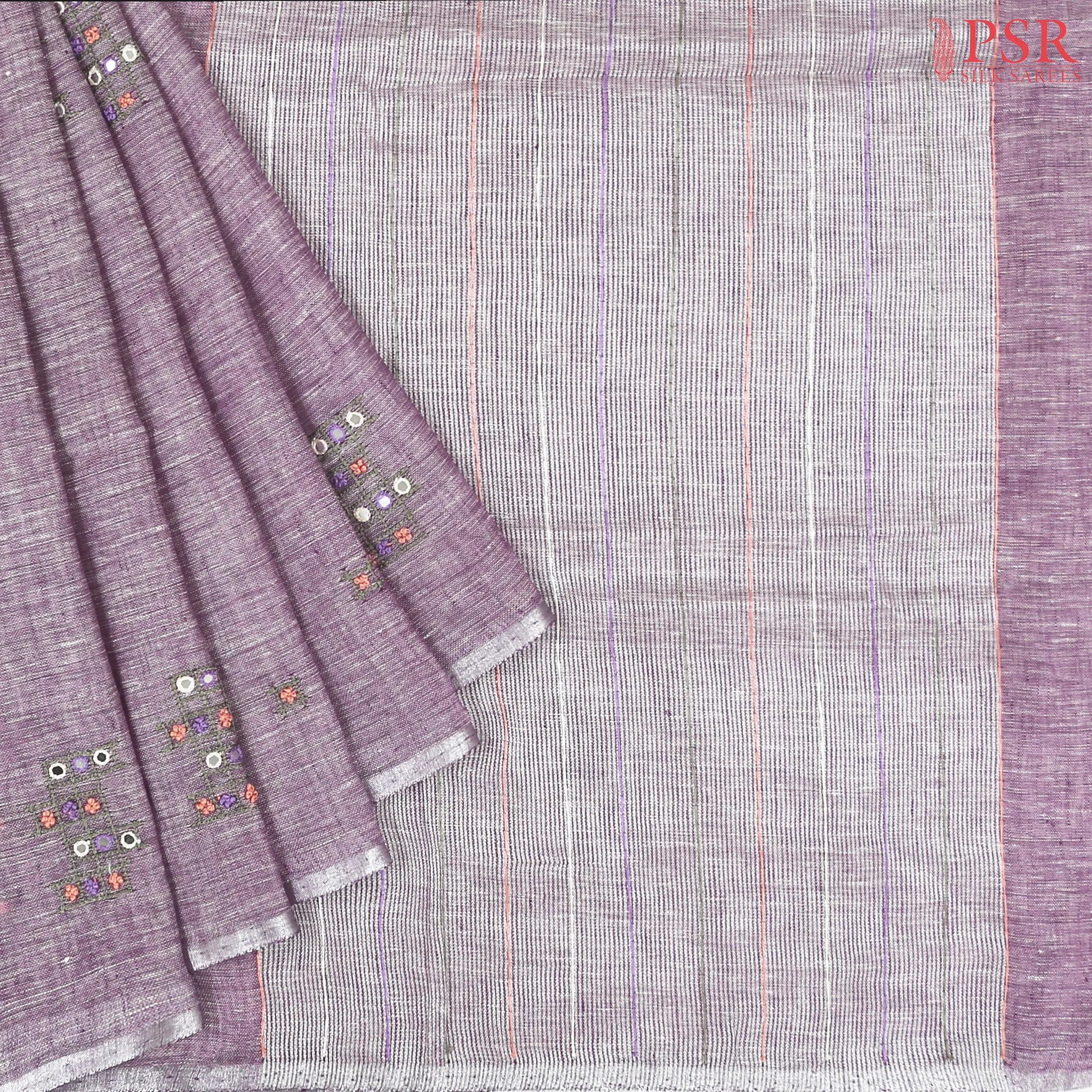 PSR Silk Sarees presents a Lilac Purple colored Linen saree.