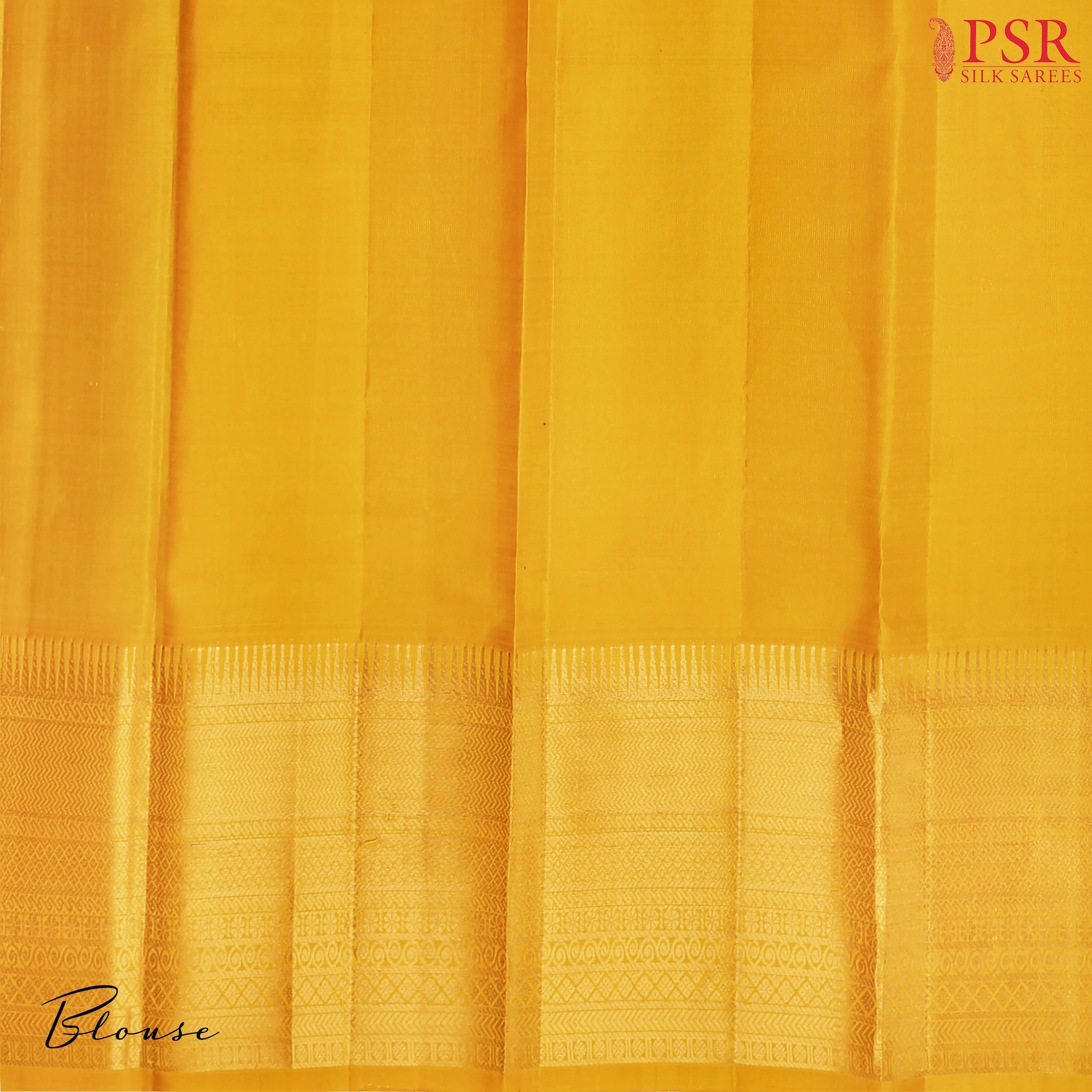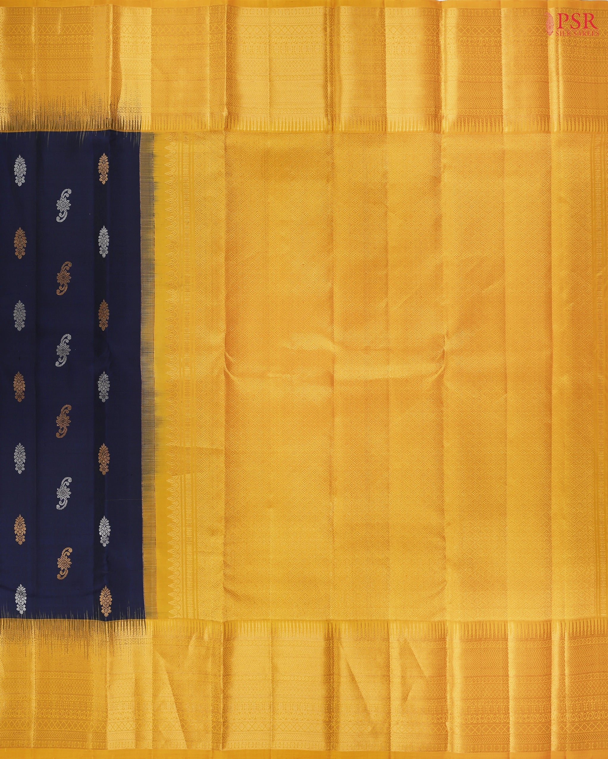 This Midnight Blue & Yellow Kanchipuram Silk Saree from PSR Silk Sarees is an elegant addition to the "Shrestha Kanjivaram" collection.