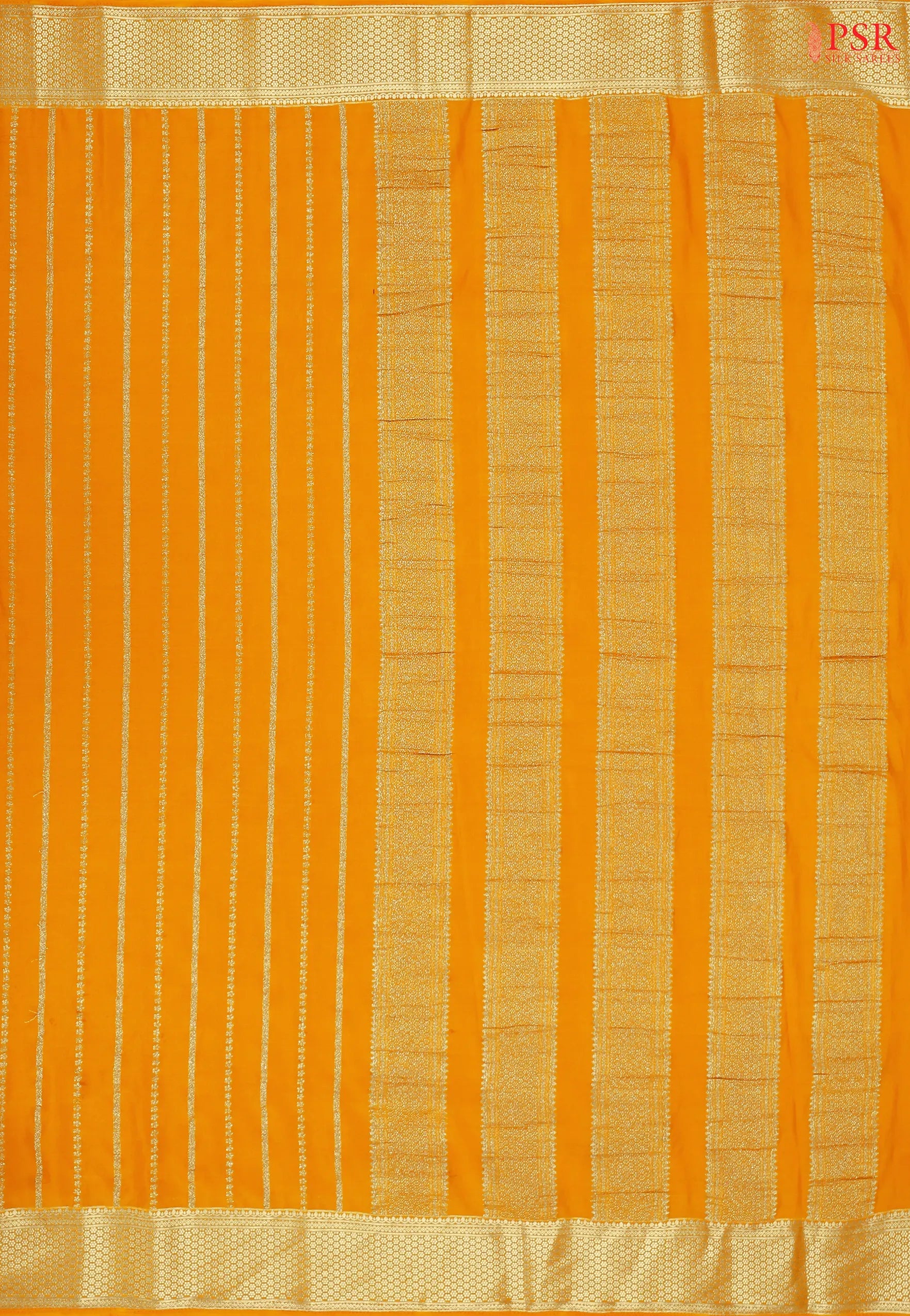 PSR Silks presents a Marigold colored Semi Mysore Binny Silk saree.