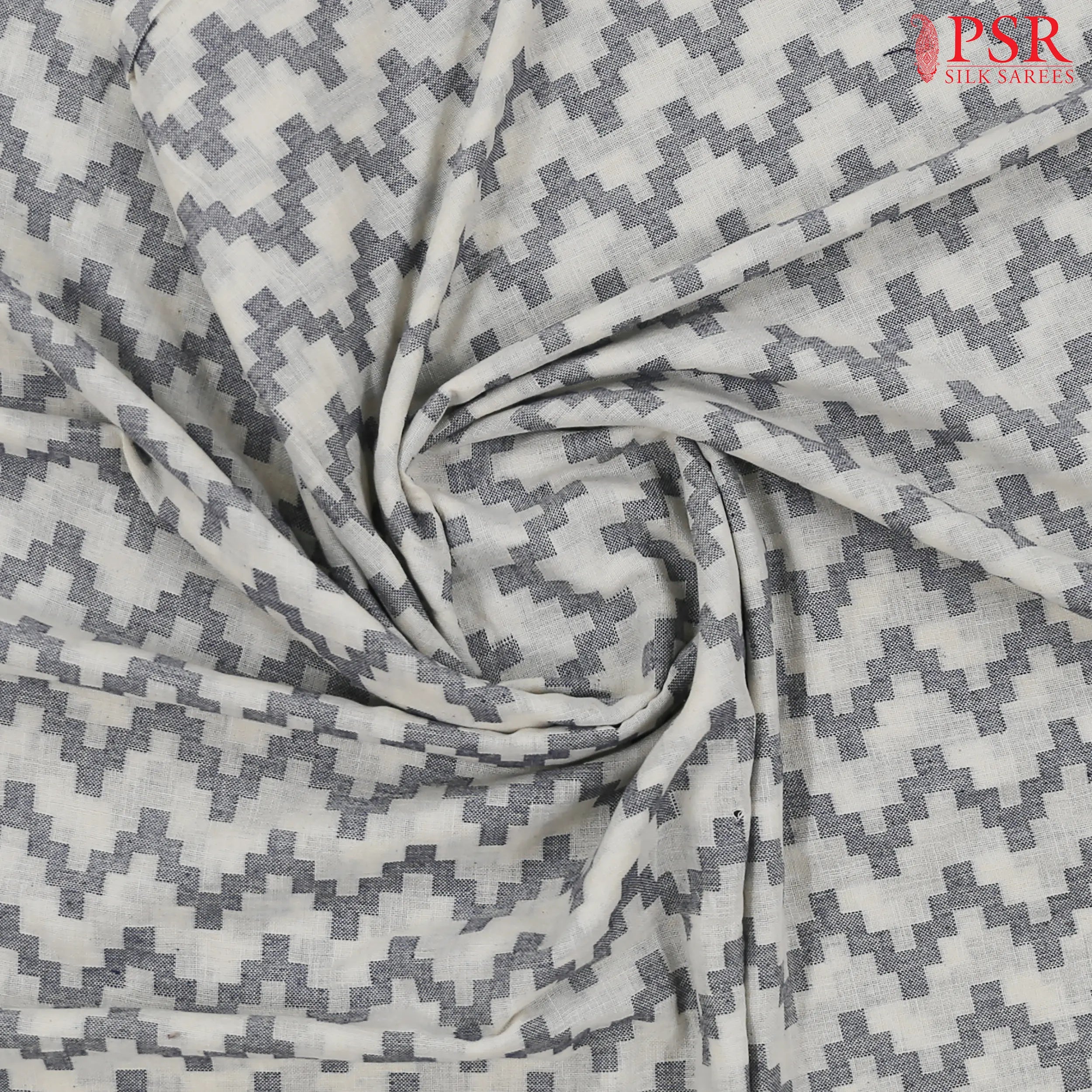 PSR Silk Sarees presents a Off White colored Cotton Dobby Running Material with Dark Grey chevron stripes,