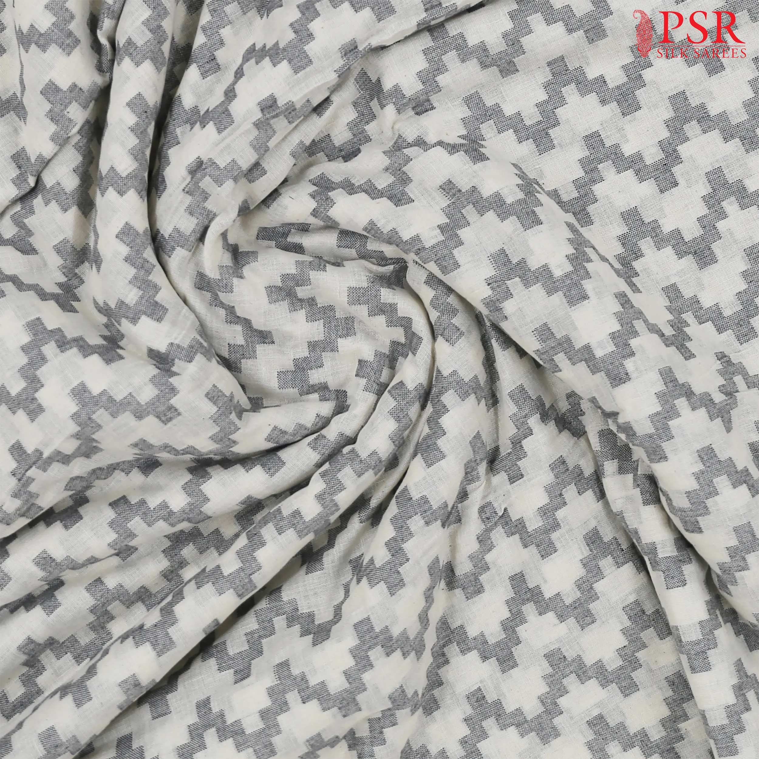 PSR Silk Sarees presents a Off White colored Cotton Dobby Running Material with Grey chevron stripes,