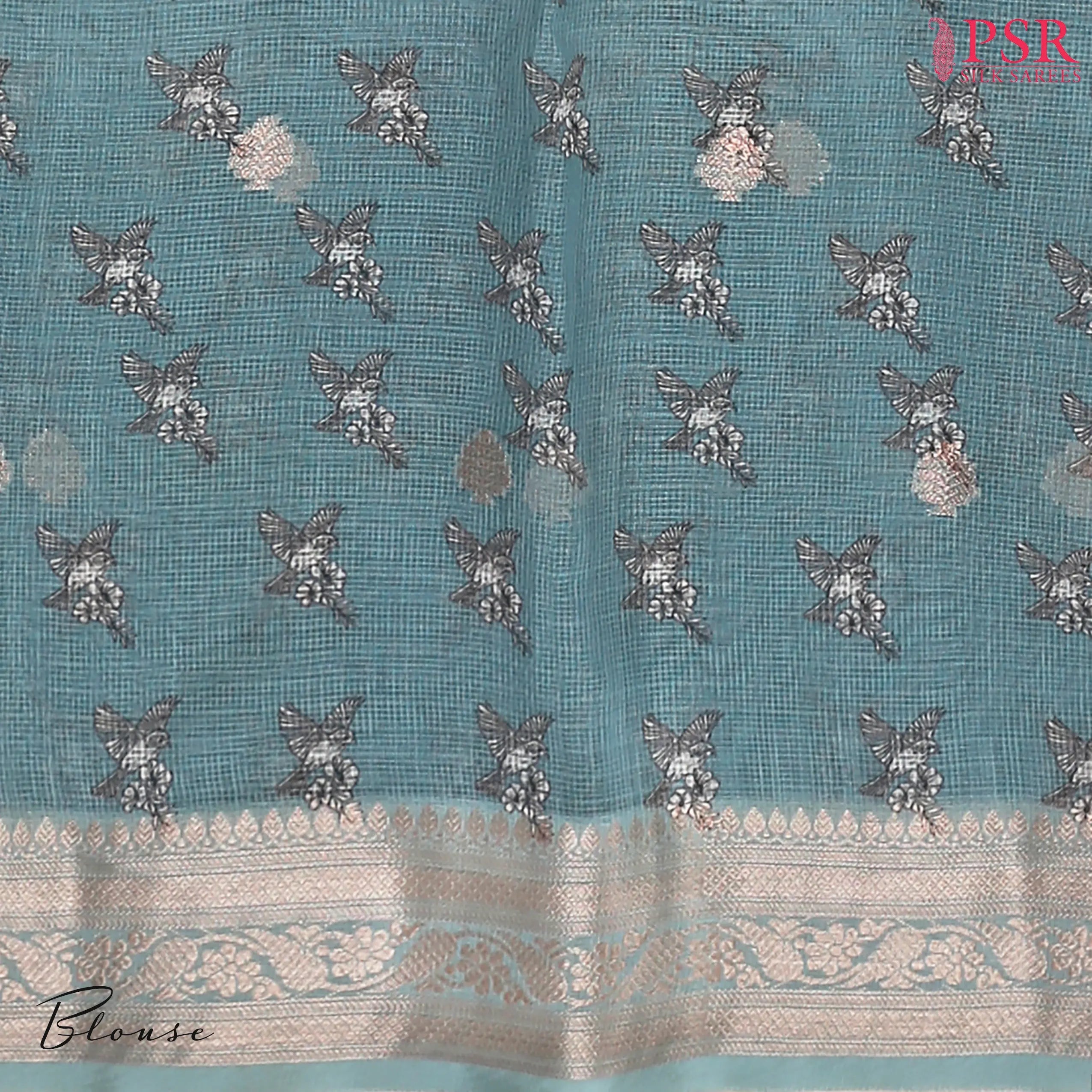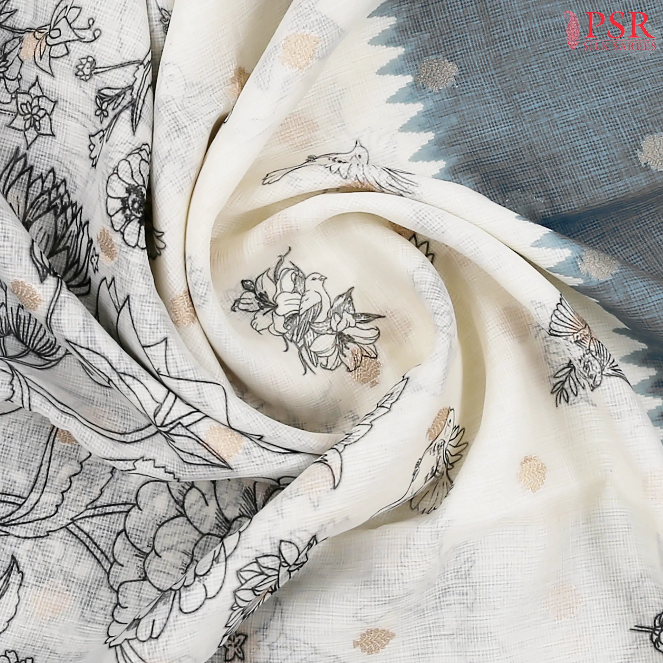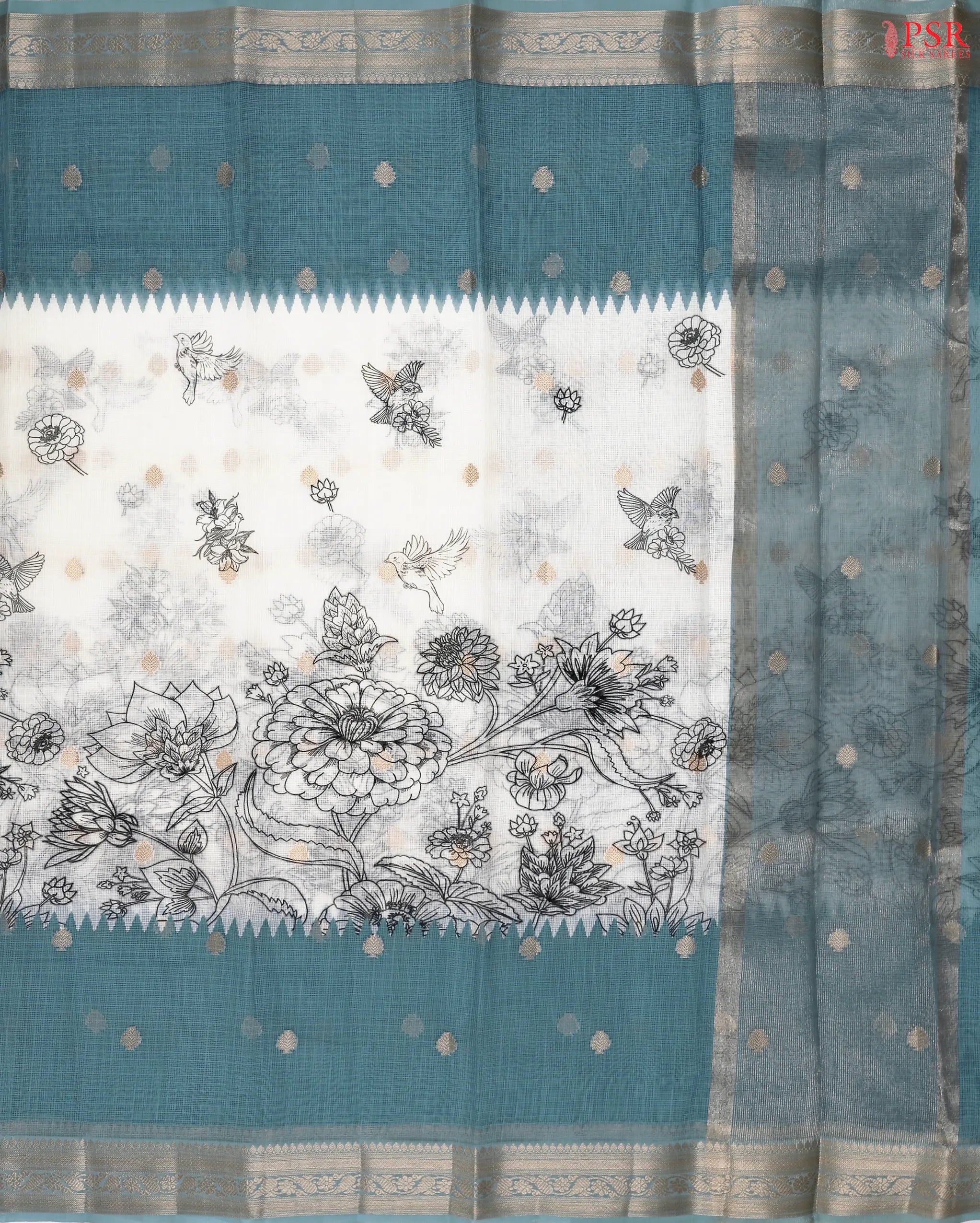 PSR Silk Sarees presents an Off White Kota saree with combination of Cerulean Blue color.