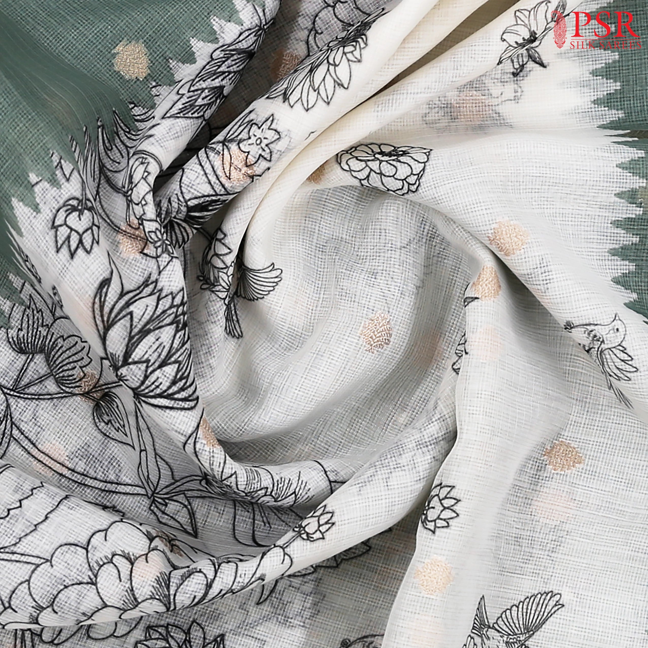 PSR Silk Sarees presents an Off White Kota saree with combination of Sage Green color.