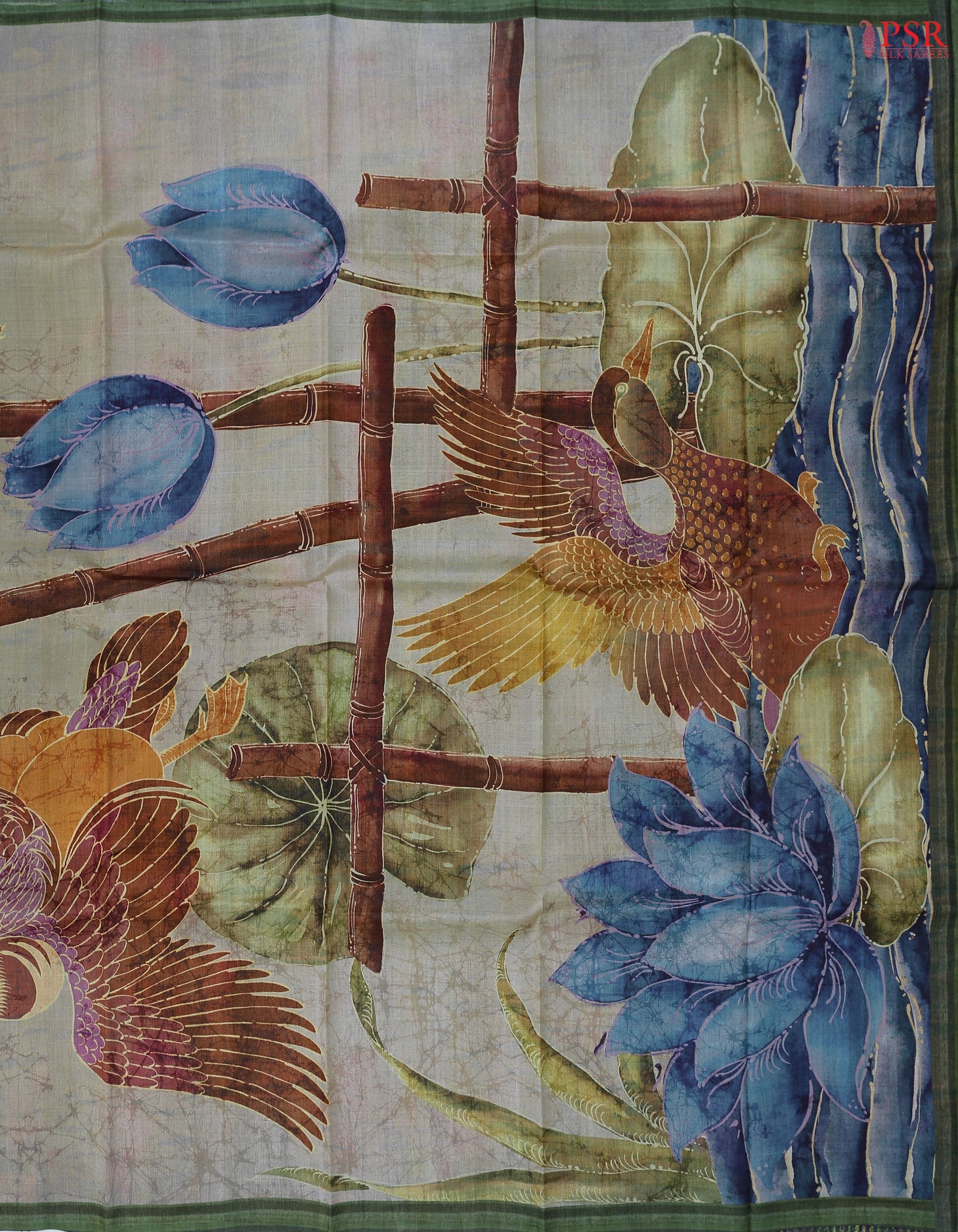 Old Beige & Dark Green Kadhi Tussar Silk Saree