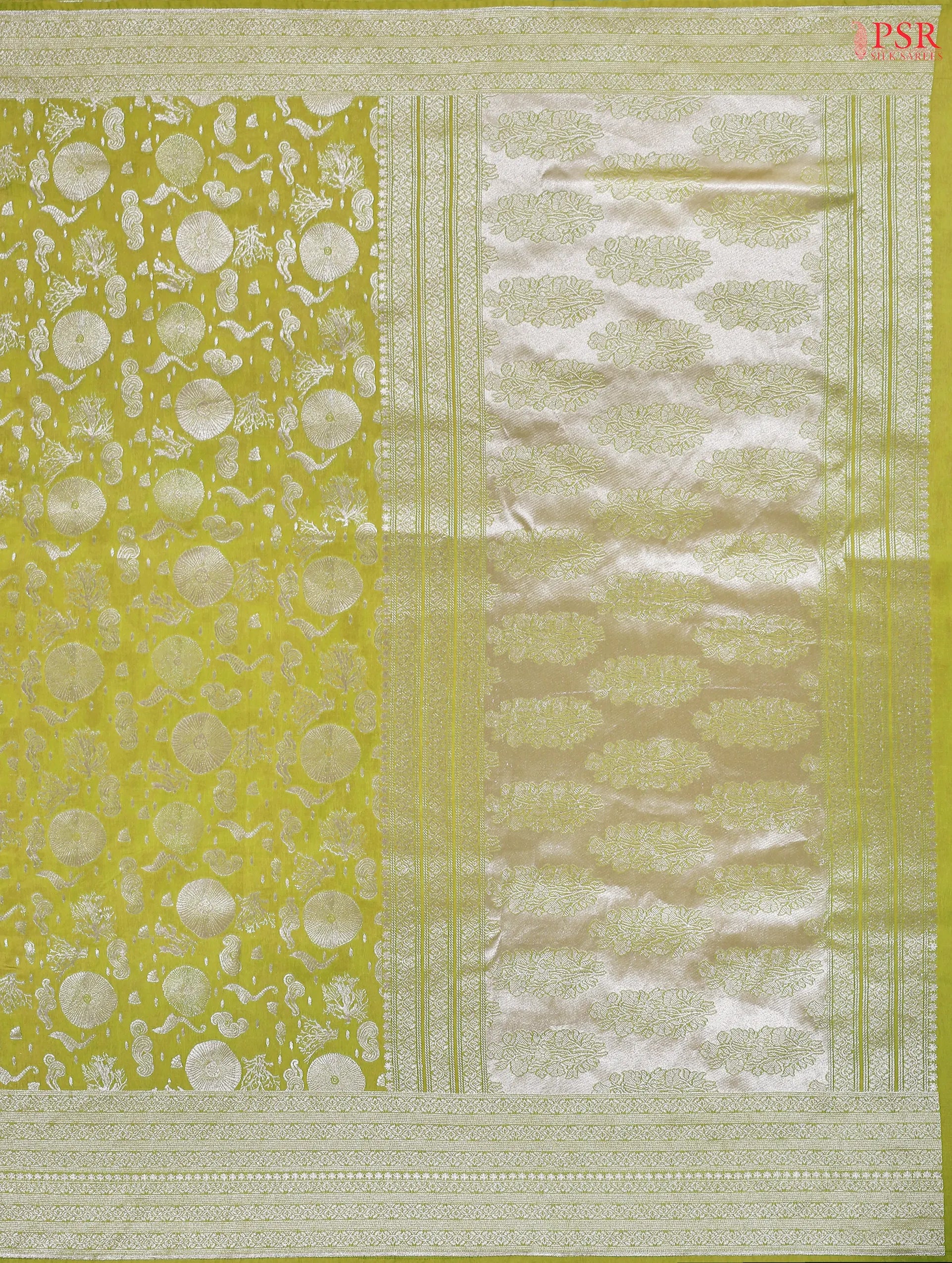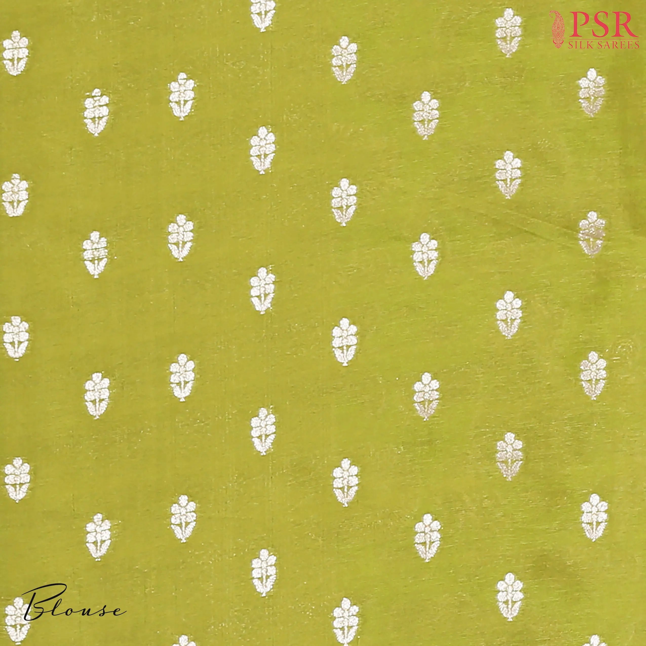 PSR Silk Sarees presents an Olive Chartreuse colored Semi Banarasi saree.
