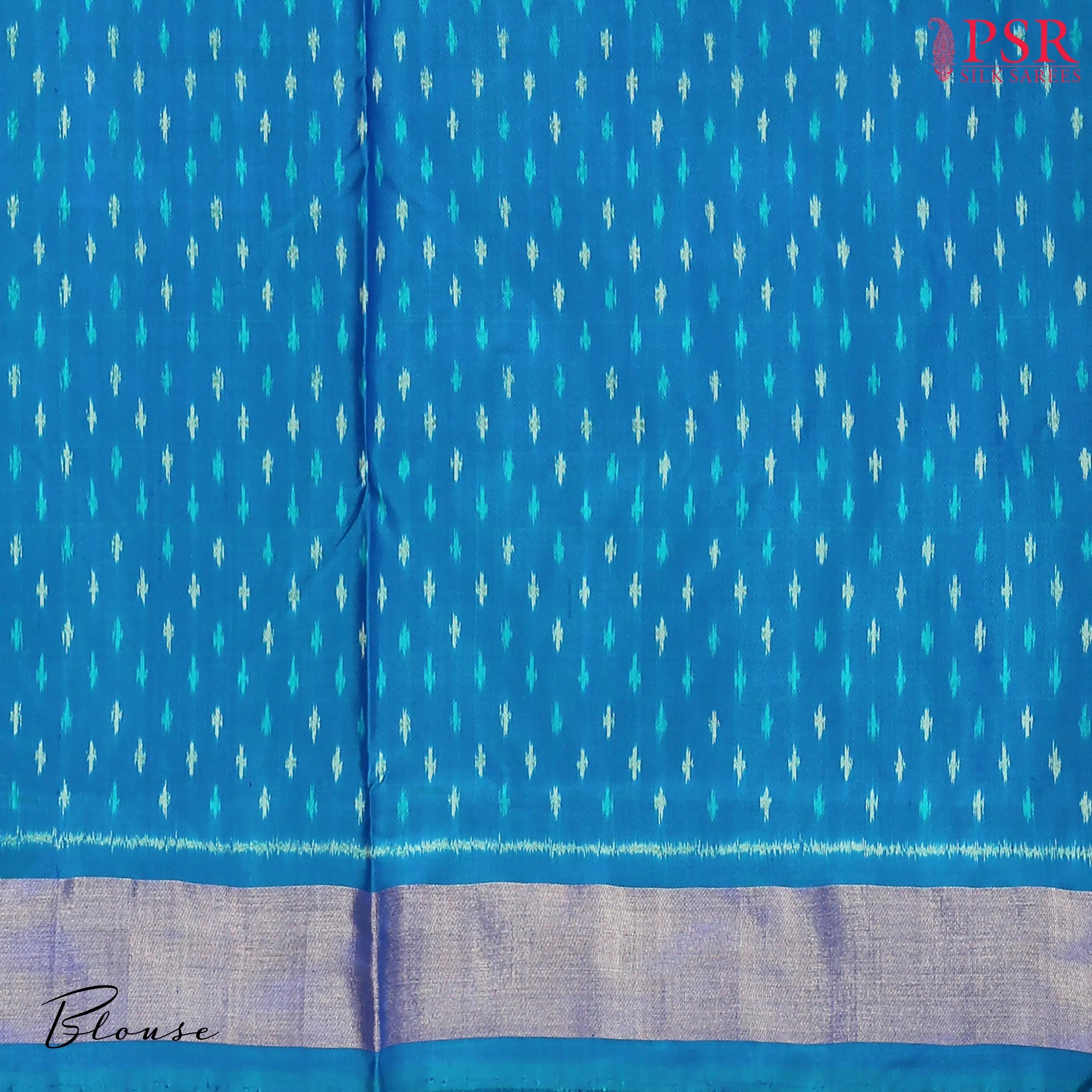 PSR Silk Sarees presents a stunning Peacock Blue colored Pochampally Silk Saree, adorned with intricate weaves of the traditional Ikat pattern. The pallu is beautifully enriched with Ikat weaves, lending it a graceful charm. A broad tissue border enhances its grandeur, while a matching ikkat pattern blouse completes the ensemble with elegance. Ideal for weddings, festive occasions, and cultural celebrations, this saree is a perfect blend of heritage and sophistication.